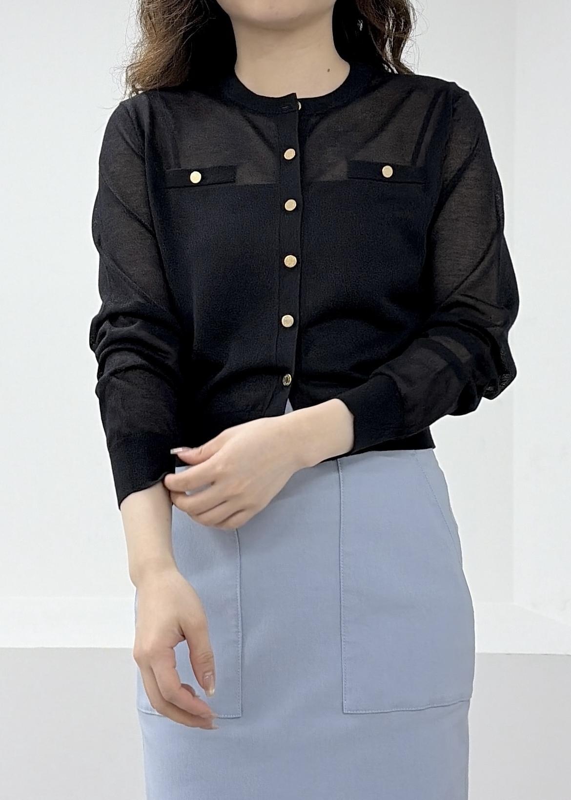 予約ROPÉLEVITA 金ボタンクルーネックシアーカーディガン/接触冷感・イージーケアブラック / F¥20,900レビューフリーサイズです。
