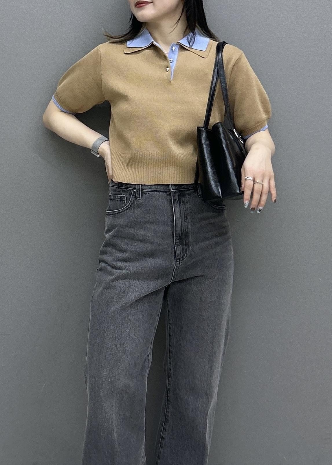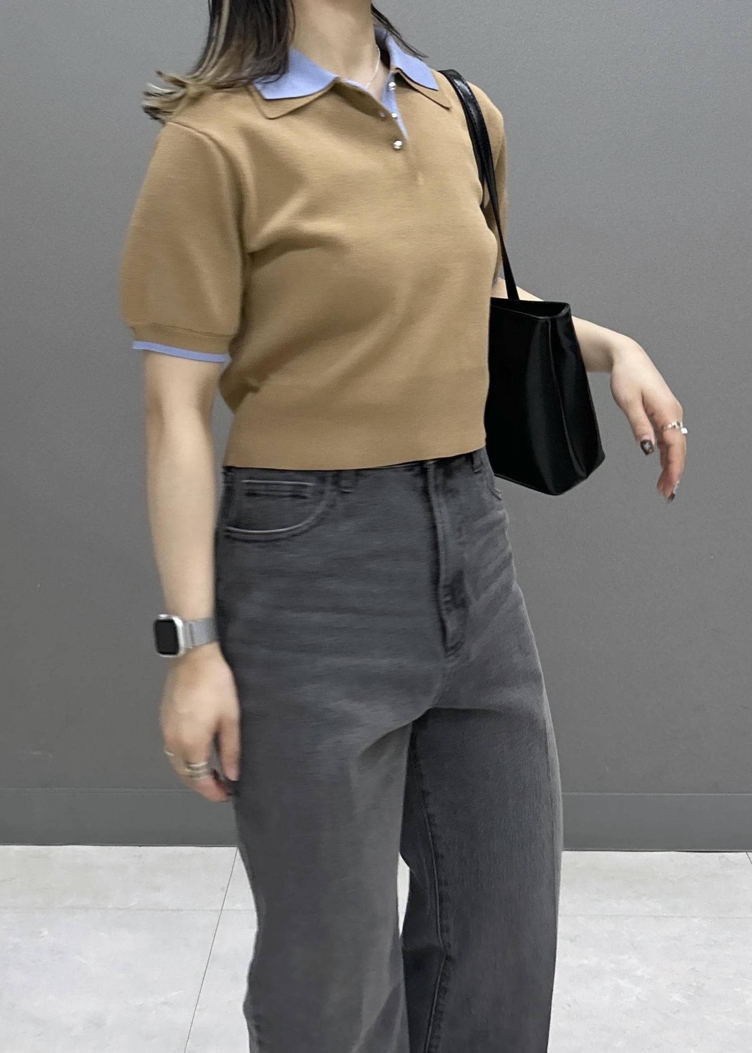 NEW!VISダブルカラー半袖ポロニットトップス/イージーケア・WEB限定カラーキャメル / F¥5,489レビュー157cmで腰にかかるからいで、インしなくてもスッキリ着られる丈感でした!