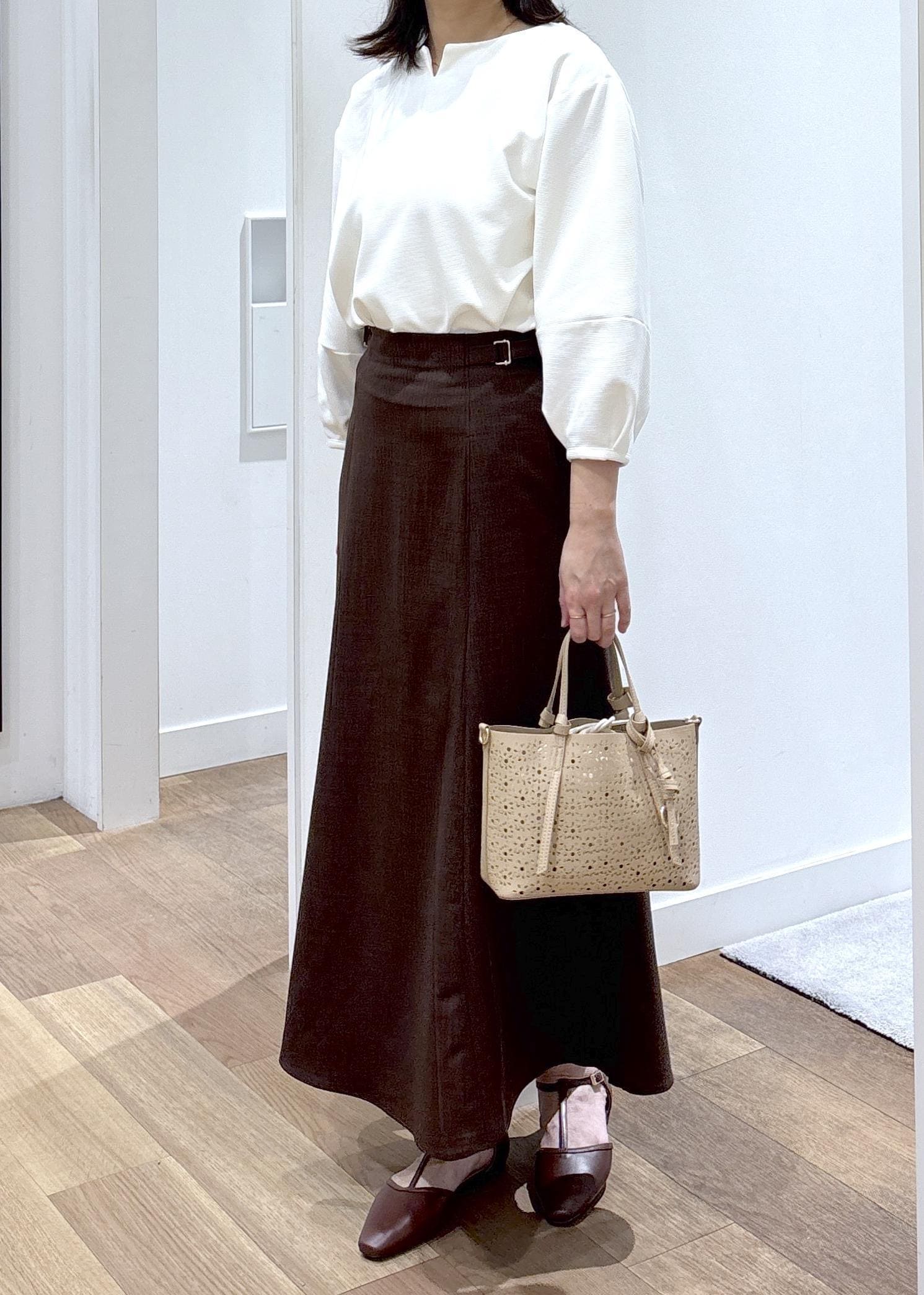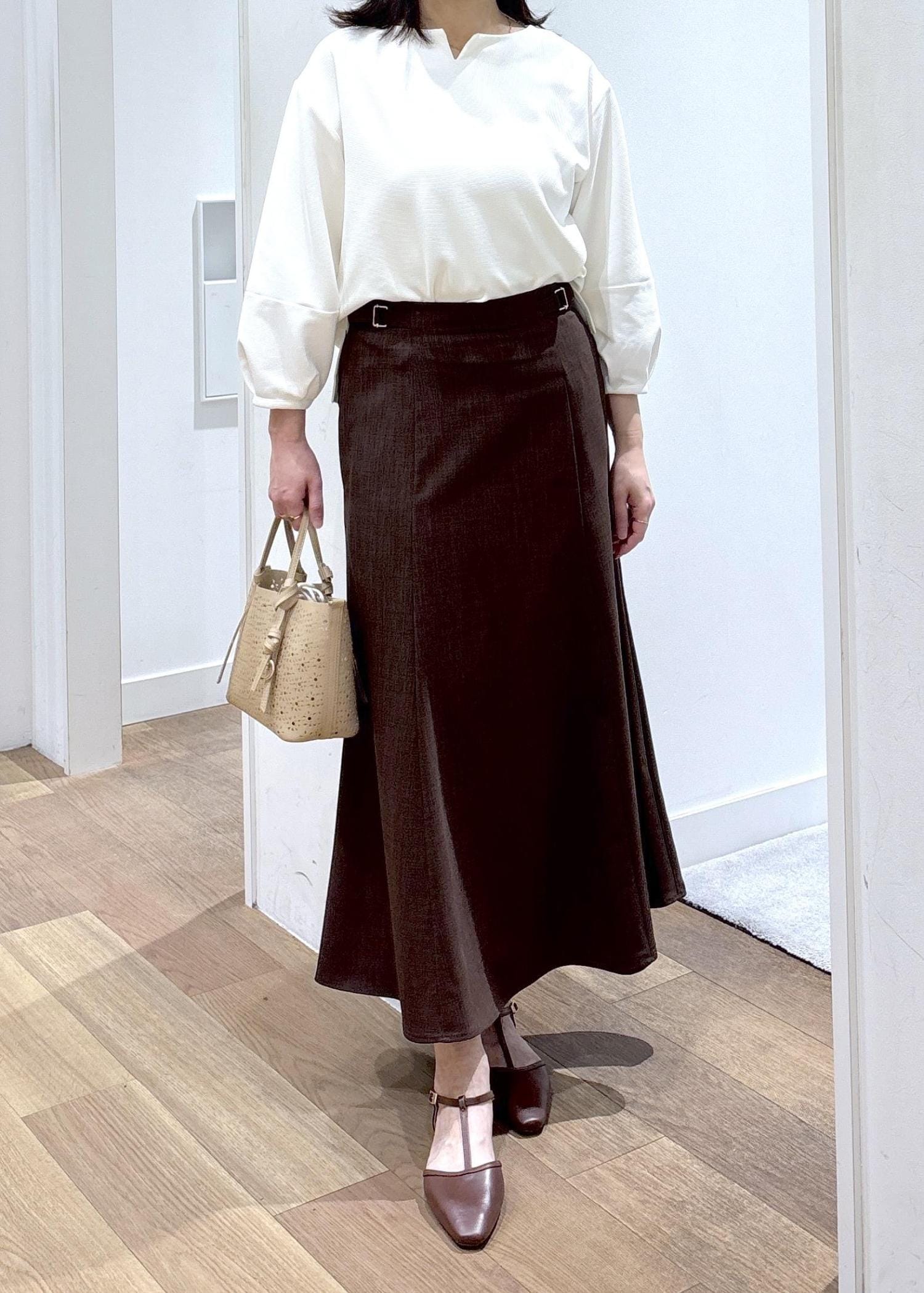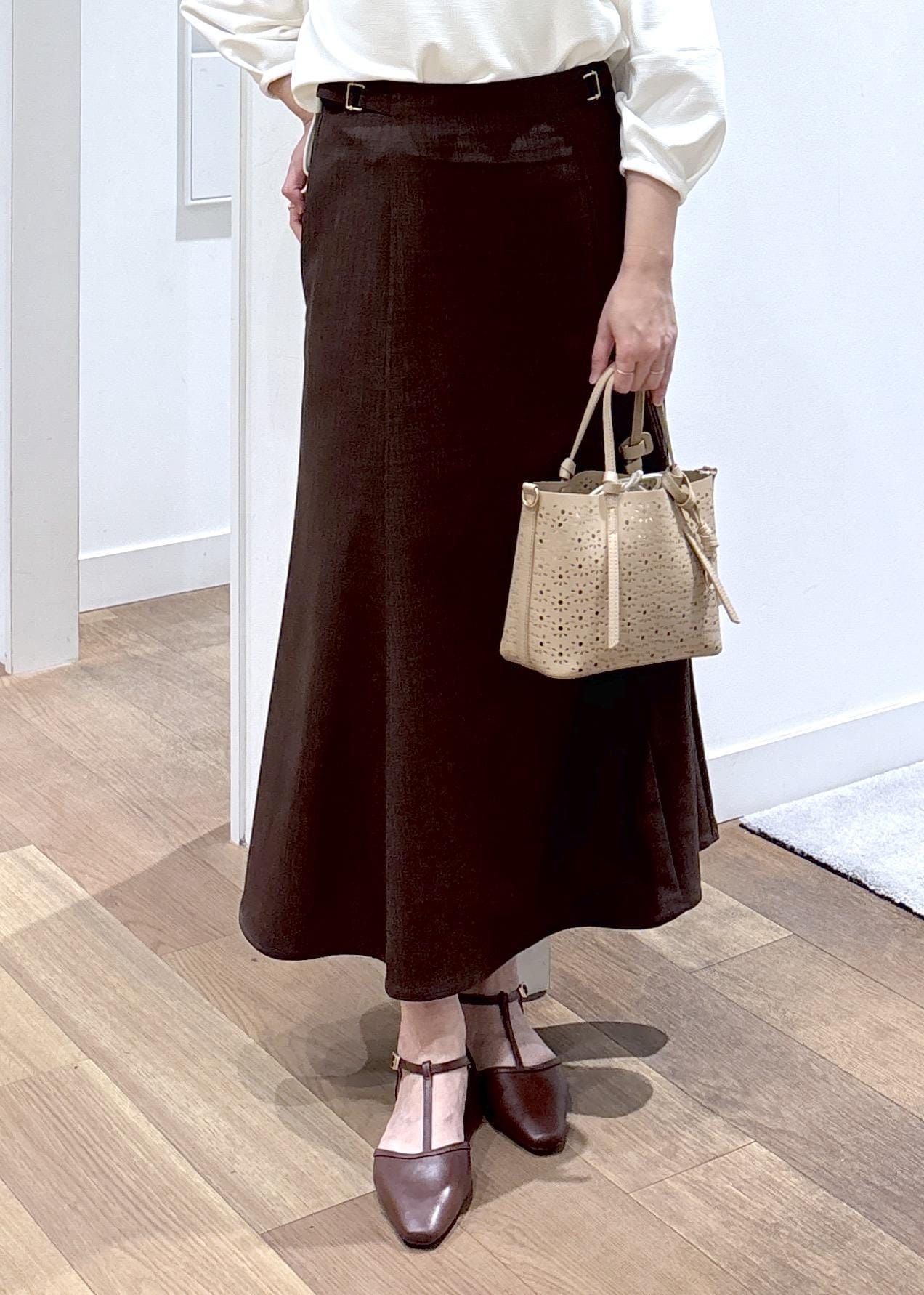 ROPÉ PICNICカナパ サイドベルトマーメイドスカート/セットアップ対応・UV・抗菌防臭・接触冷感ダークブラウン / L¥5,995レビュー物によってMかLサイズを着用しています。腰回りが張っているのでLサイズの方がジャストでした。162㎝で足首がやや出るくらいの着丈でした。