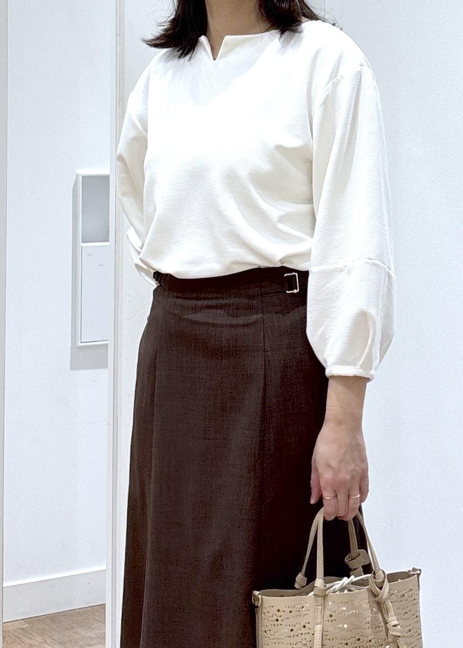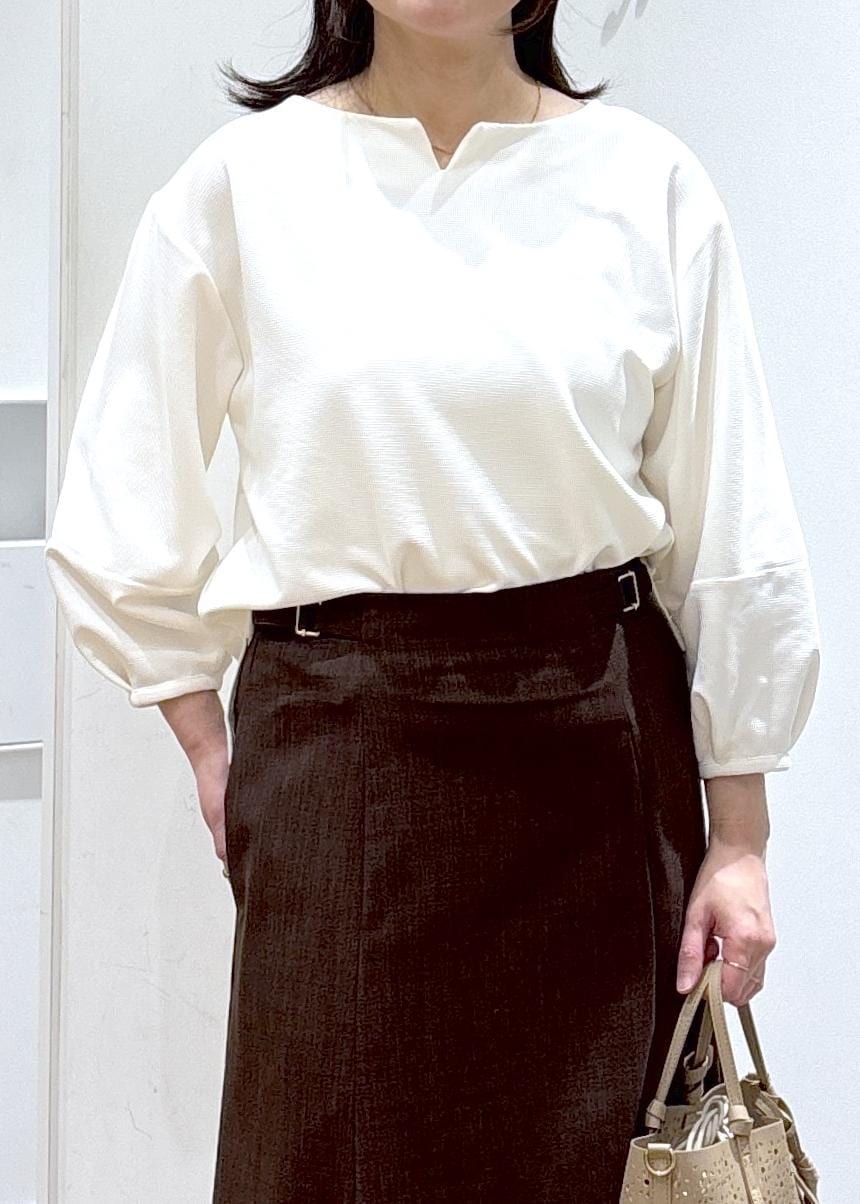 ROPÉ PICNICランタンスリーブリップルカットトップスホワイト / F¥4,499レビュー程よくしっかりした素材なので、スリーブのシルエットなど形が綺麗にでます。162㎝で手首が出るくらいの袖の長さでした。着丈も長すぎないので、インしなくてもすっきり着ていただけます。