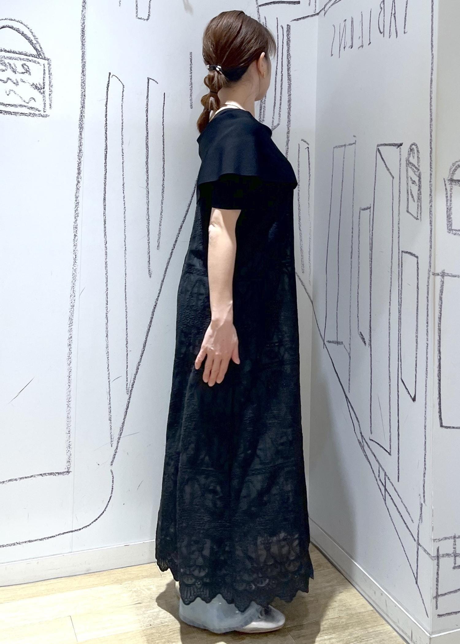 ROPÉ PICNICレースキャミワンピースブラック / F¥6,996レビュー刺繍がナチュラルで涼やかな一枚。アジャスターがついているので小柄さんもコーディネートのアクセントに楽しんで頂けます。