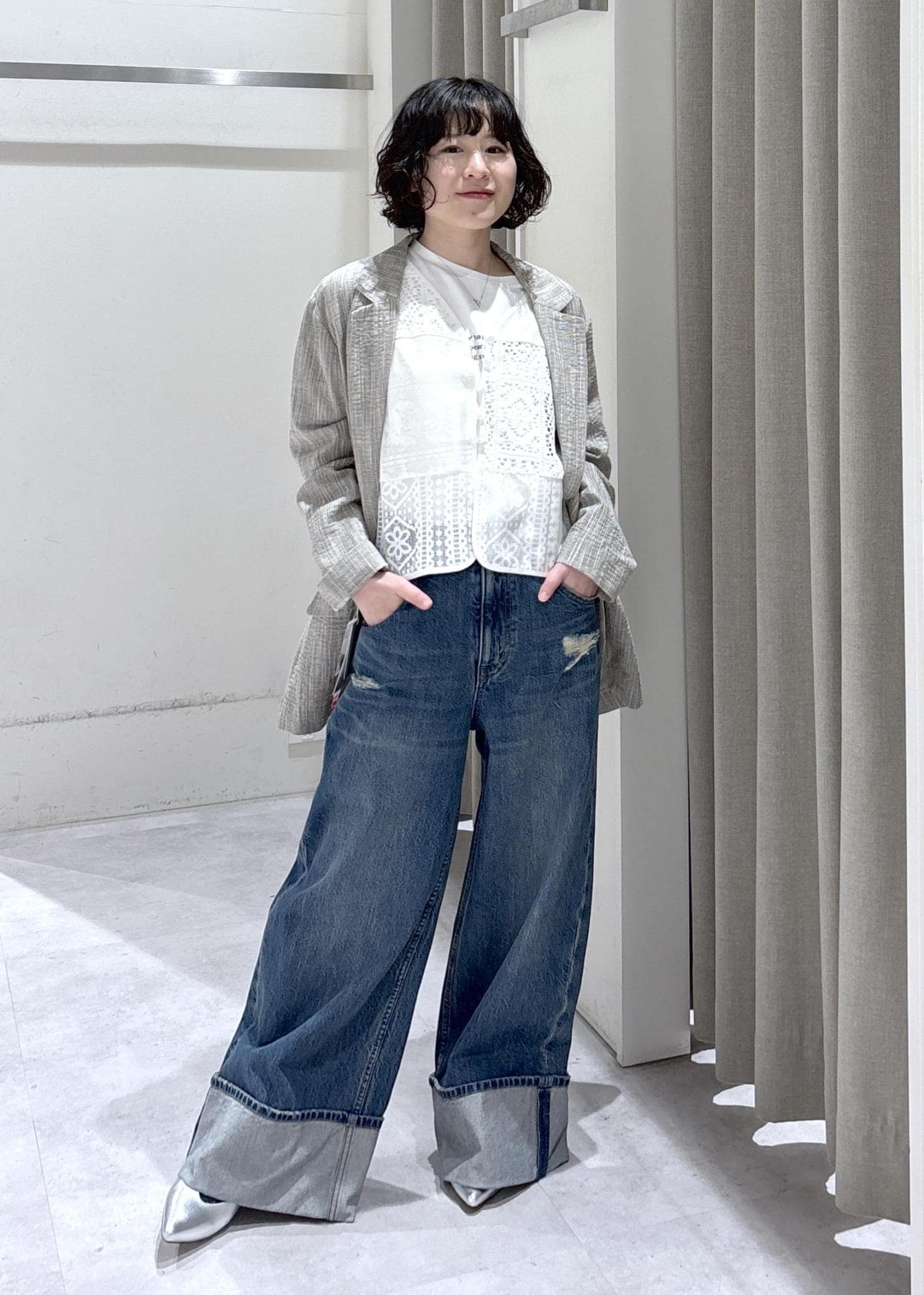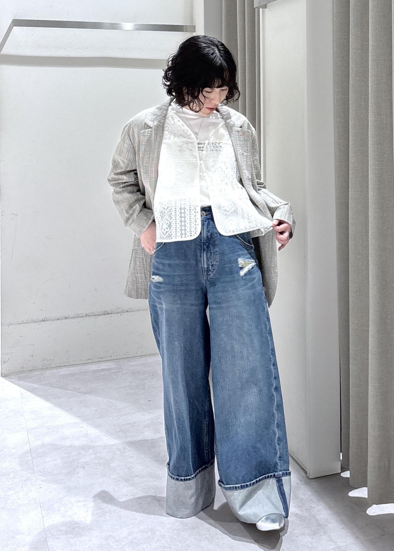 軽やかながら、生地に立体感のあるジャケットを合わせた春コーデ