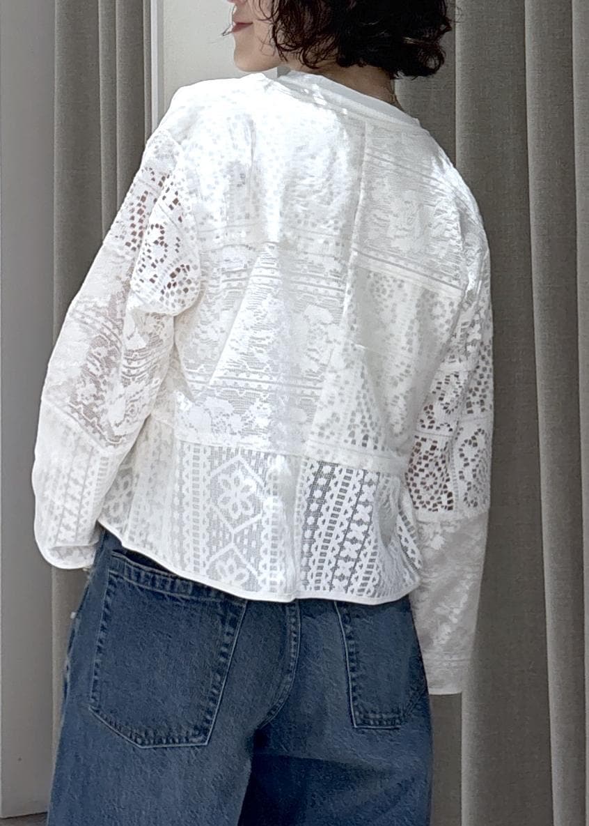 レースのパッチワークは生地はしっかりとしており、様々な組み合わせなので表情のある1枚! -