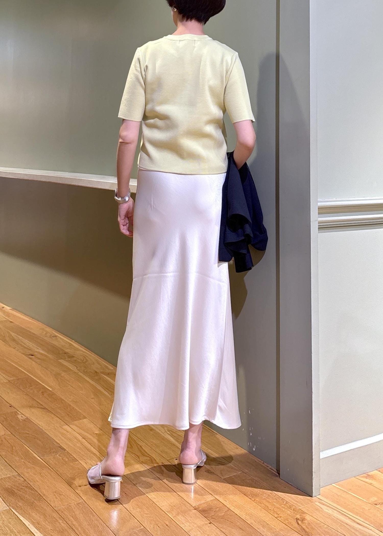 ROPÉ PICNIC細見えバイアスサテンスカート/イージーケアオフホワイト / F¥6,490レビューウエストはオールゴム仕様で、ストレスフリーな穿き心地のサテンスカートです。上品な光沢感がポイントで