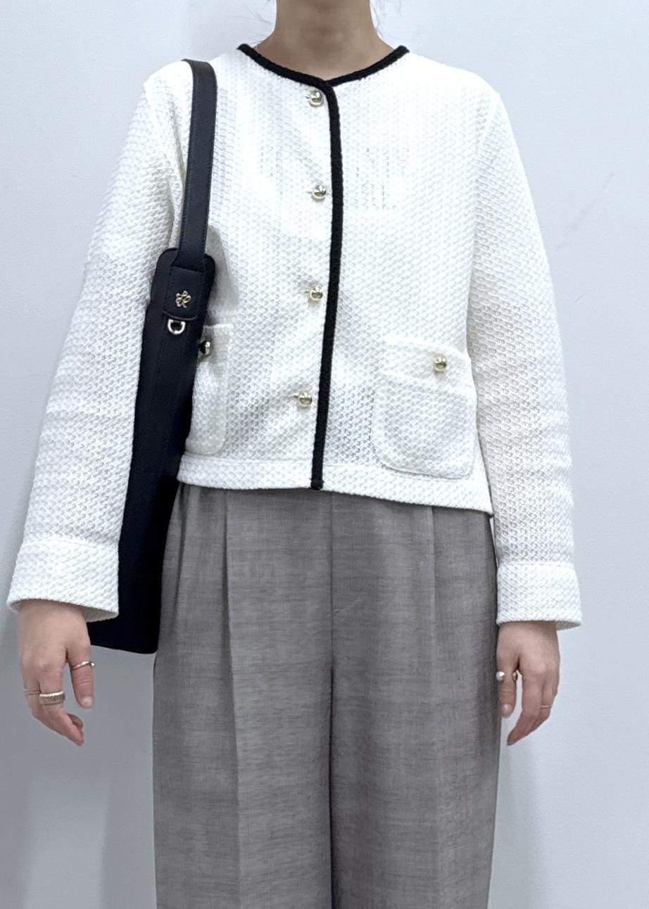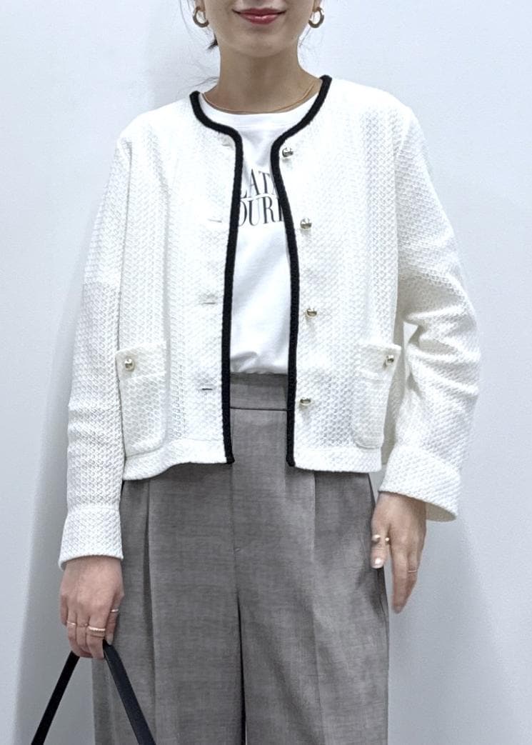 NEW!ROPÉ PICNIC透かし編み金釦カットカーディガンキナリ系 / F¥6,490レビュー長袖ニットではありますが透かし編みで軽さがあるのでジャストで着やすいのと夏は冷房対策として強い味方になってくれます。着丈は腰に掛かる長さでボトムス選ばず合わせやすいです。