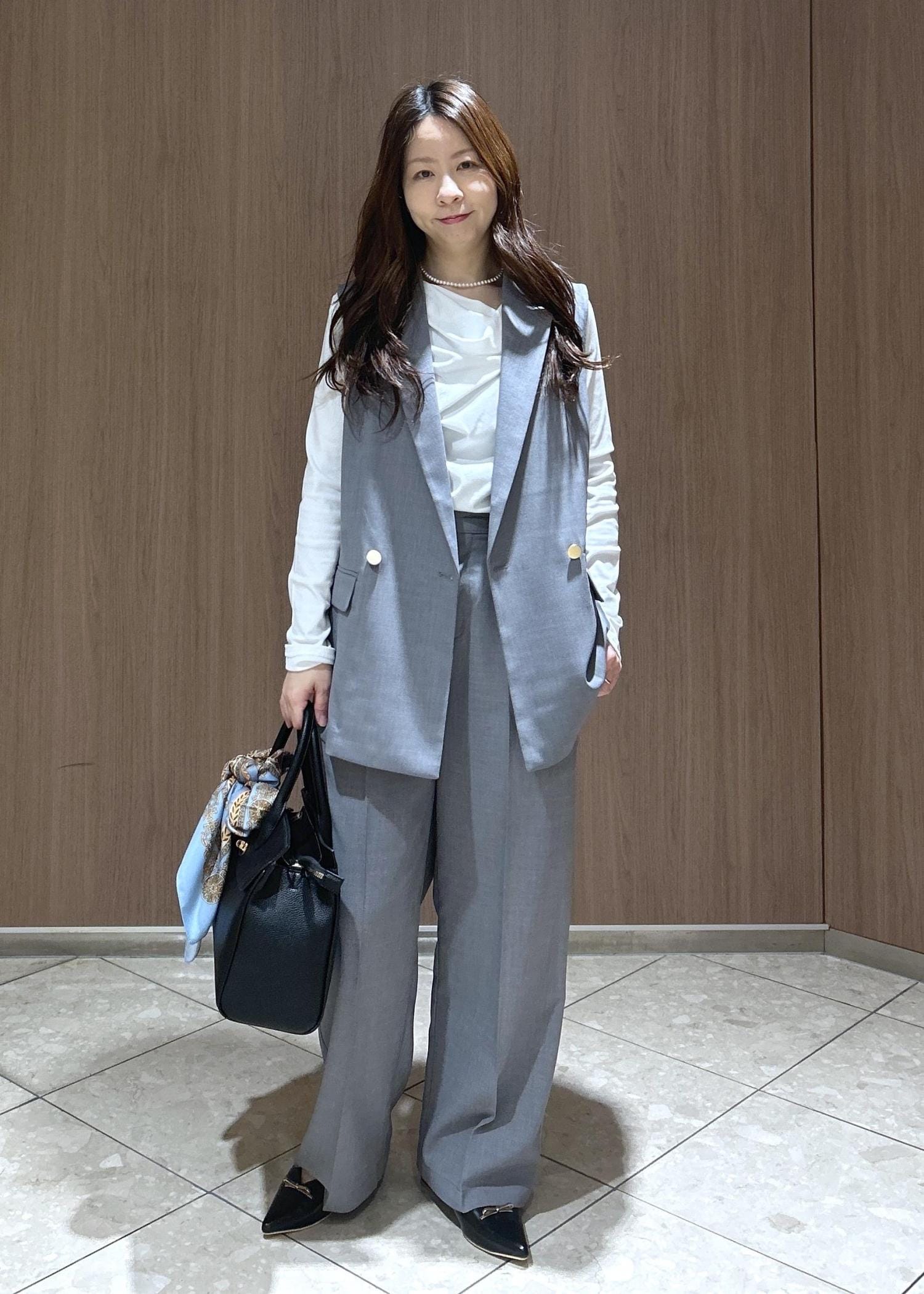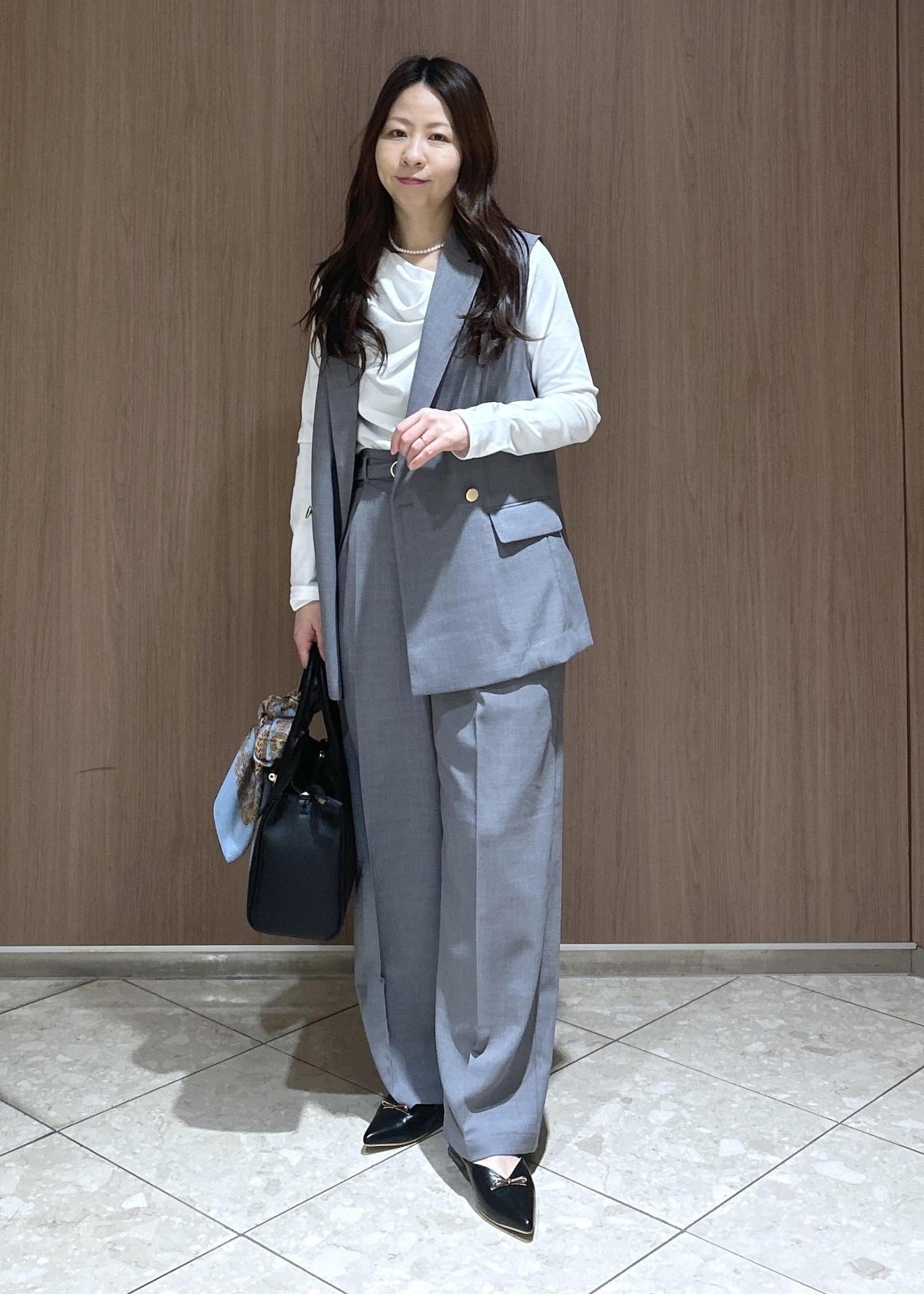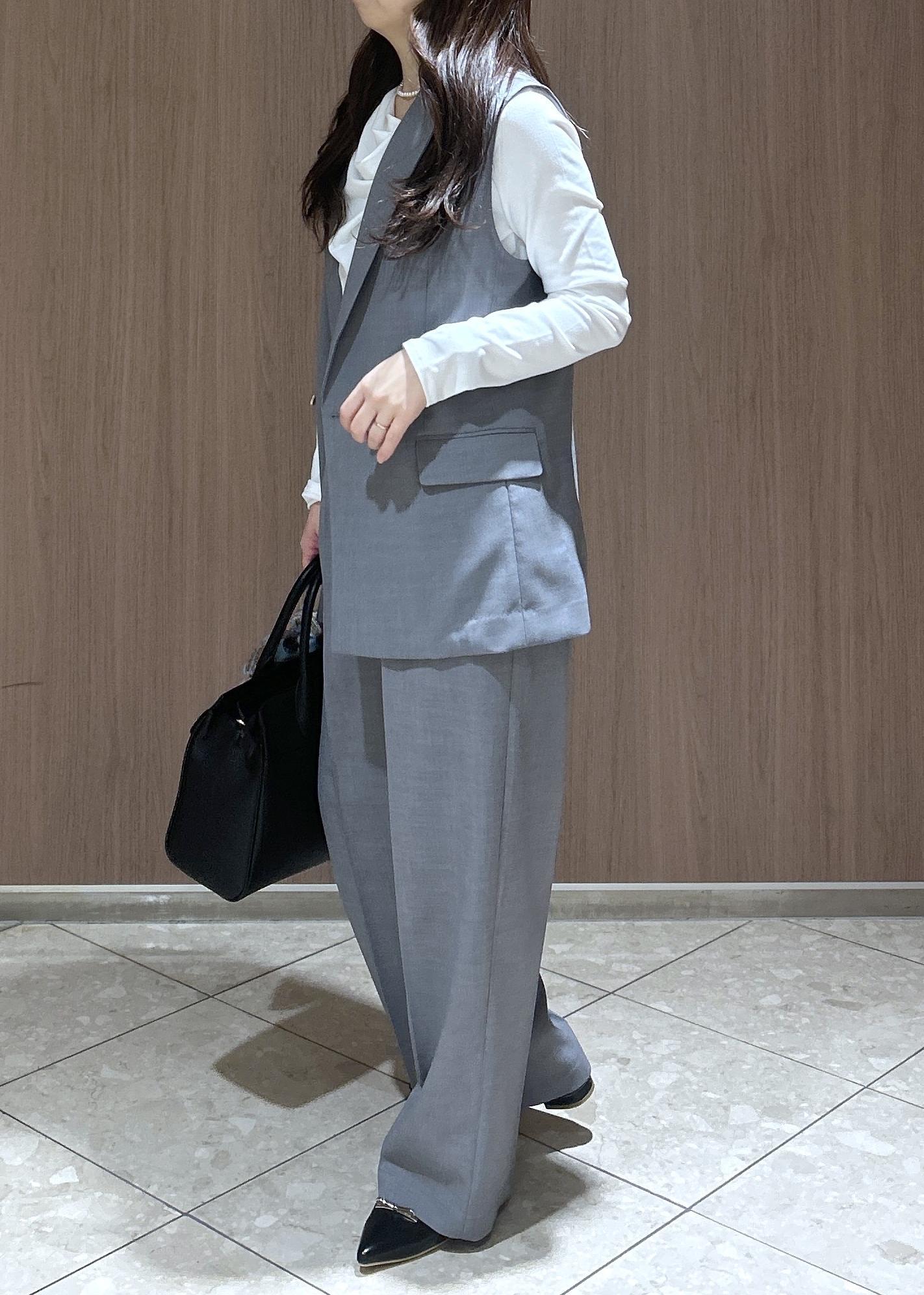 白とグレーでベーシックなカラー合わせなので、お仕事にも活用しやすいアイテムです。カナパシリーズはこのセット以外にもジャケット、スカート、ガウチョパンツがあるので、セットで購入するのをお勧めします!
