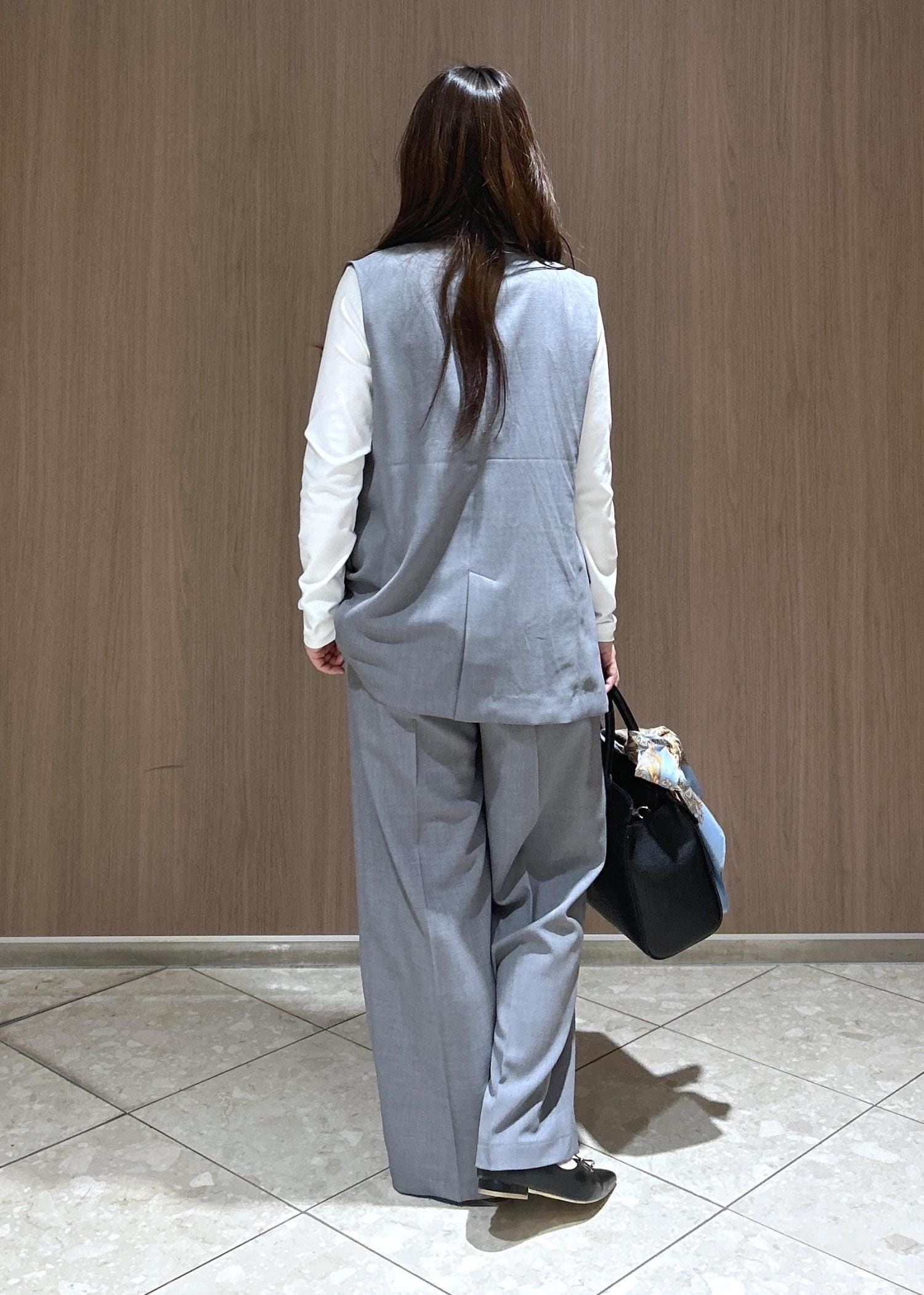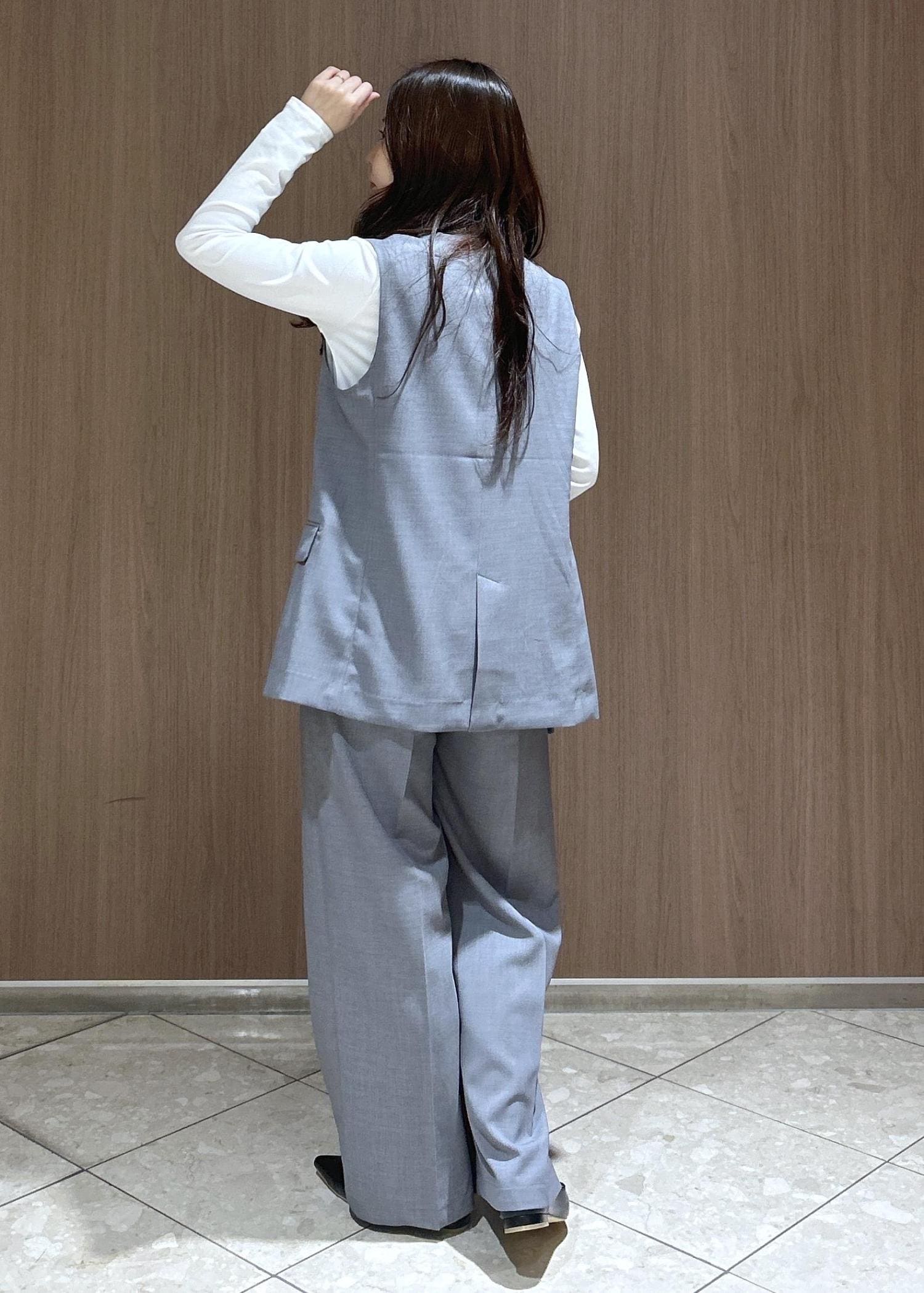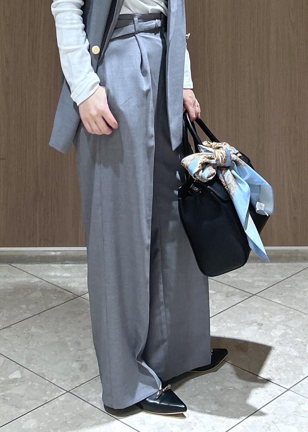 白とグレーでベーシックなカラー合わせなので、お仕事にも活用しやすいアイテムです。カナパシリーズはこのセット以外にもジャケット、スカート、ガウチョパンツがあるので、セットで購入するのをお勧めします!
