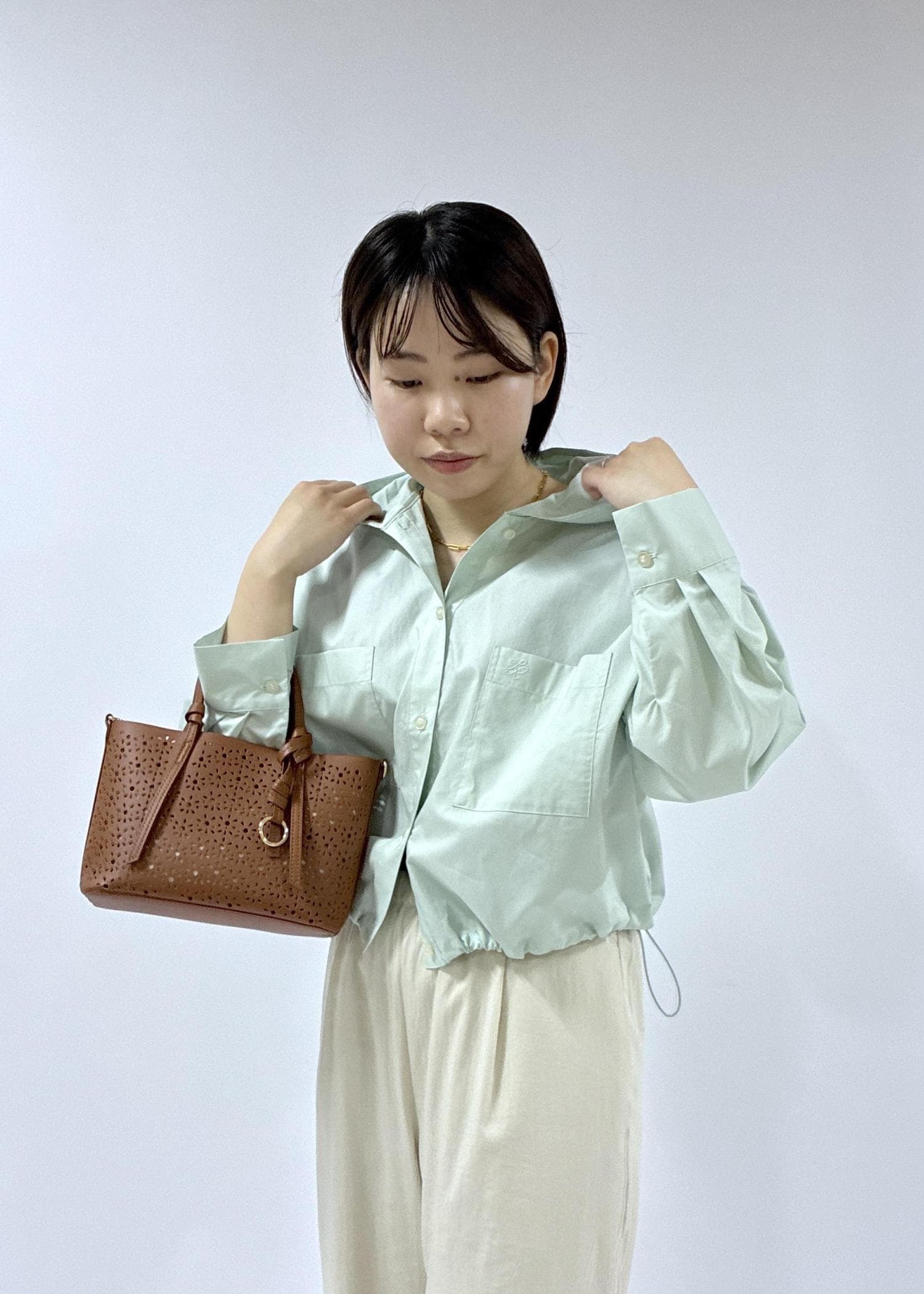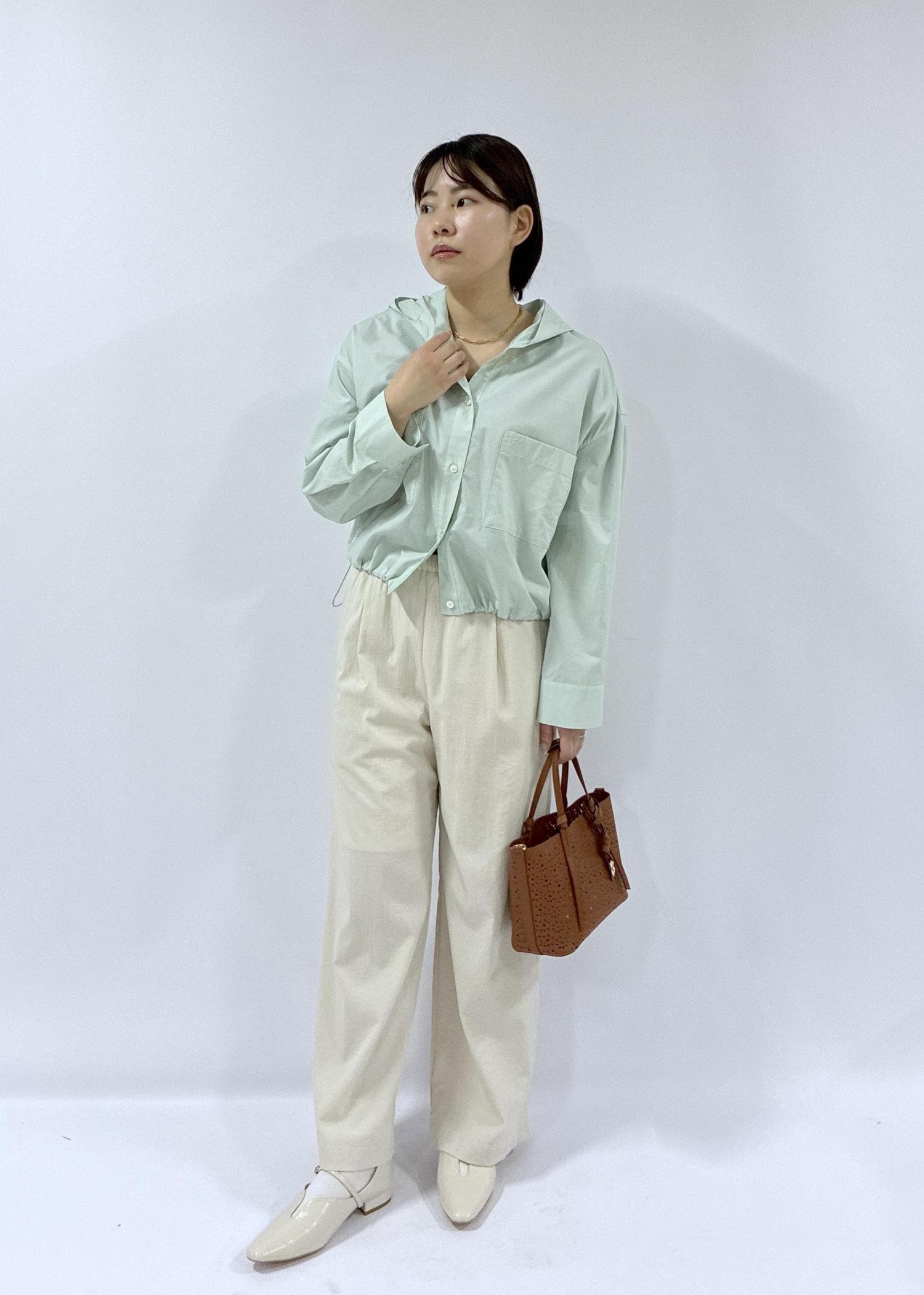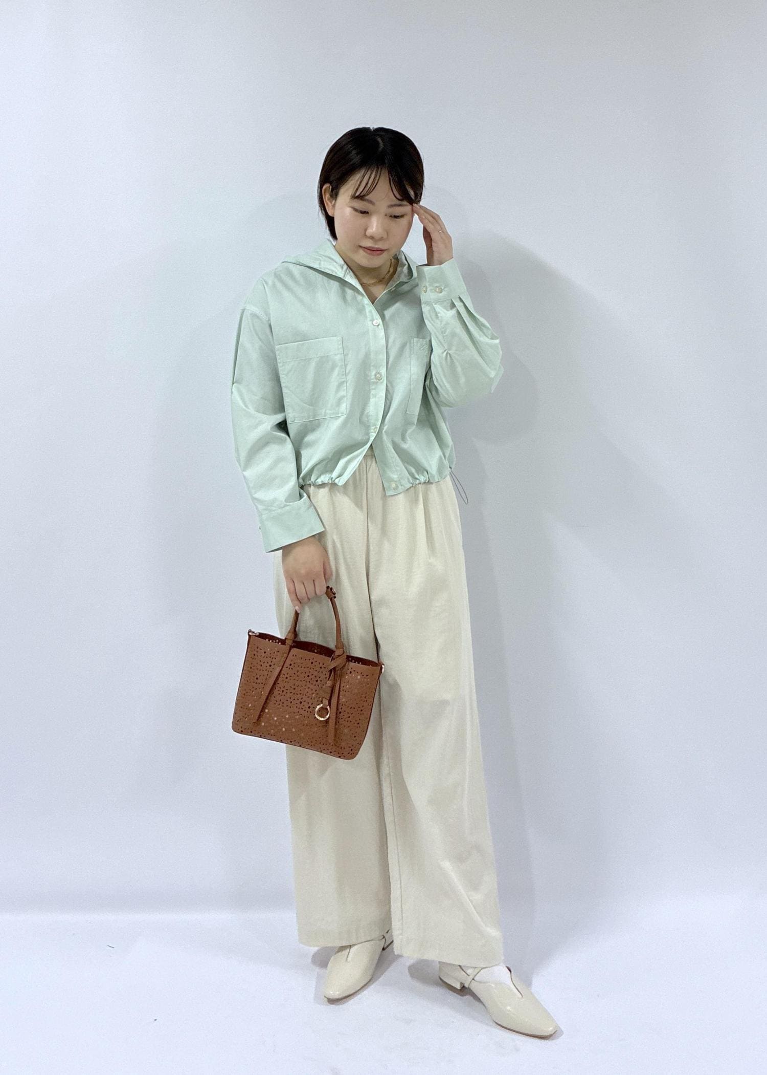 グリーン映えるシャツコーデ