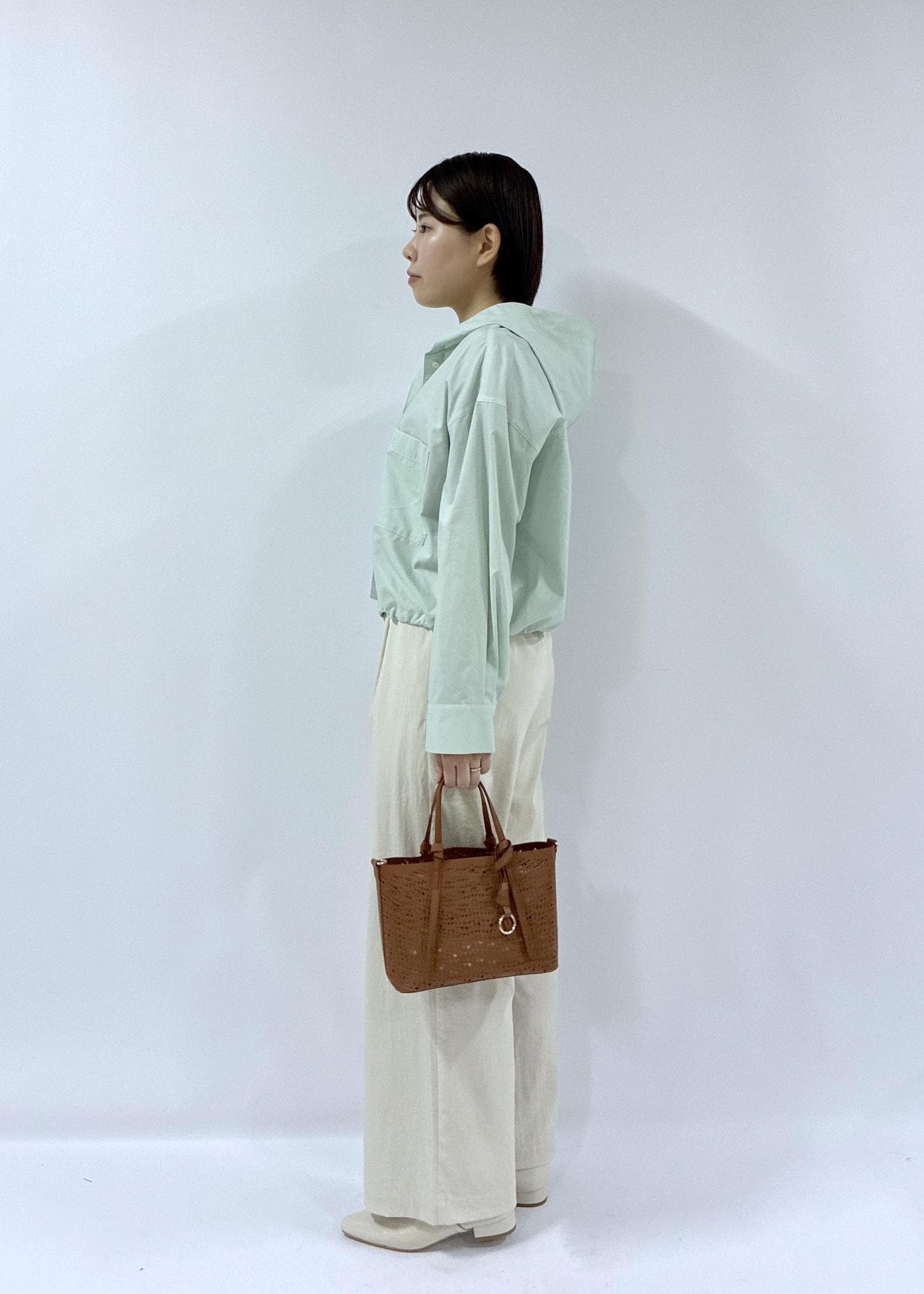ROPÉ PICNICフーディーシャツライトグリーン / F¥6,490レビュードロストを調整することで、ベーシックなストレートシルエットと、丸みのあるバルーンライクの2通りが楽しめるシルエットです。