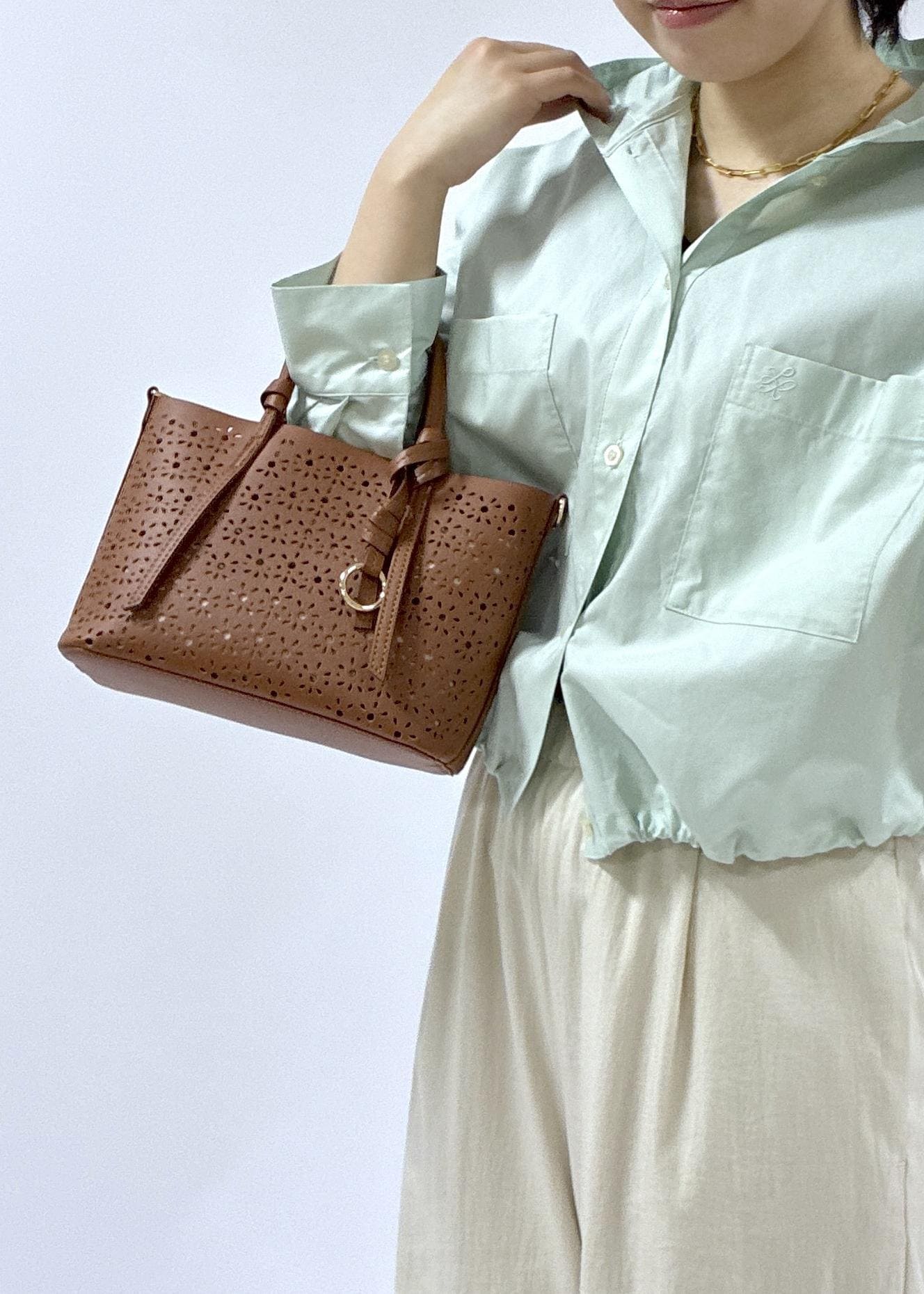 ROPÉ PICNIC PASSAGEフルーレットパンチングレースミニショルダーバッグ/2WAYブラウン / F¥6,490レビューレース見えするパンチングなので、春らしいスタイリングの先見せでおすすめ!
