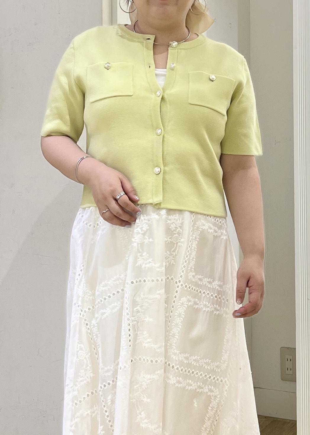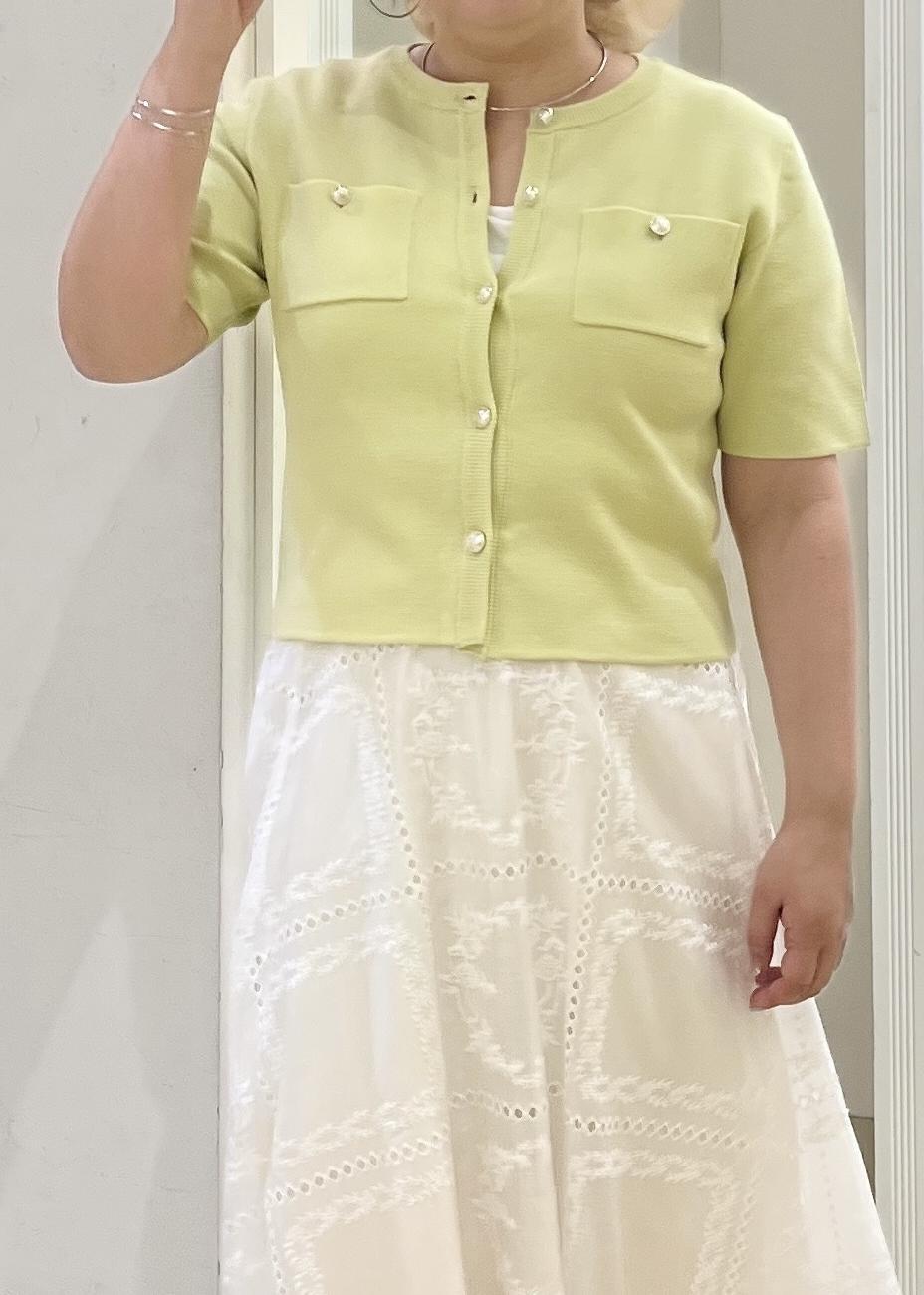 ROPÉ PICNICミラノリブ金ボタン半袖カーディガンキミドリ / F¥5,489レビュージャケット見えする綺麗めアイテムですが