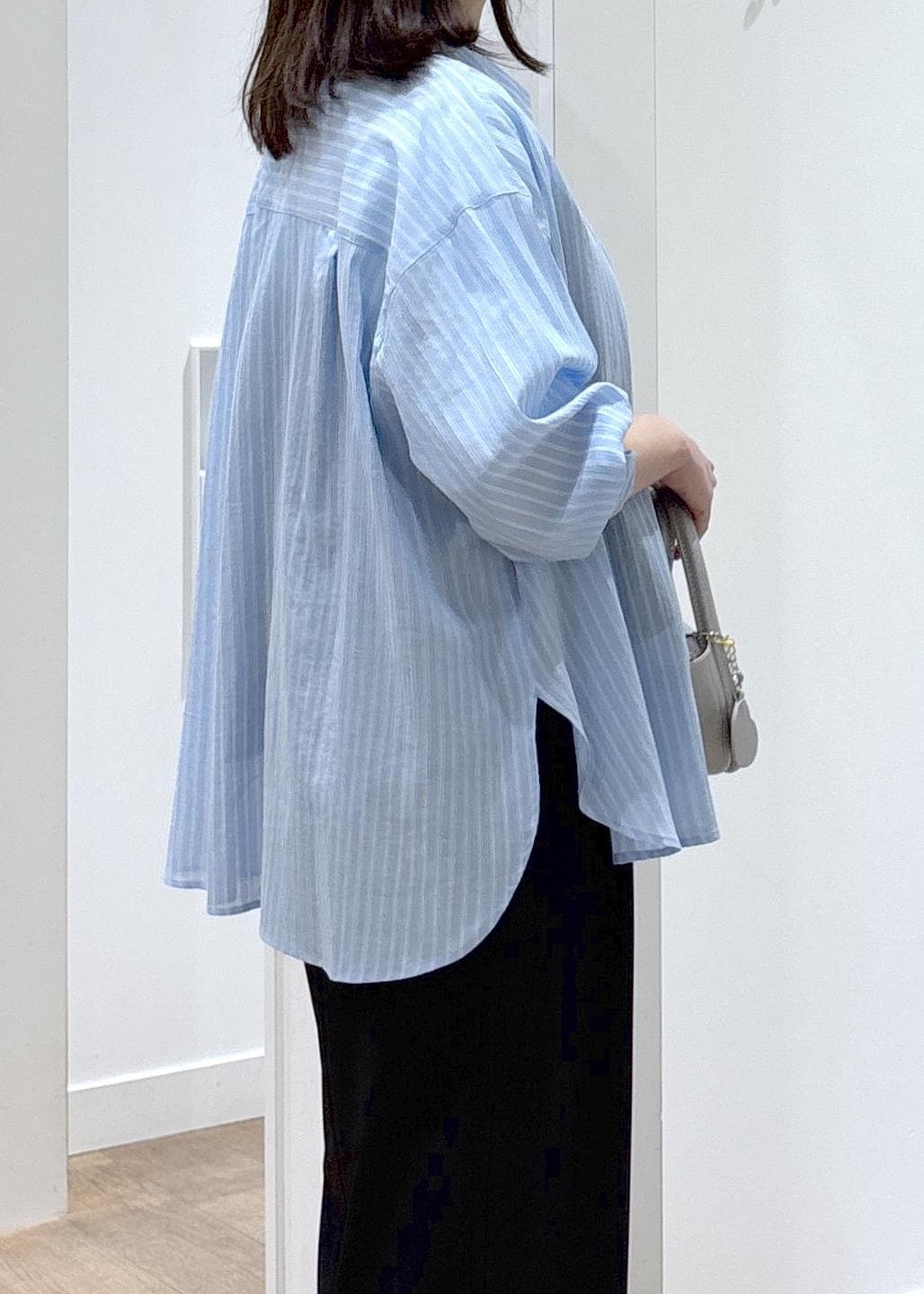ROPÉ PICNICお着軽シャツシリーズ コットンボイル2WAYカシュクールシャツ/接触冷感・通気性ブルー系 / F¥4,499レビュー通気性も良くさらっとした素材が気持ちの良いシャツです。かなりゆったりめのサイズ感でお尻が隠れるくらいの着丈です。