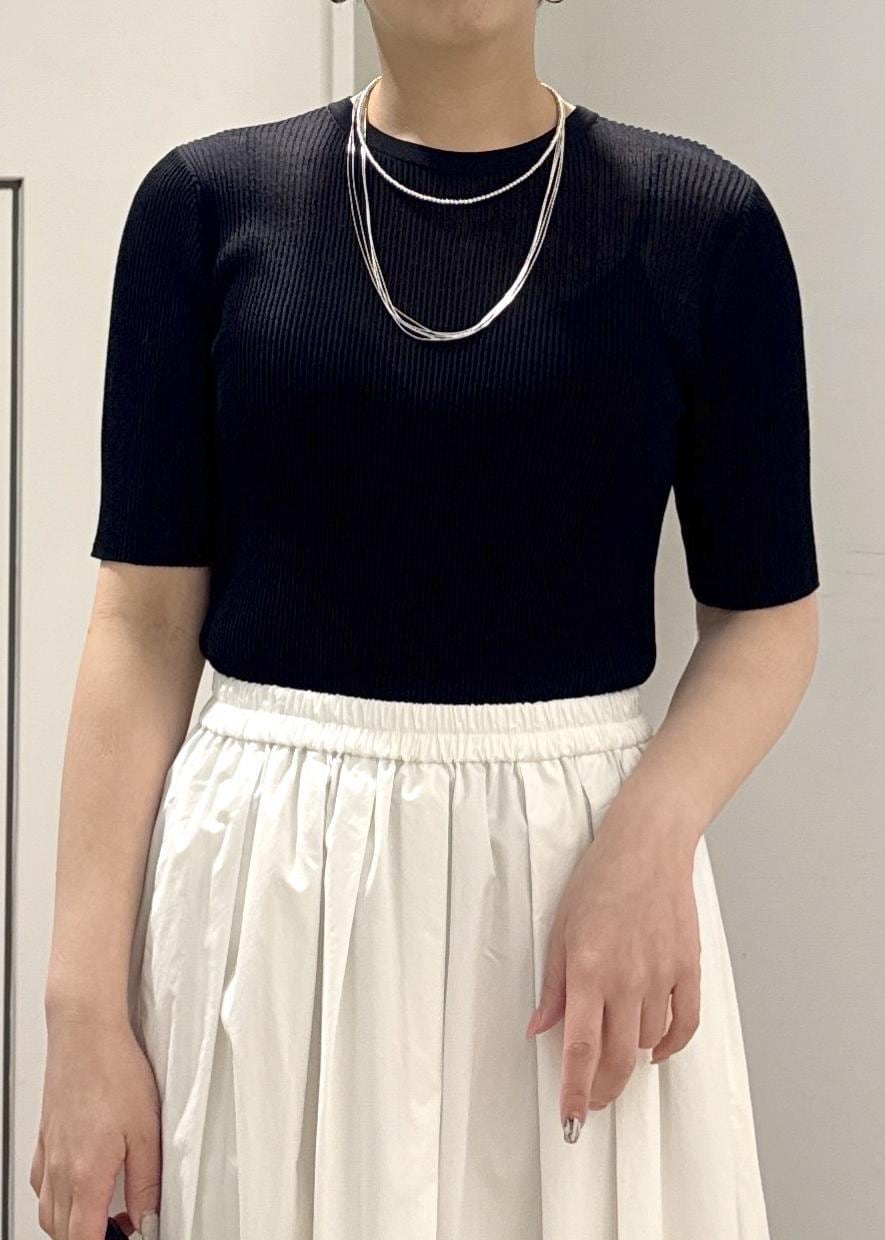 SALON adam et ropé【WEB限定】シアーリブニットハーフスリーブプルオーバーブラック / F¥16,500レビュータイトな見た目ですが