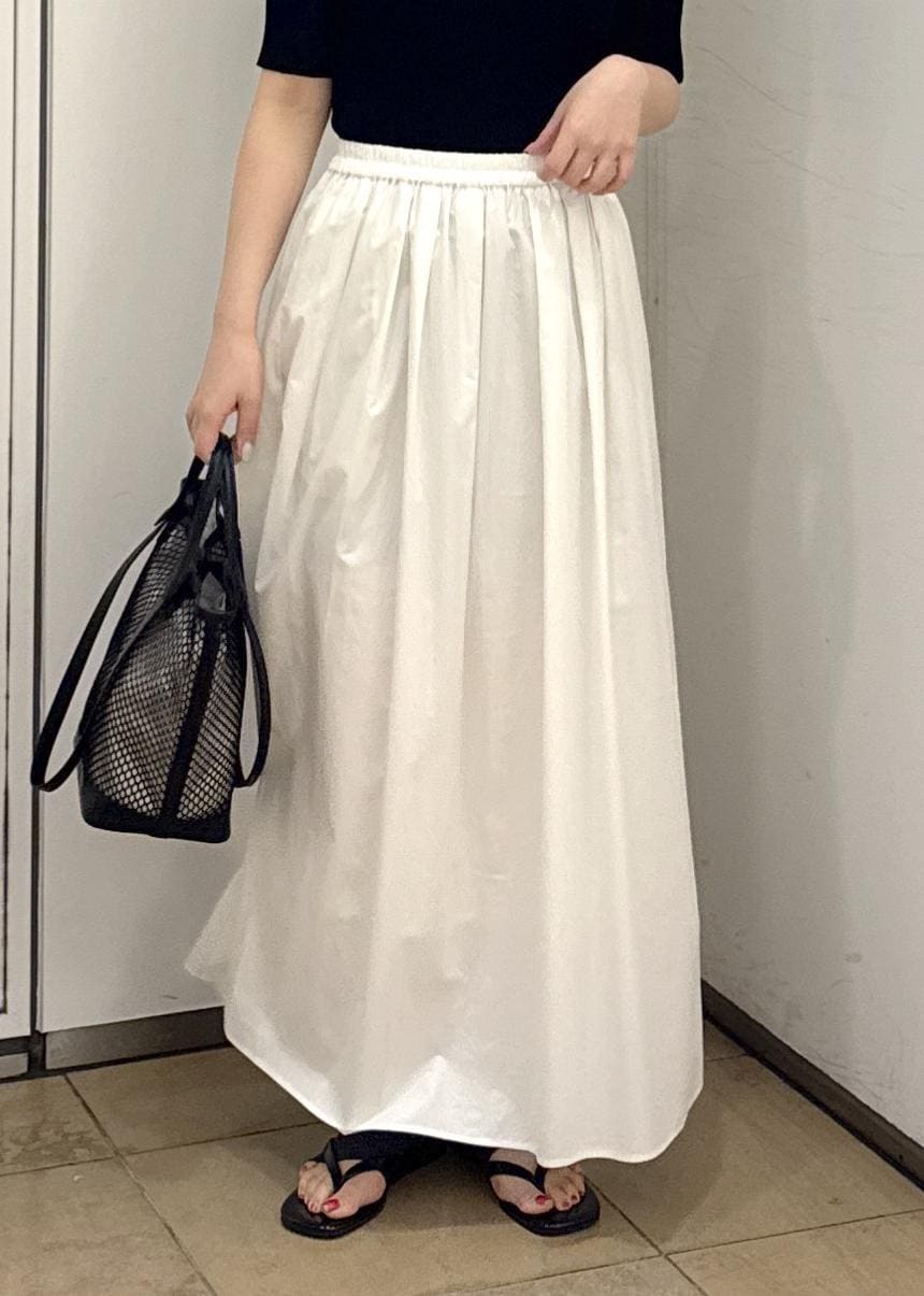 SALON adam et ropéコーティングギャザータックスカート / セットアップ対応ホワイト / F¥25,300レビューかなり軽い履き心地で春から夏場にかけても