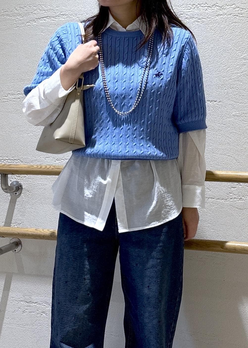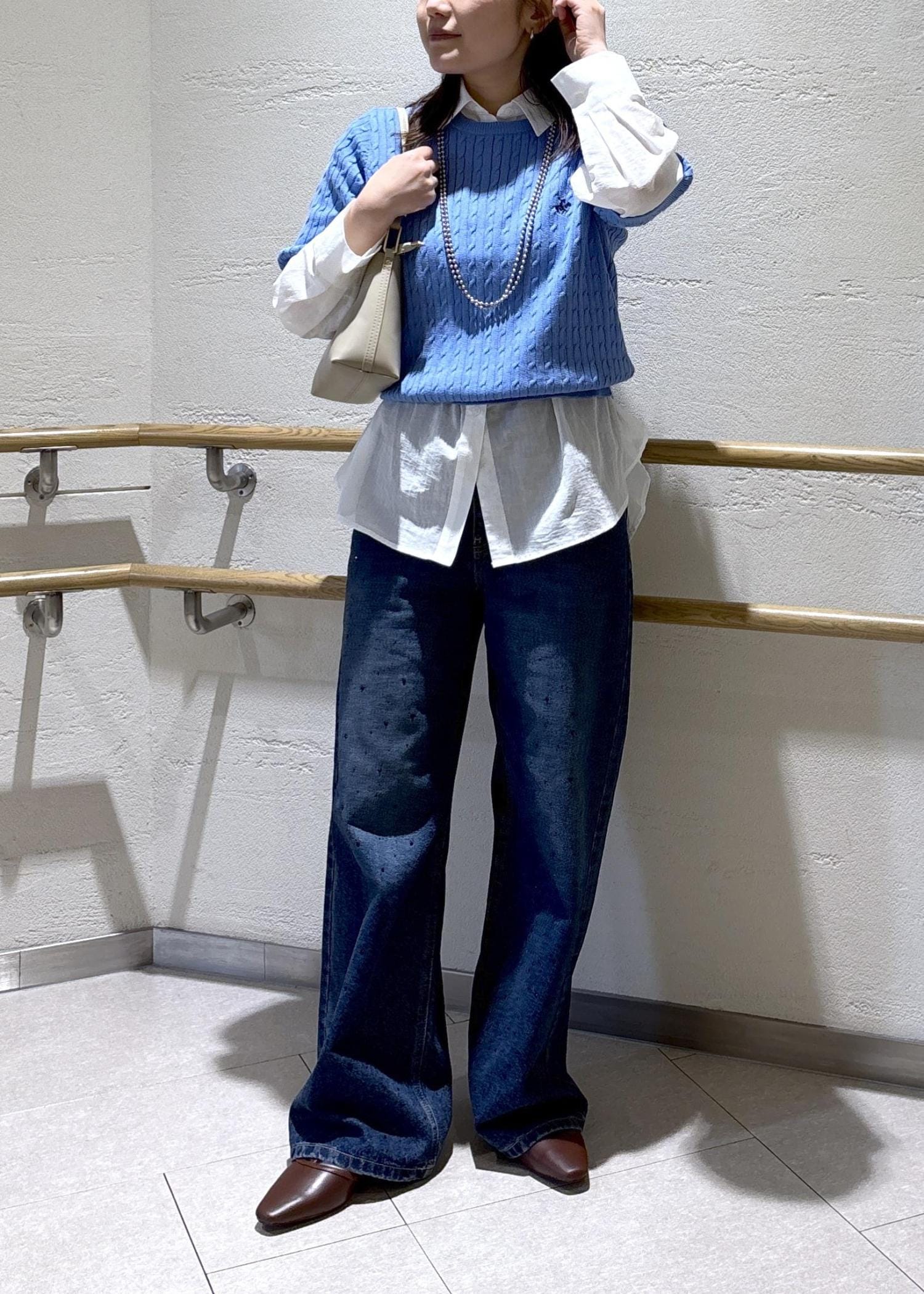 【BEVERLY HILLS POLO CLUB 】ケーブルニットプルオーバーを使ったカジュアルコーデ。