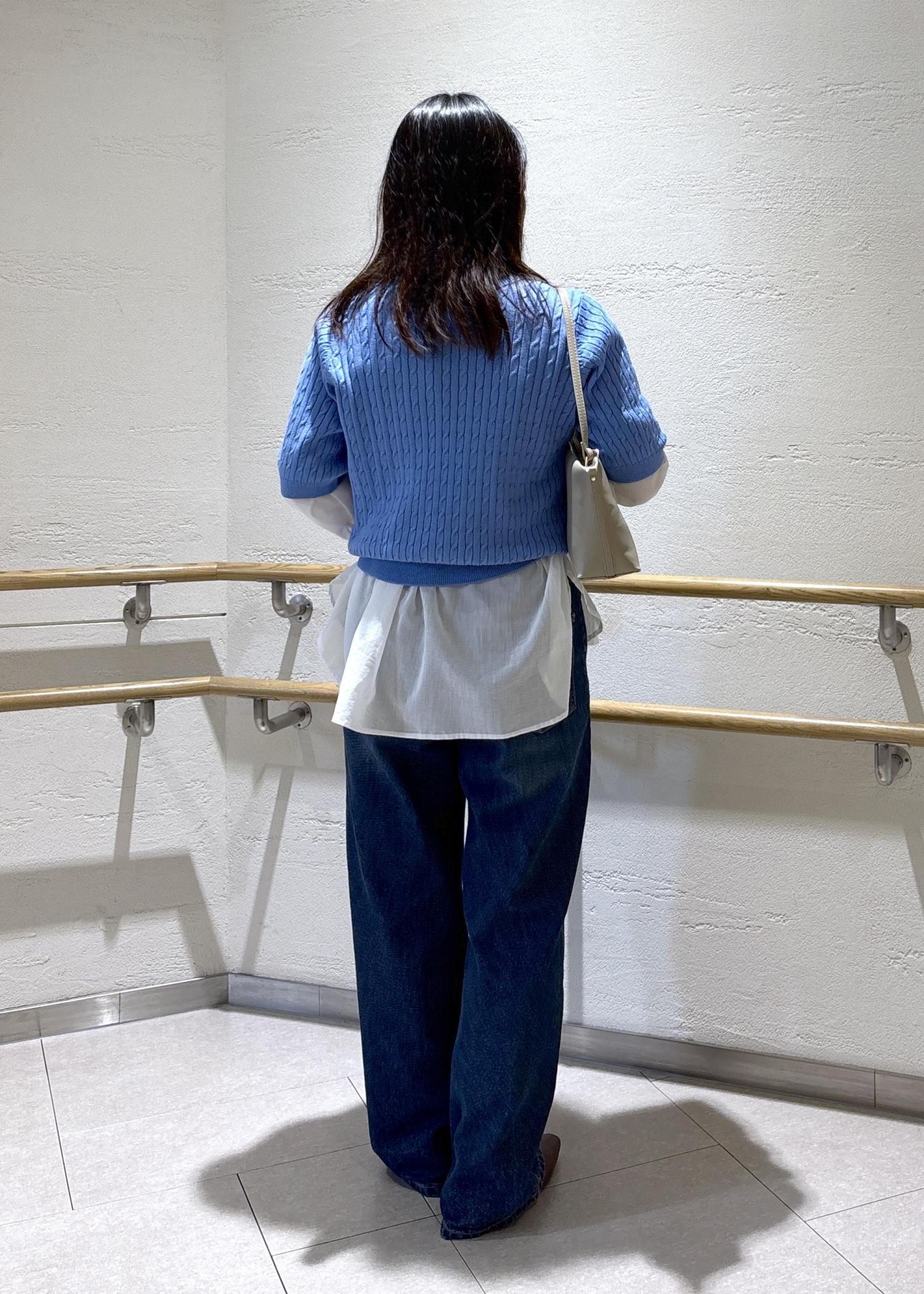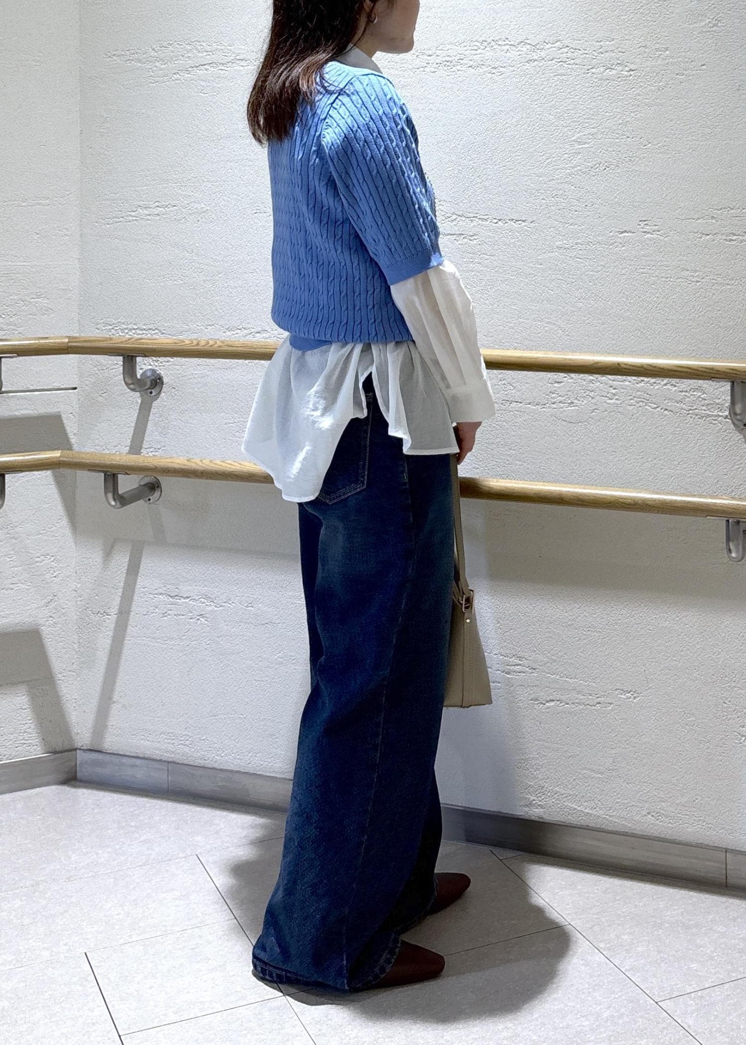 夏場は一枚着で、今の時期だとシャツを合わせて、レイヤードスタイルにすると今っぽく着れます!
