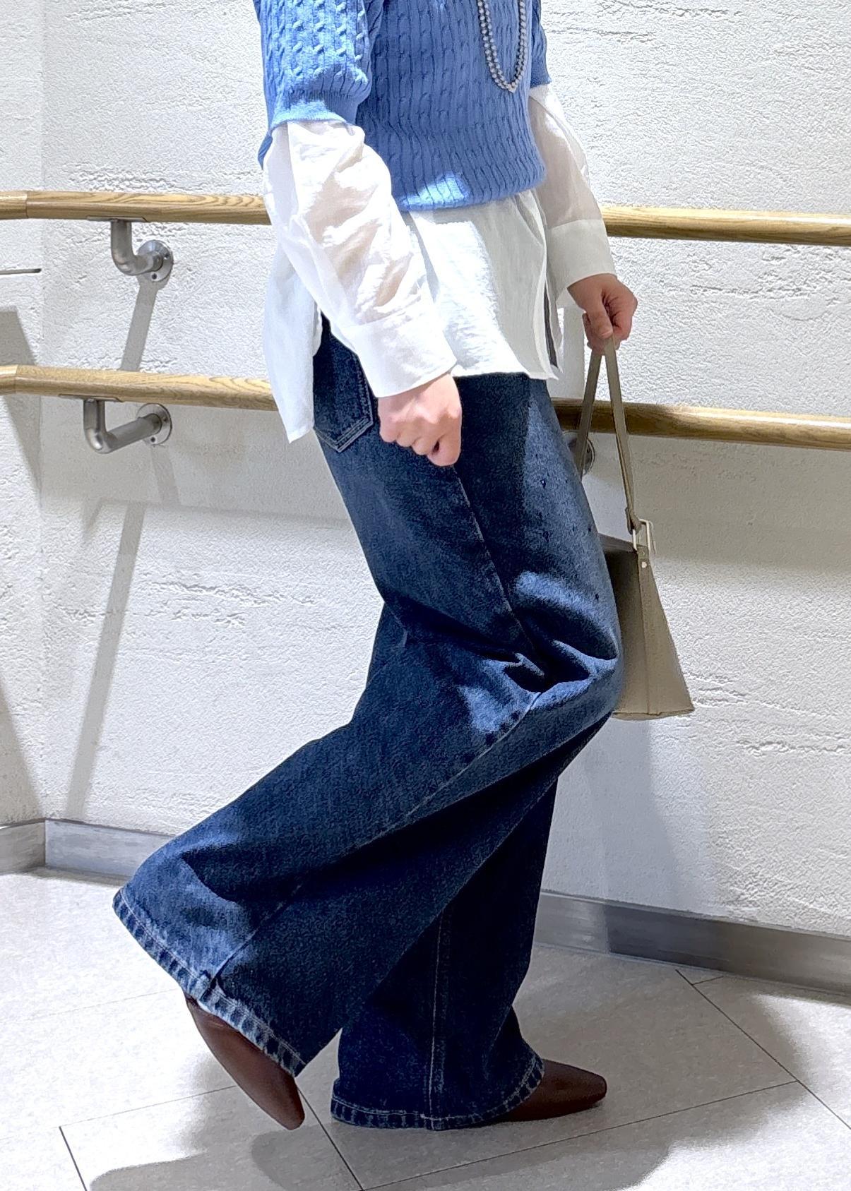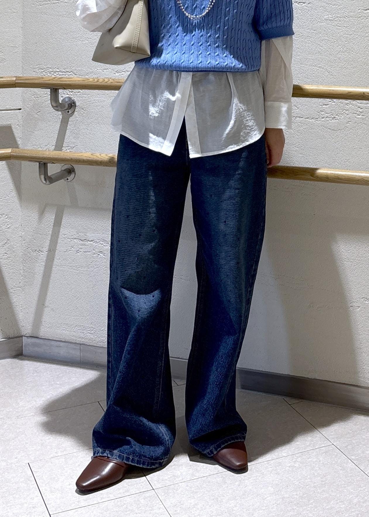 ROPÉ PICNICパールキラキラビジューデニムネイビー / M¥7,491レビューネイビーだと、ブルー系のビジューが付いていて、ほどよくキラキラしています。