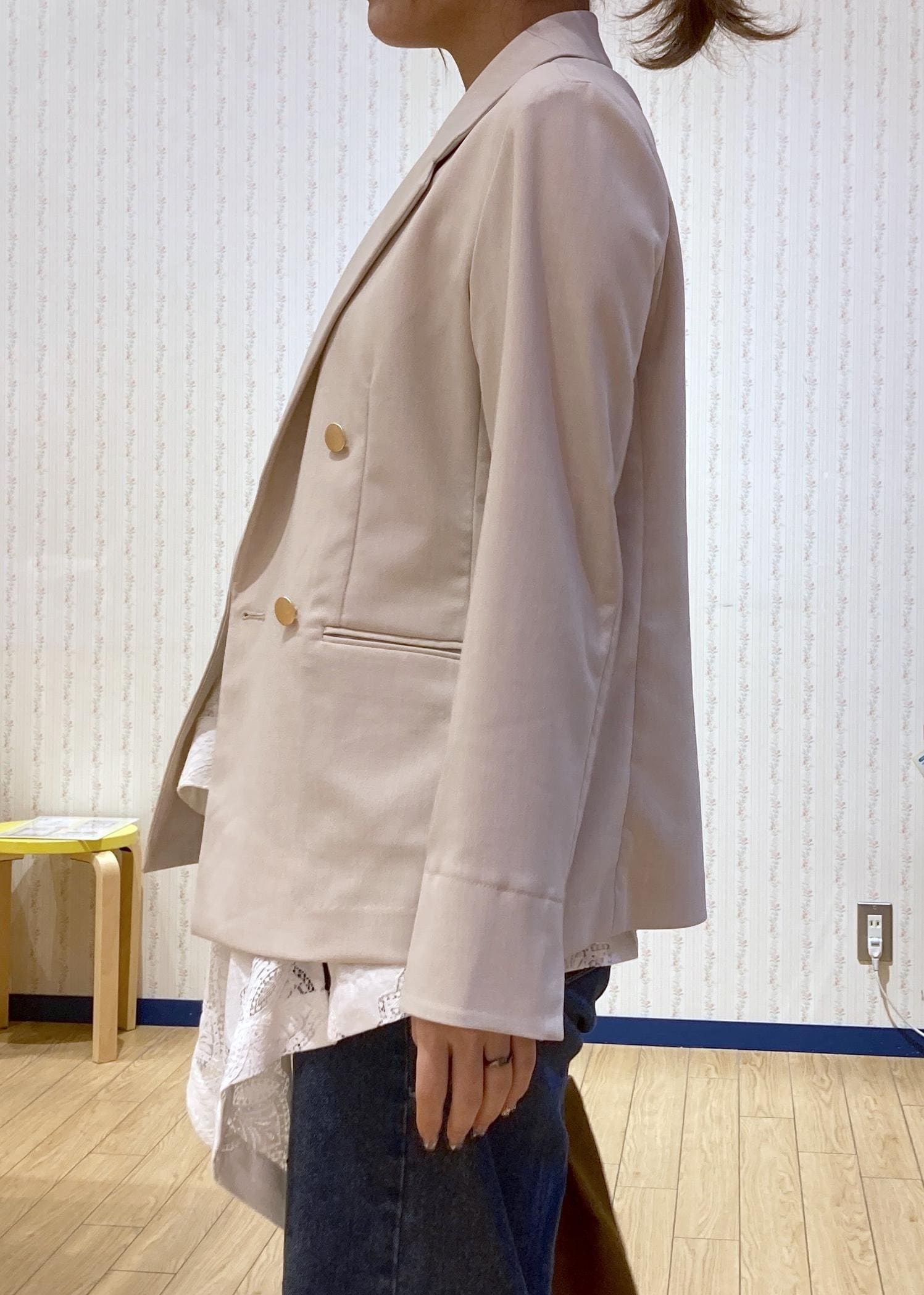 裏地がないのでシャツ感覚で羽織るだけできちんと感がプラスできる万能アイテムです。 -