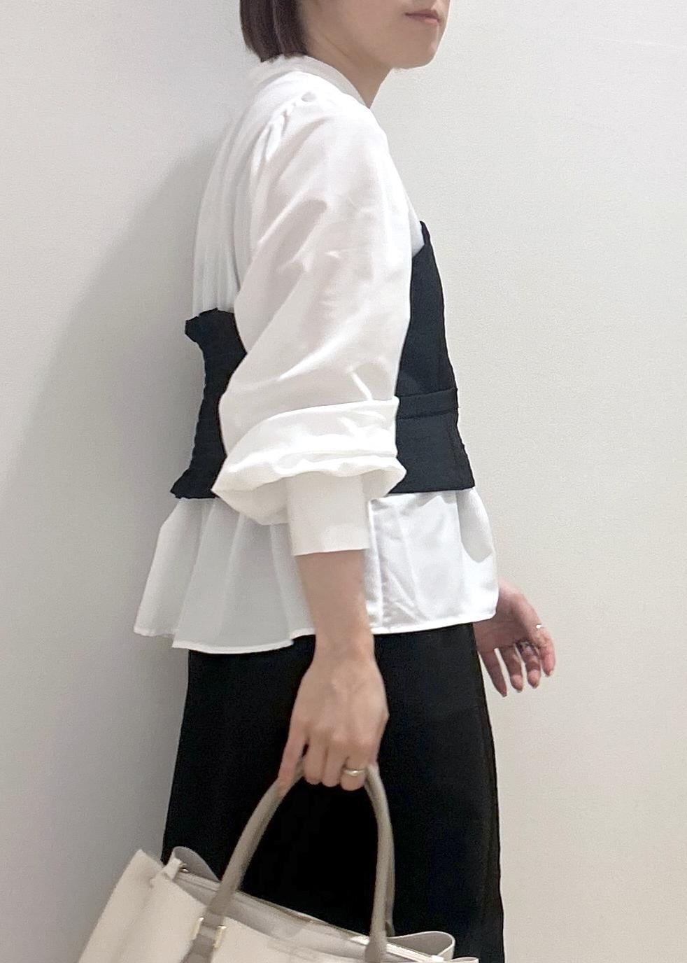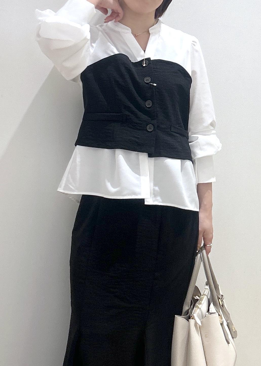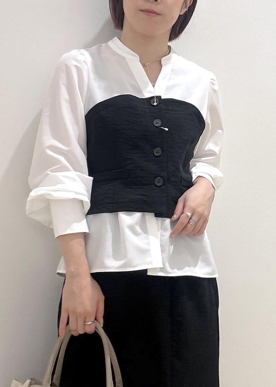 VIS美easy前開きビスチェドッキングシャツ/イージーケア・接触冷感・セットアップ対応ブラック / F¥5,929レビューブラウスとビスチェがドッキングしたデザインで、1枚で済むので着膨れせずスッキリと着用できます。