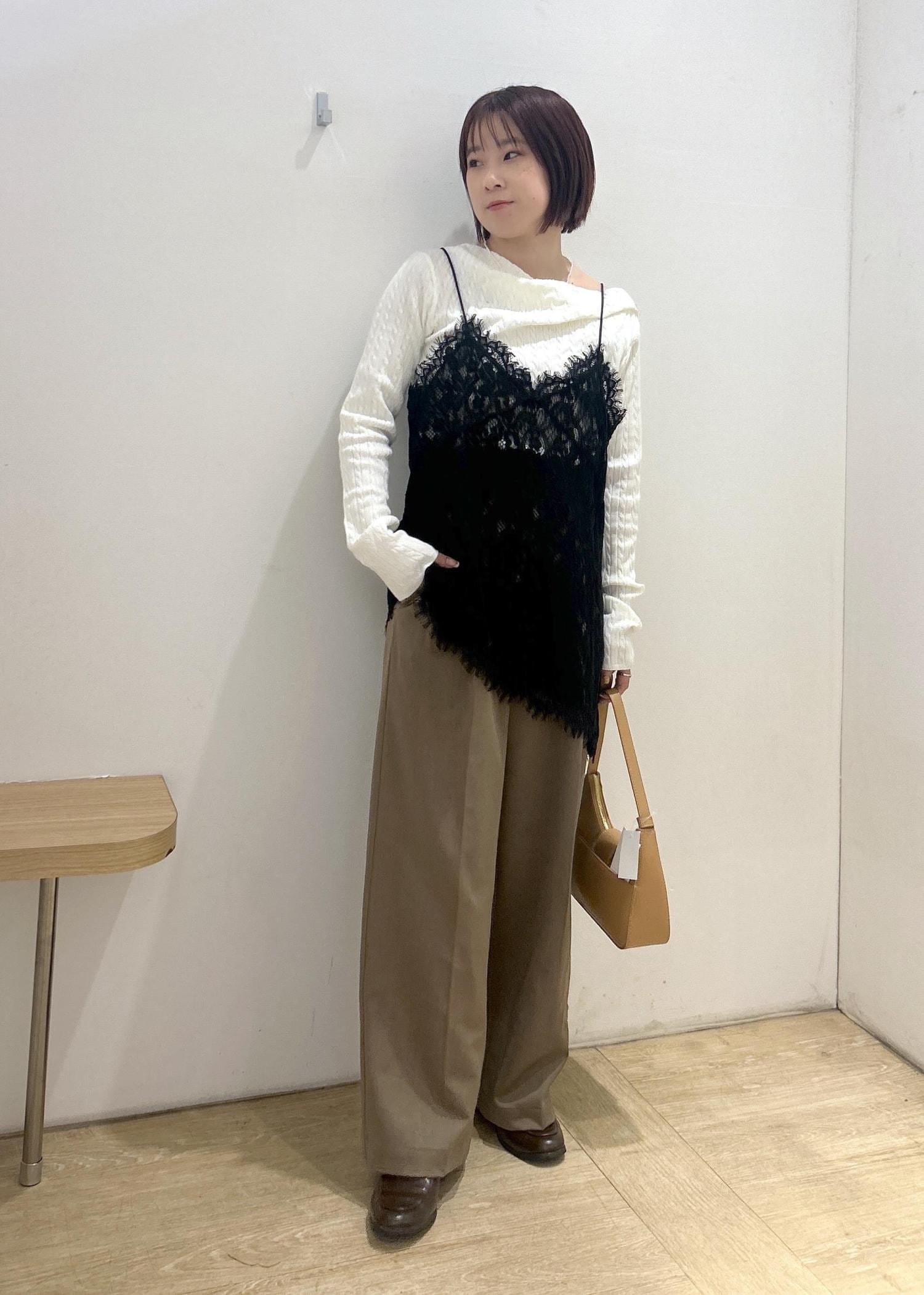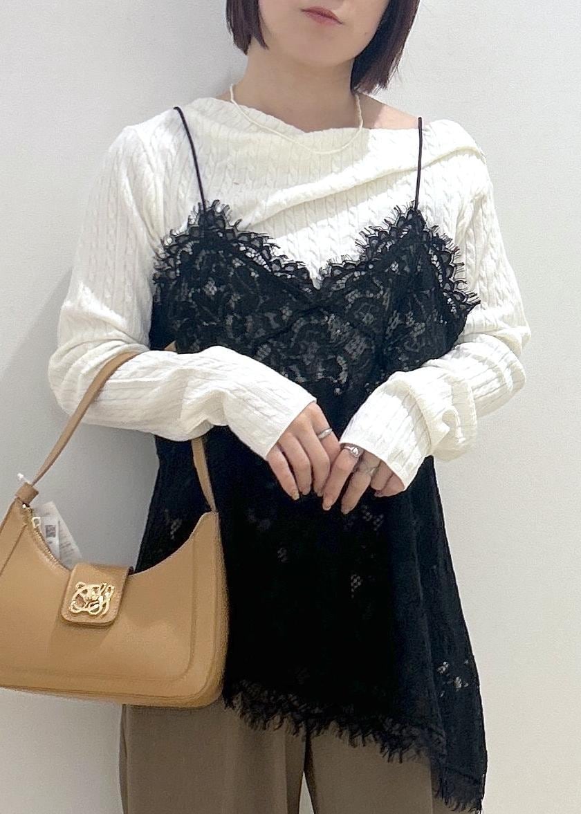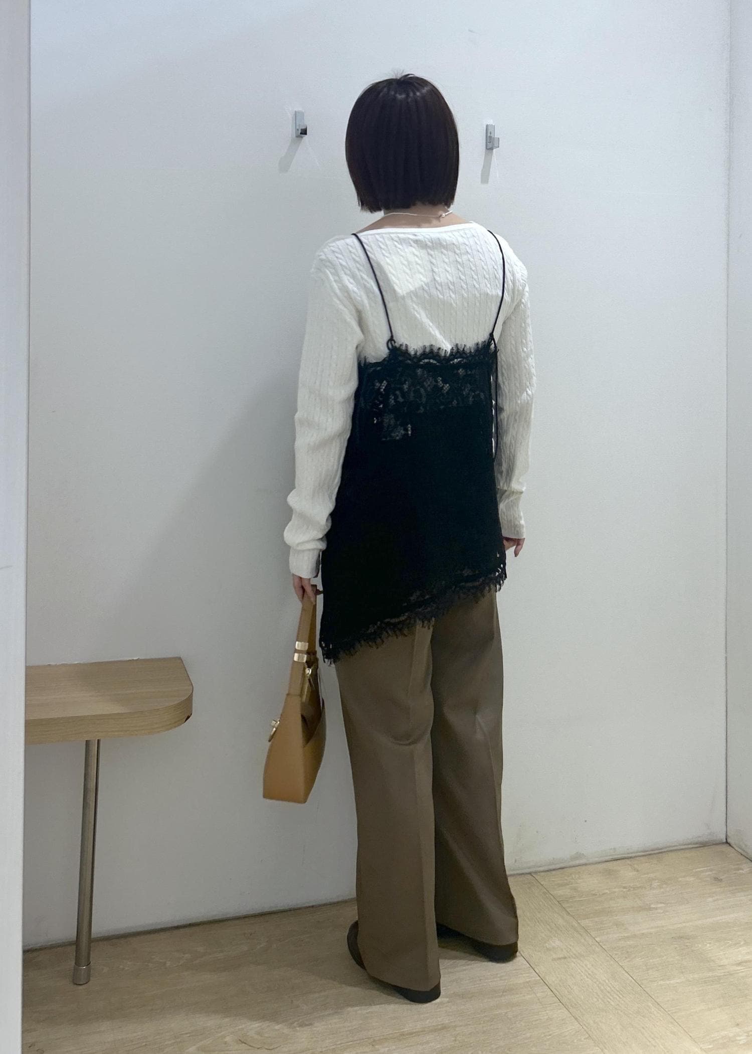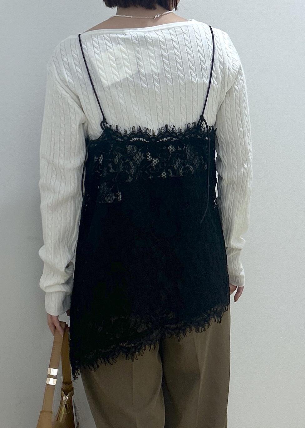 VISレースアシンメトリーキャミソールブラック / F¥6,589レビュートレンドのレースキャミです。裾がアシンメトリーになっているので、トップスの裾から見せたりしてもかわいいデザインです。
