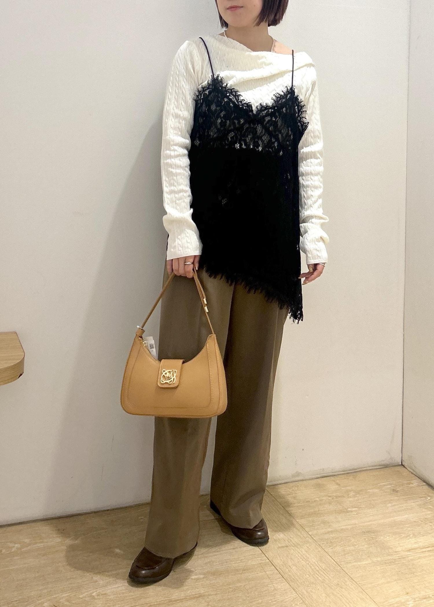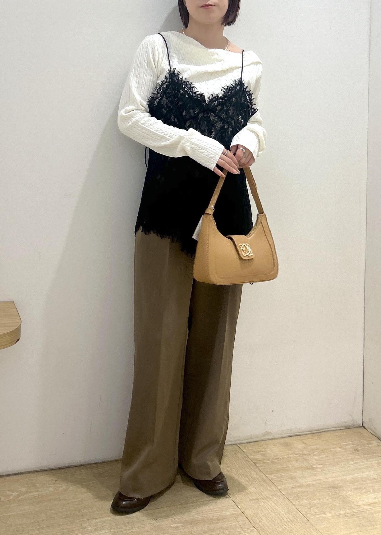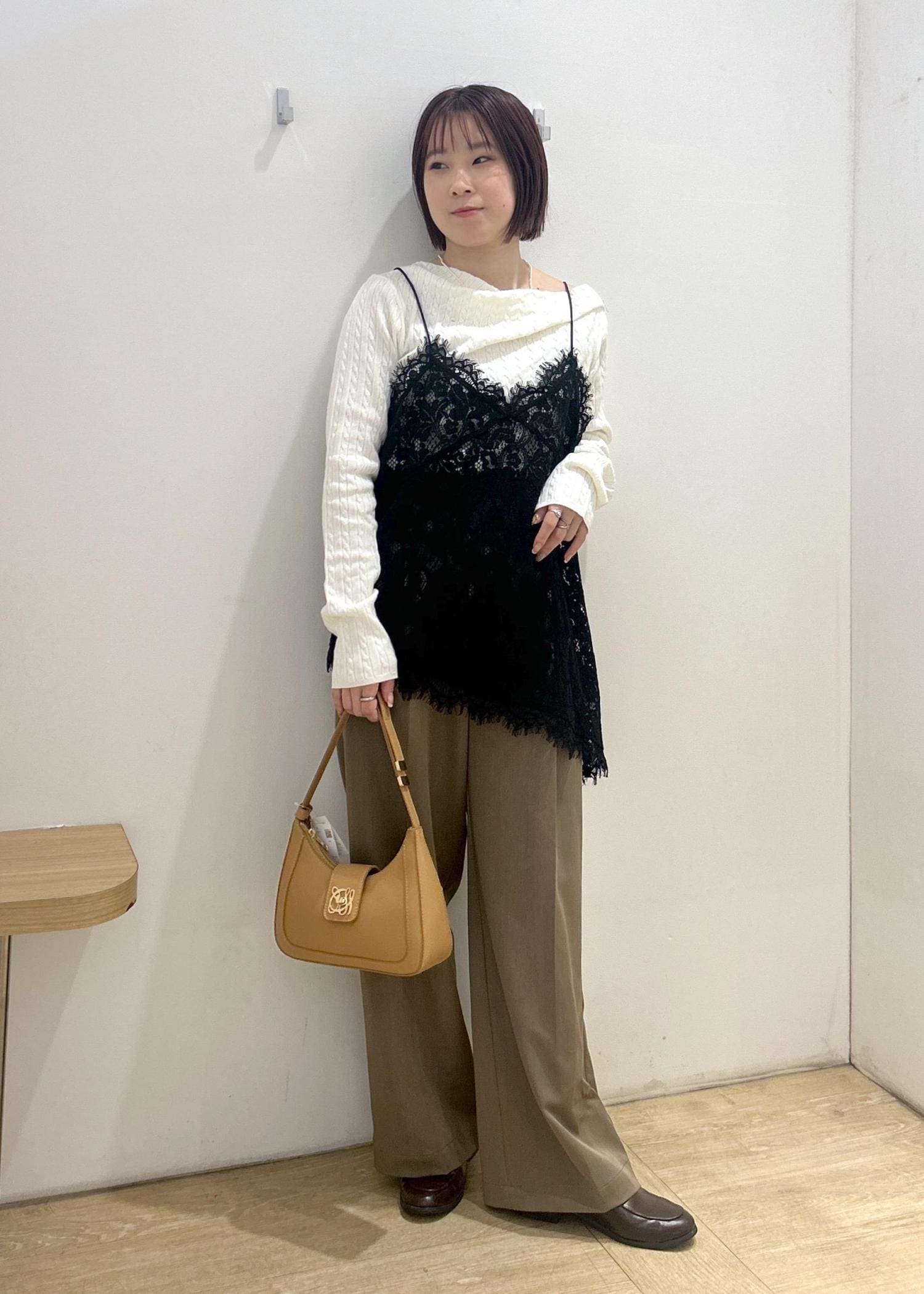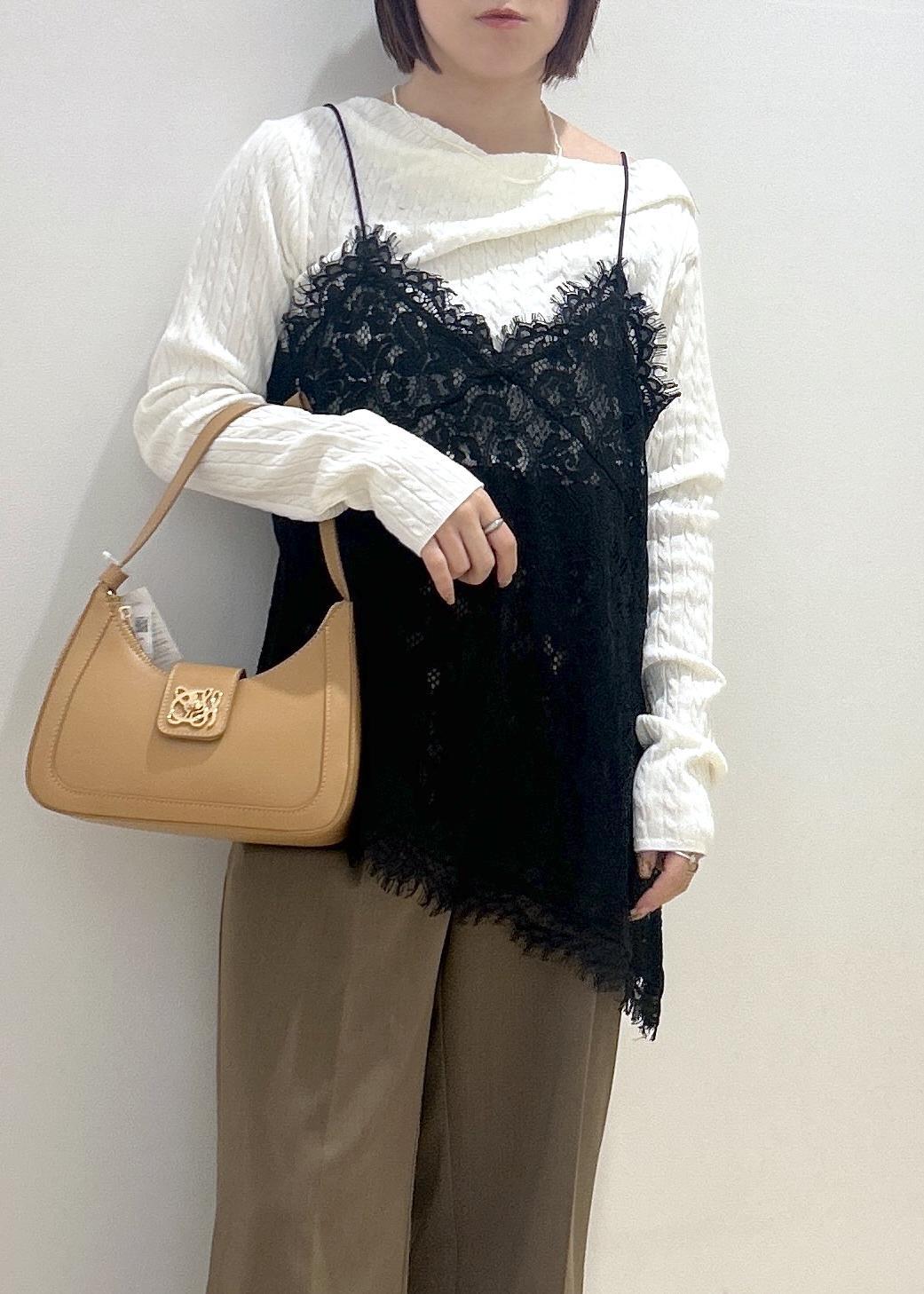 VISレースアシンメトリーキャミソールブラック / F¥6,589レビュートレンドのレースキャミです。裾がアシンメトリーになっているので、トップスの裾から見せたりしてもかわいいデザインです。