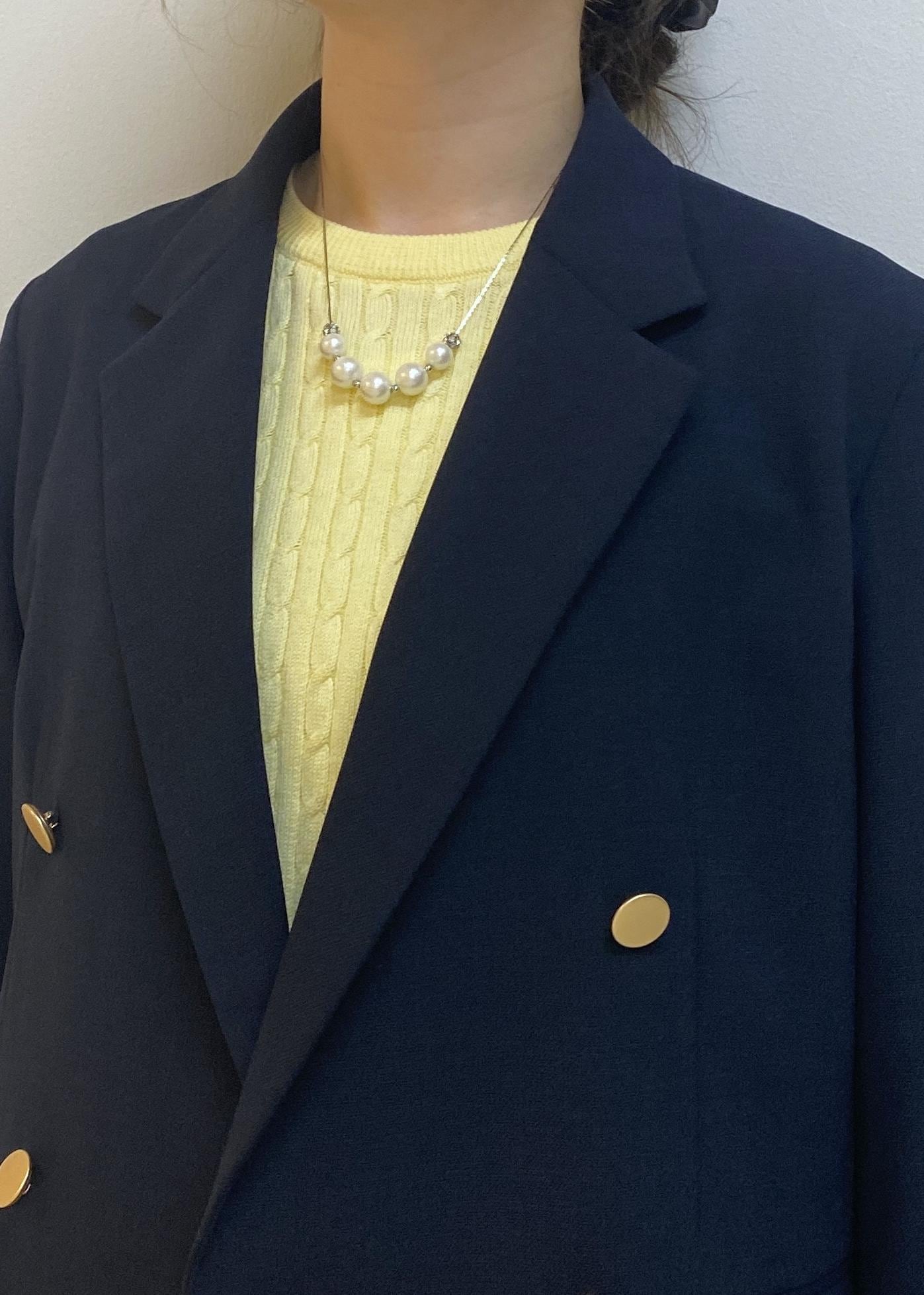 ゴールドのボタンは程よい艶感が上品な印象に。