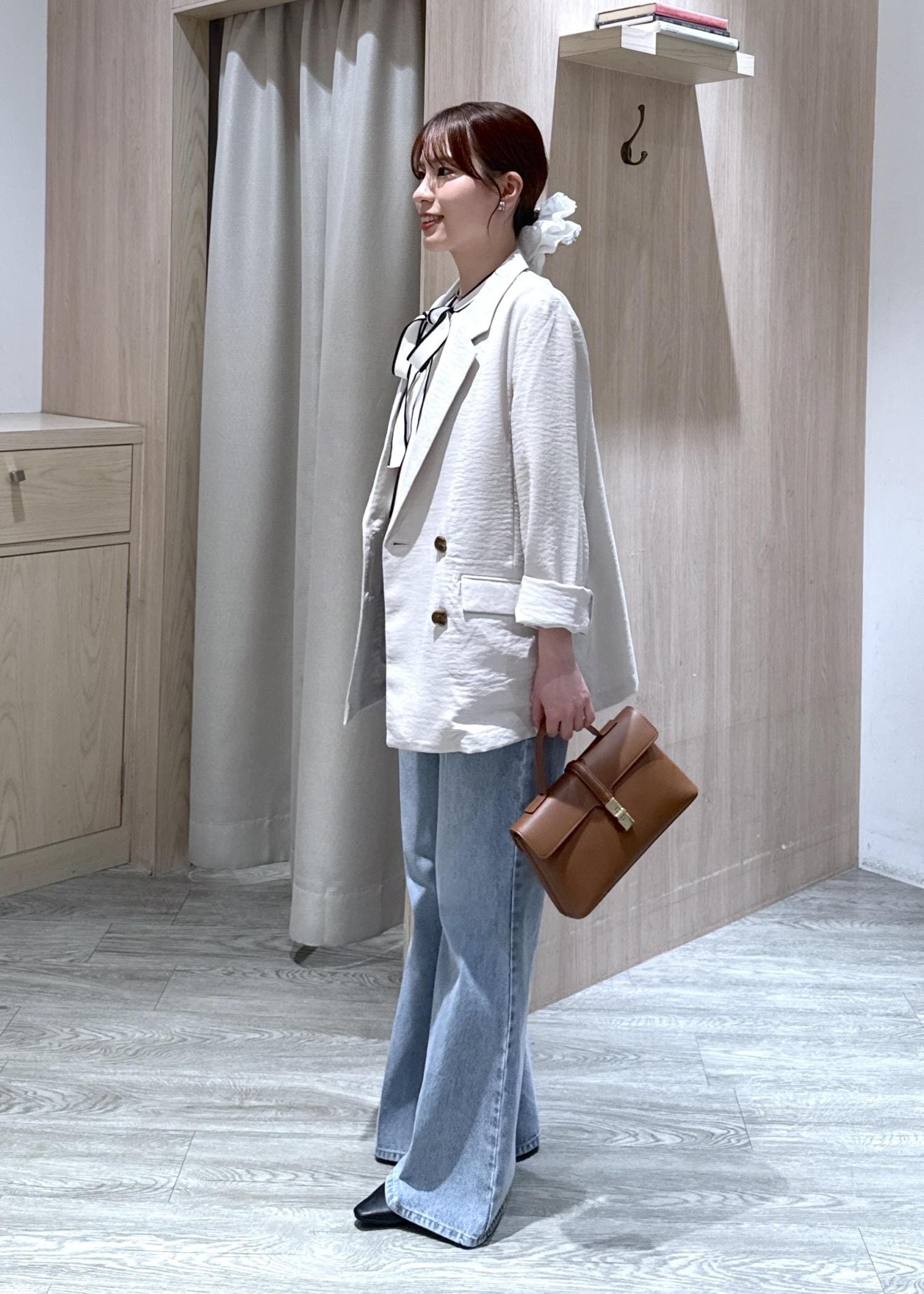 コンパクトなサイズ感ですが、袖は二の腕をしっかり隠してくれる長さなので、細見えが叶う一枚です!