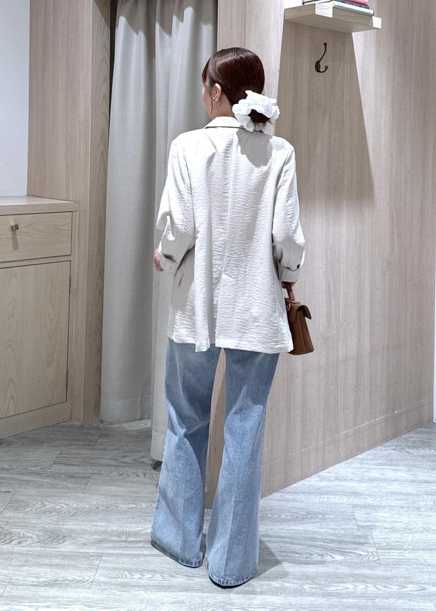Sサイズでヒップがしっかり隠れる丈感で、生地も薄めなため、ひとつ前のコンフォートジャケットよりも少しゆったり着用できました!
