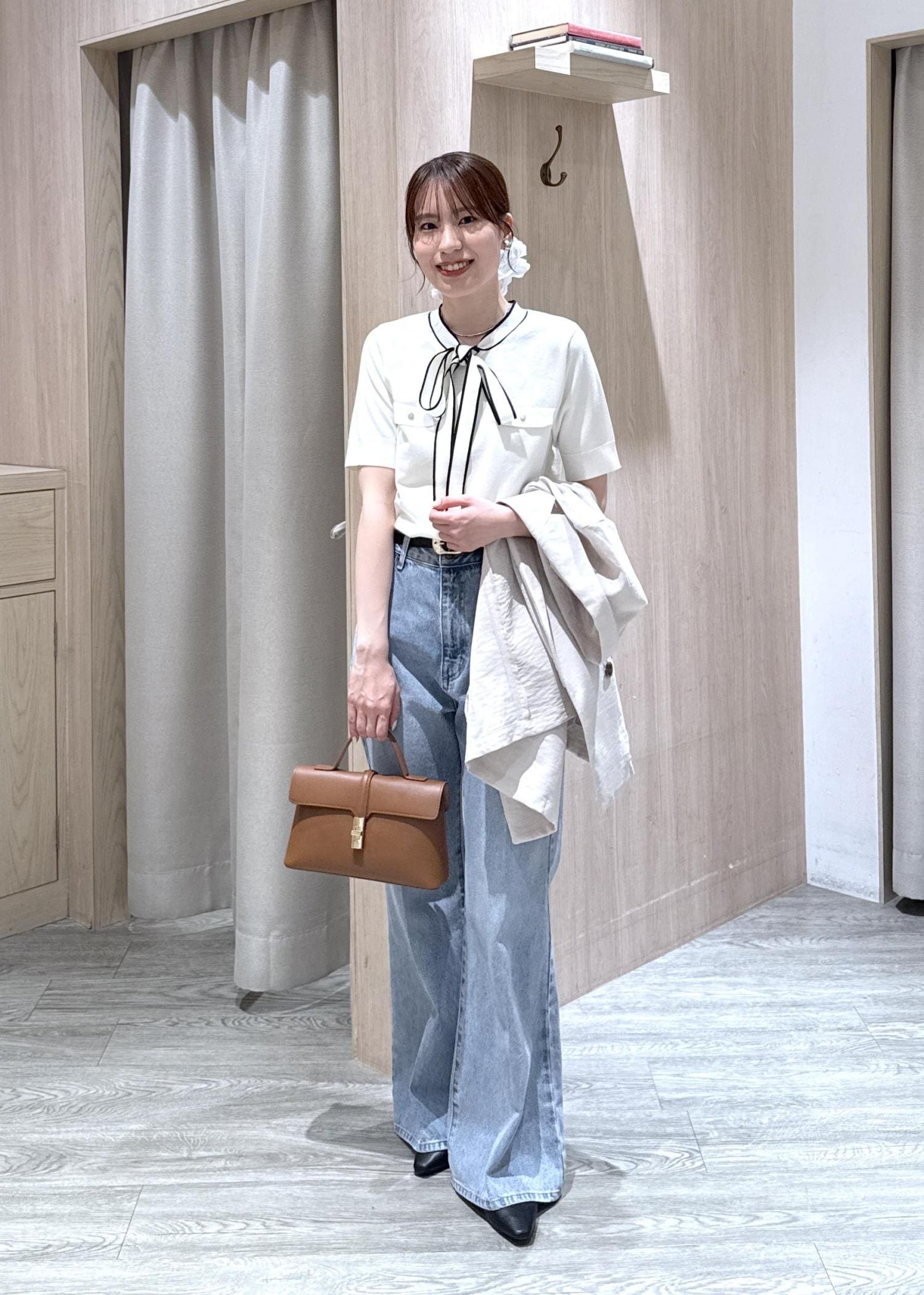 リボンにフェイクポケットも付いており、一枚で主役級のトップス♡主張も激しすぎないので、オフィスでも着用いただけます!