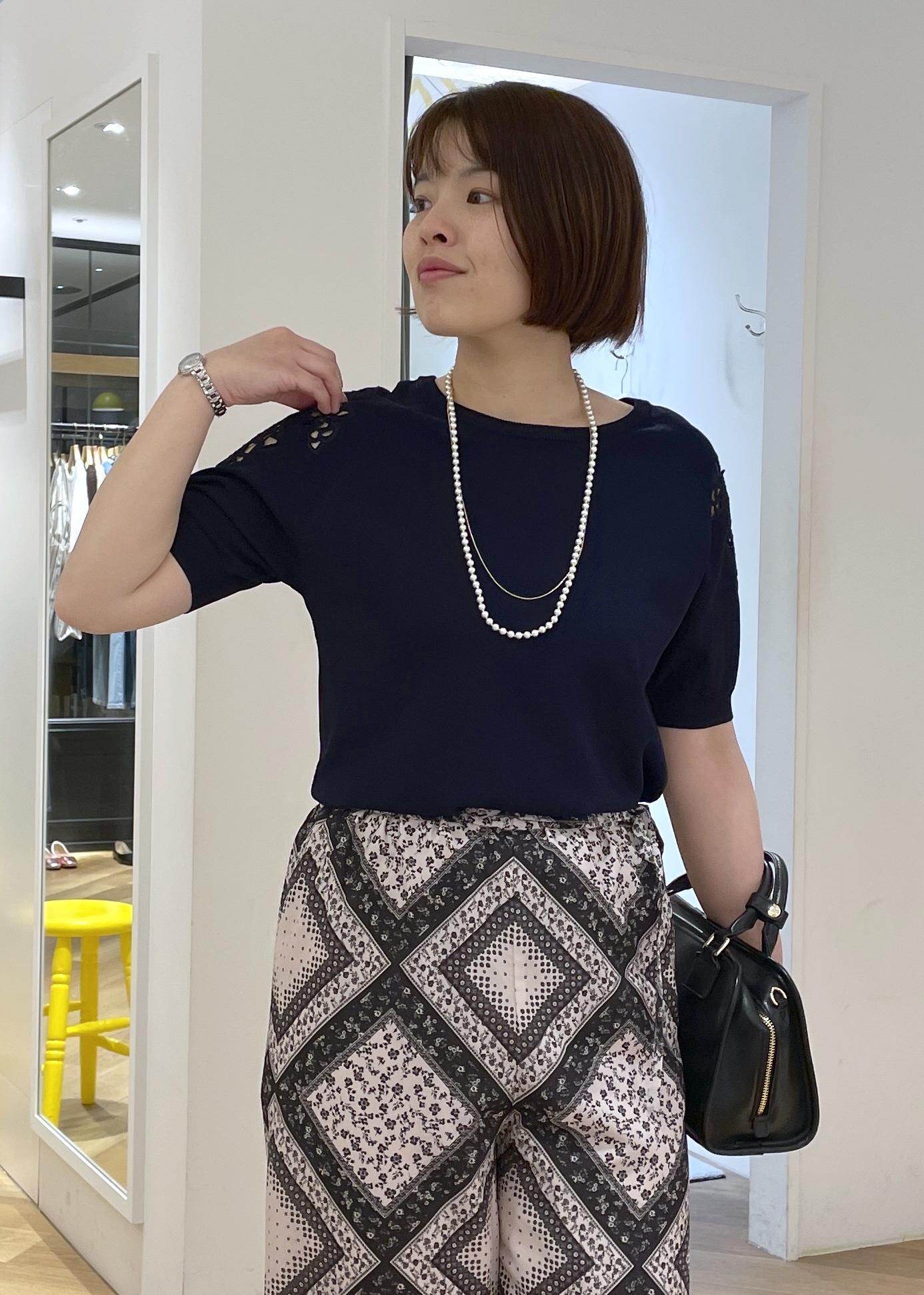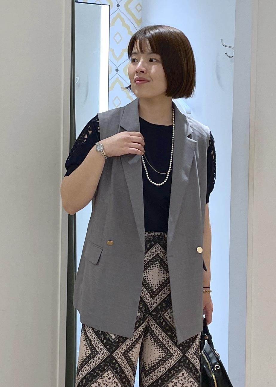 ニットは袖レースデザインなので、ジレとの相性もバッチリです!