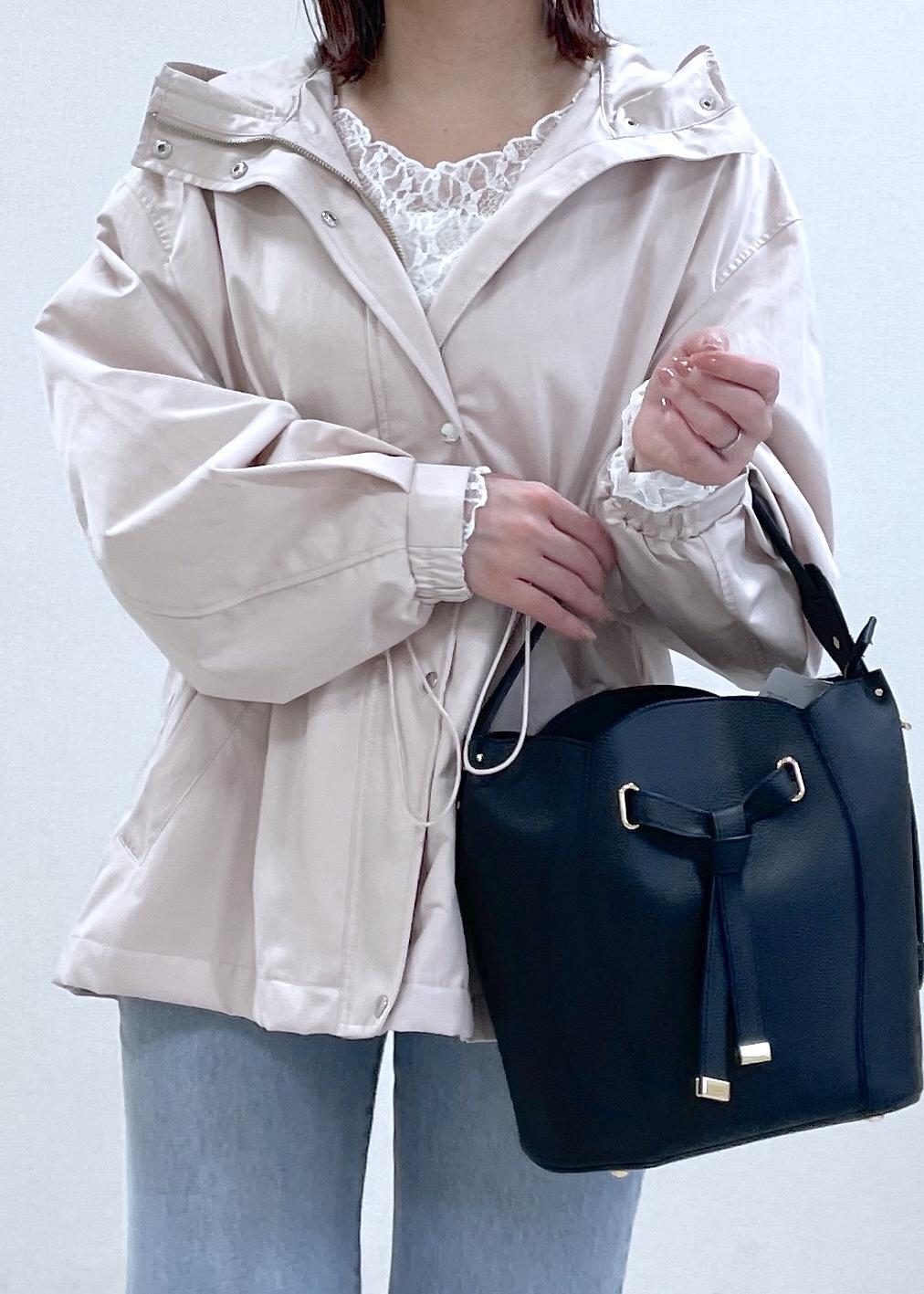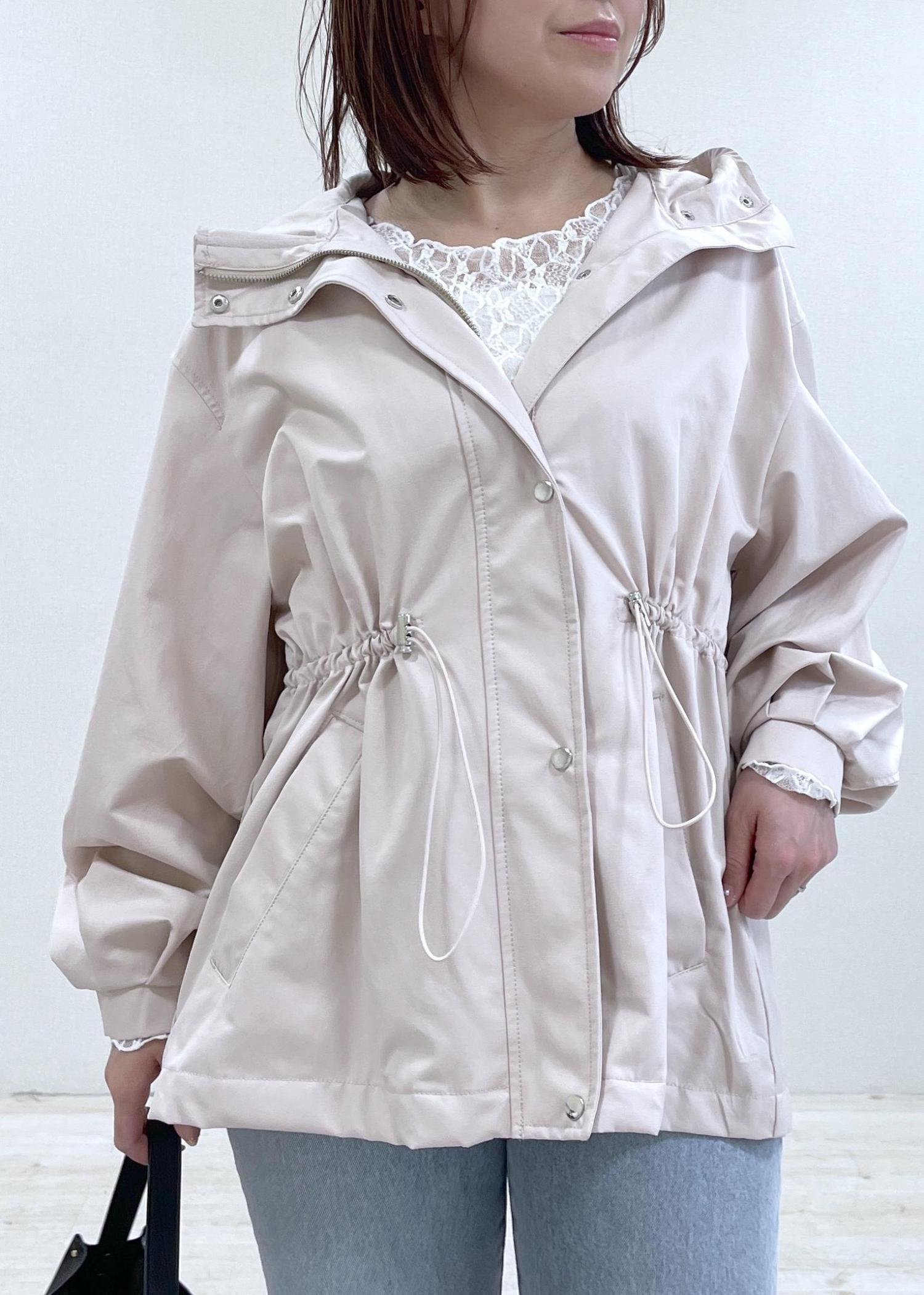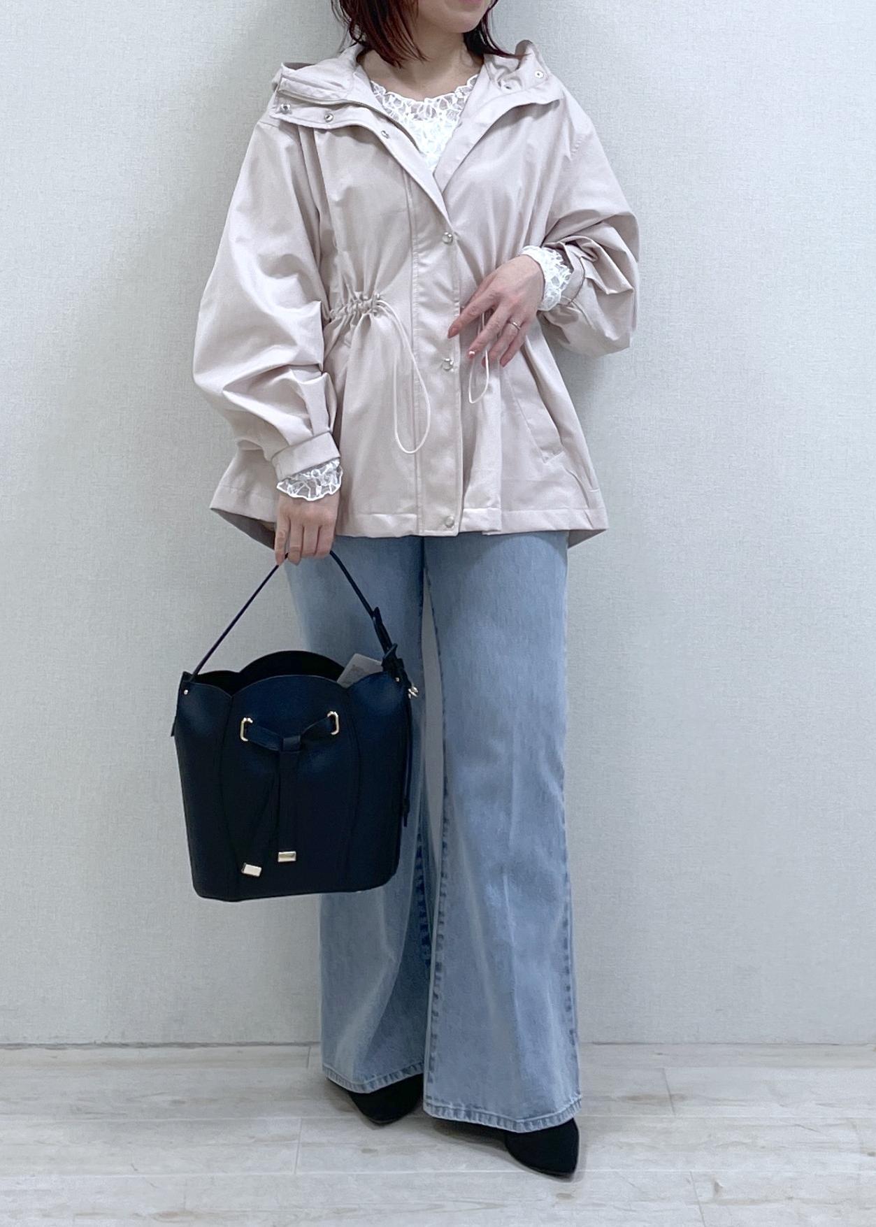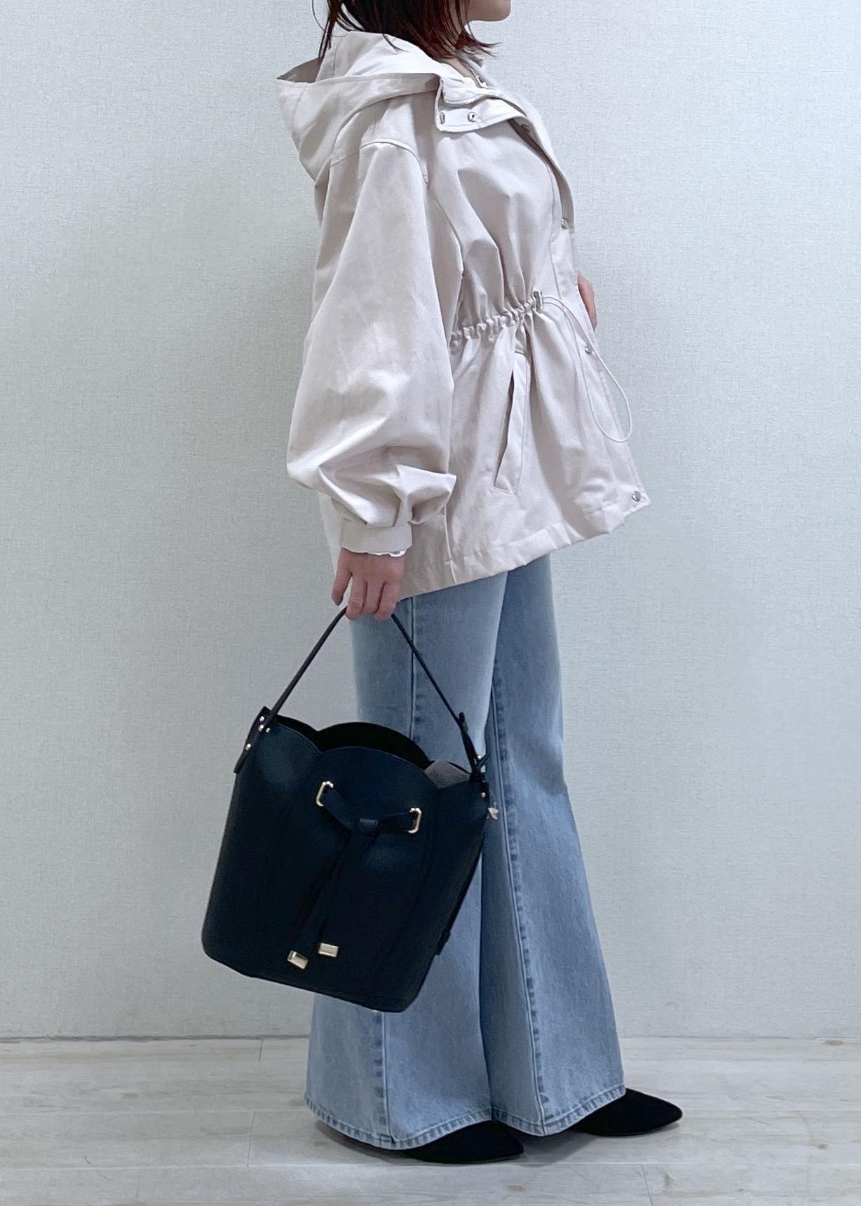 ウエストに絞りがついている形の綺麗なマウンテンパーカーにデニムを合わせて綺麗めカジュアルコーデにしました!