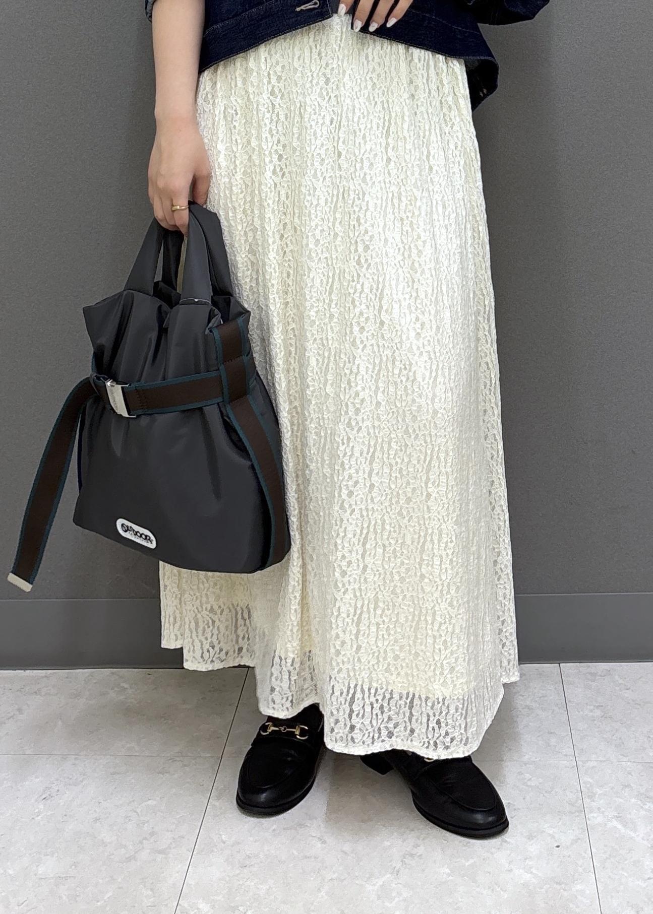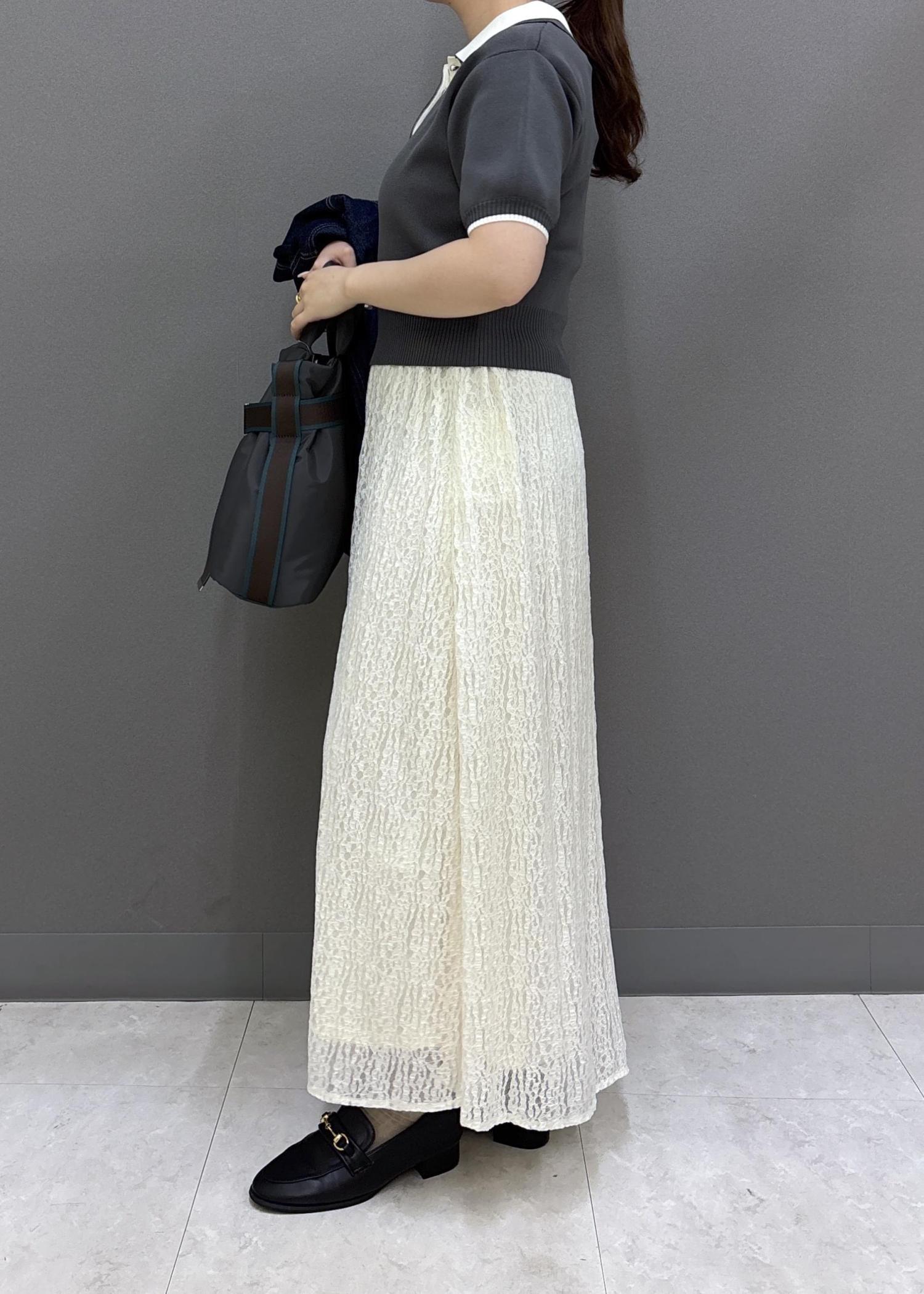 ウエストまわりはゴム仕様なので締めつけなく、着用できます。裏地付きですがキナリ(16)はやや透け感があったので、ペチコートを履くか、パンツをレイヤードするのもおすすめ! -