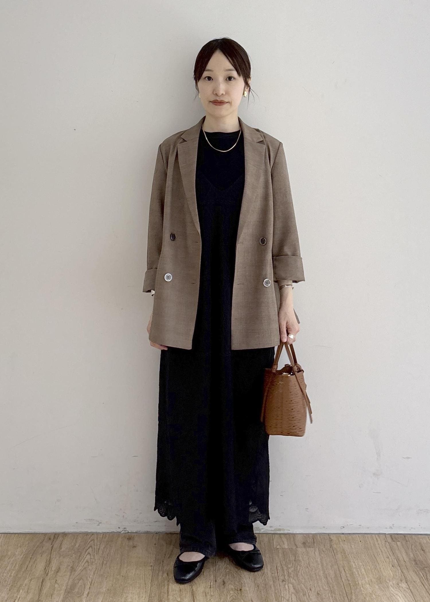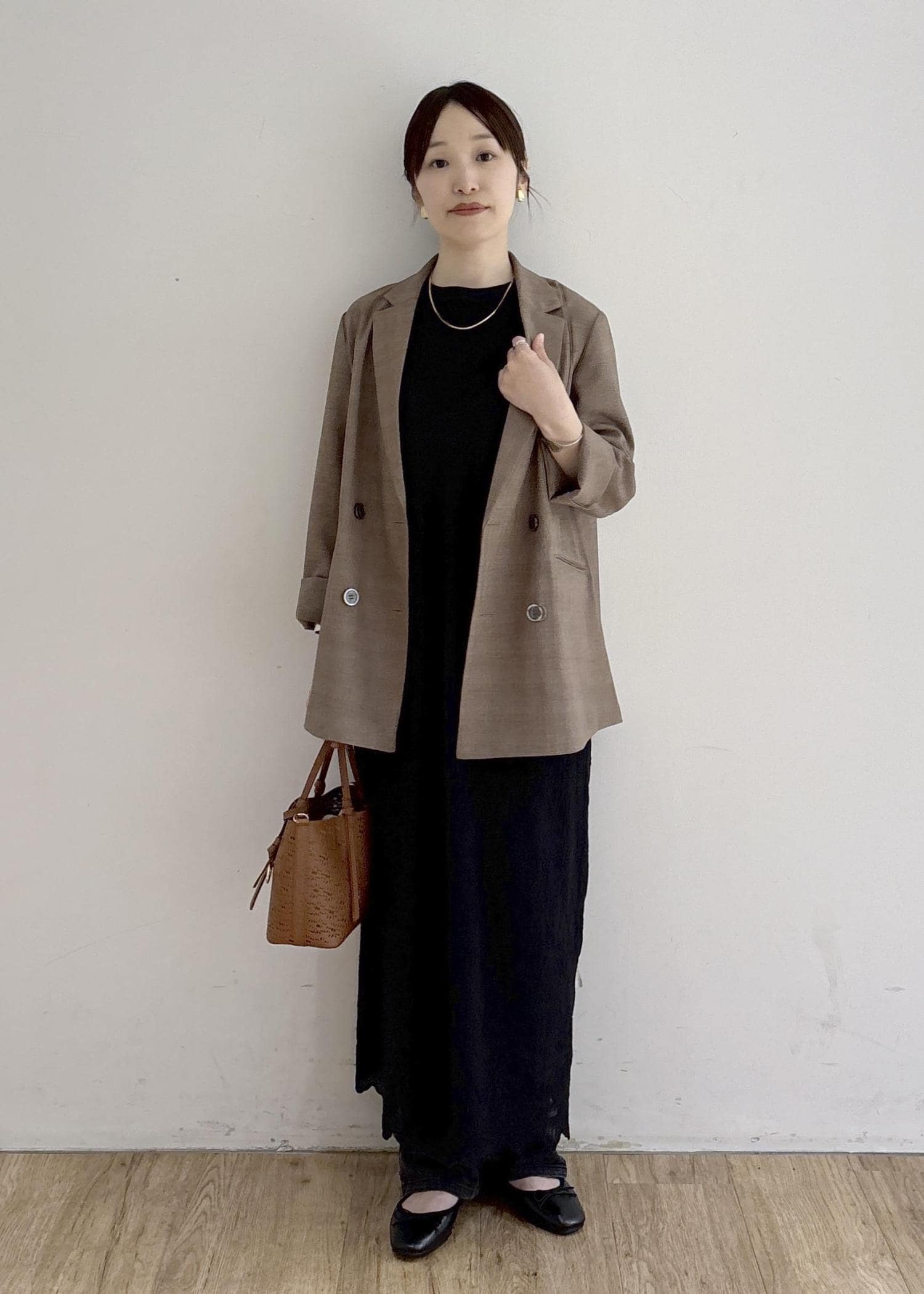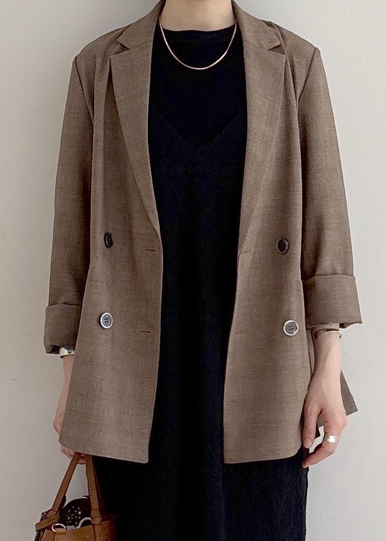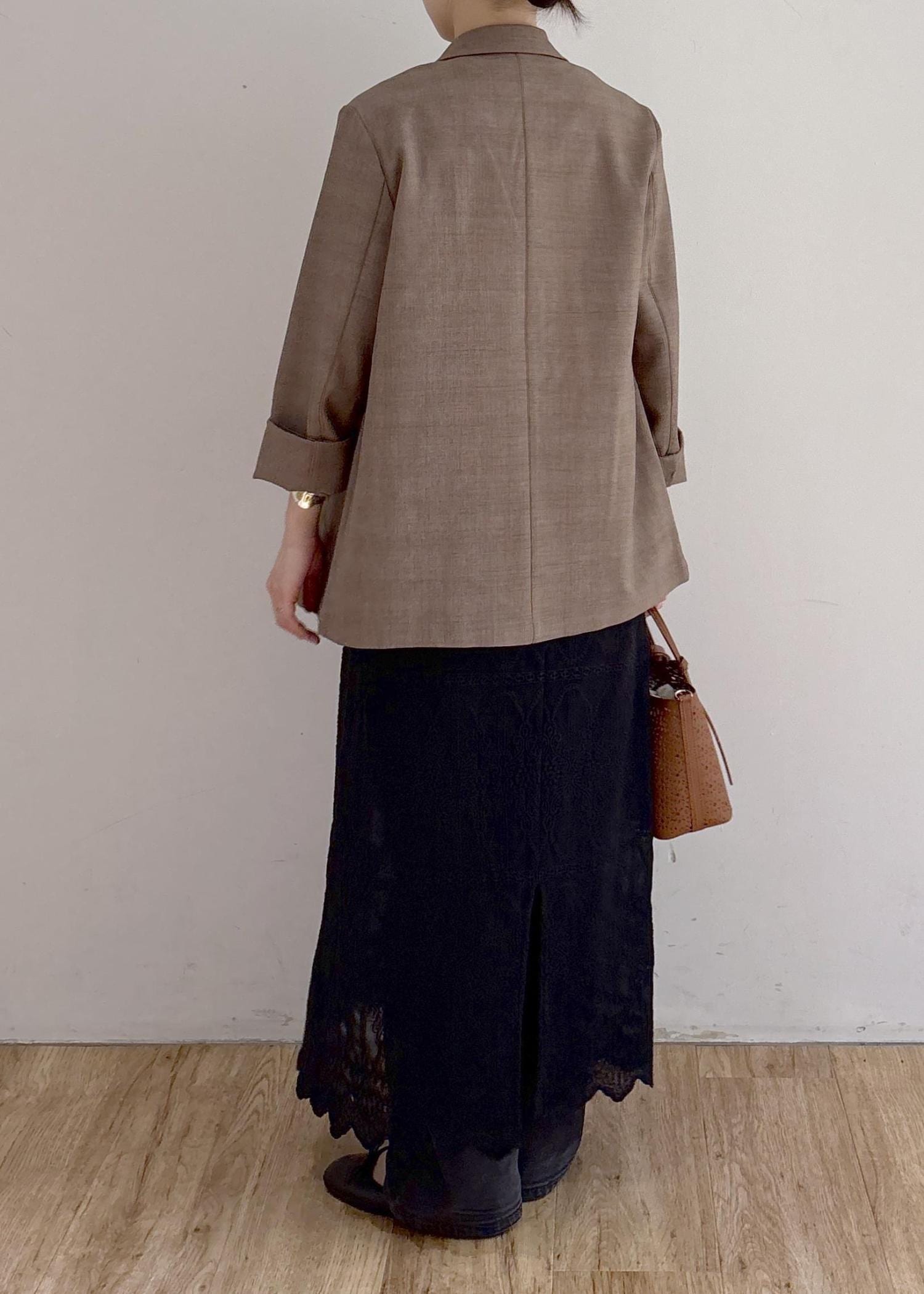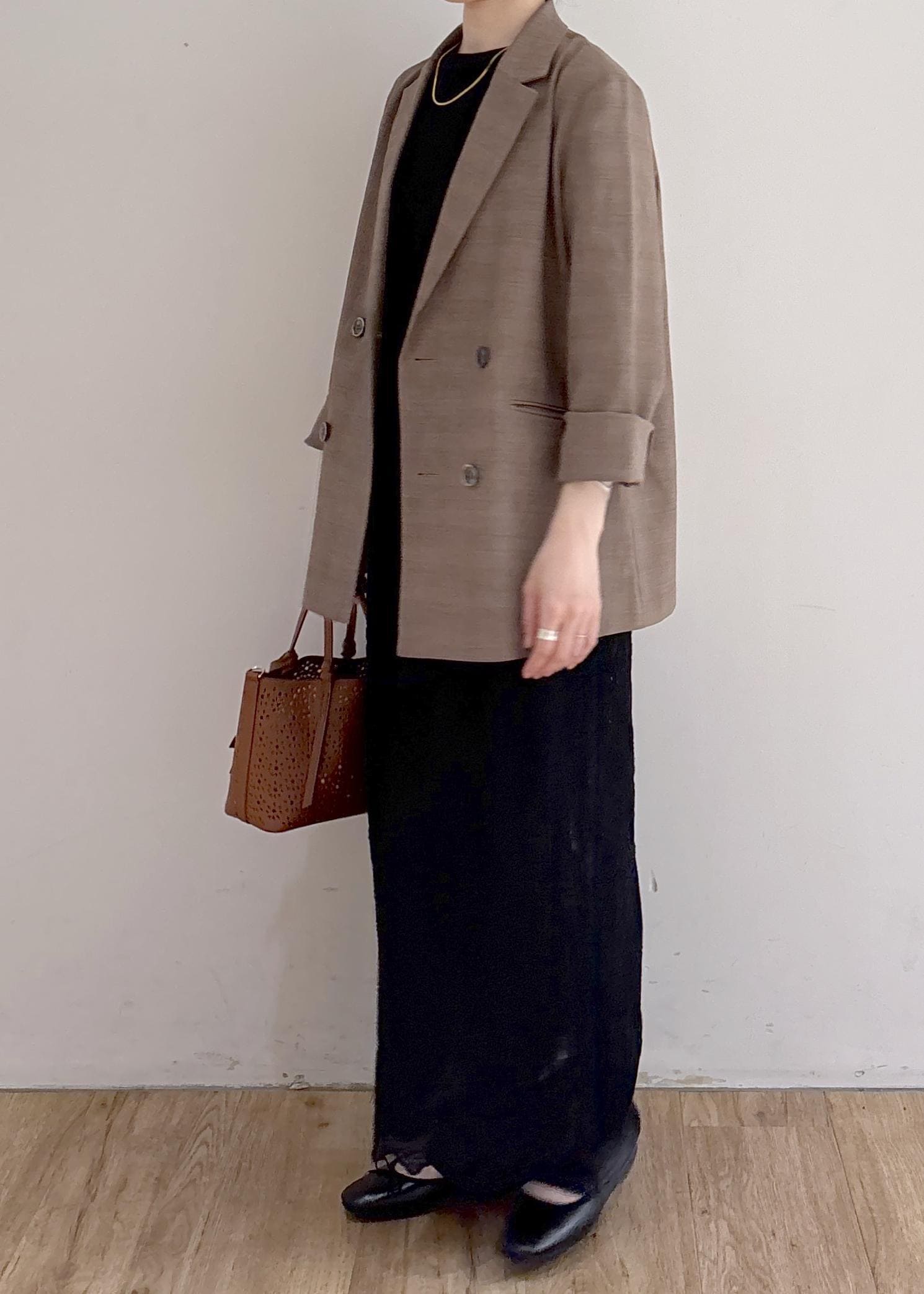 大人カジュアルを意識した、ジャケットスタイルです。ブラウンとブラックでまとめてシックにまとめました。