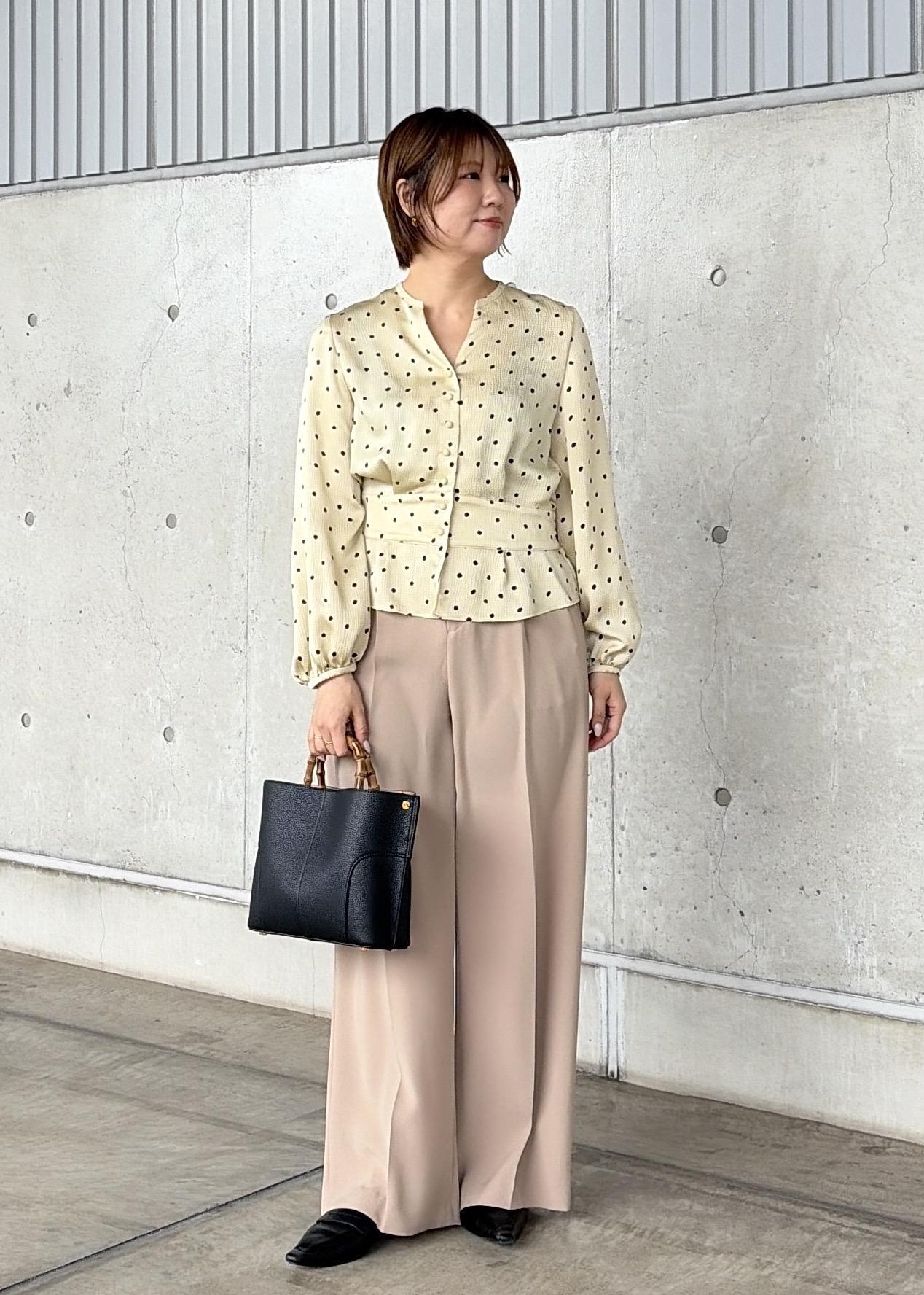 ROPÉドットプリントペプラムブラウス/イージーケアベージュ / 38¥26,400レビュー162センチ 普段トップス38サイズ