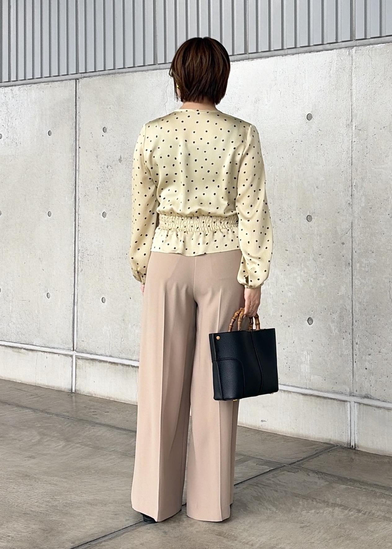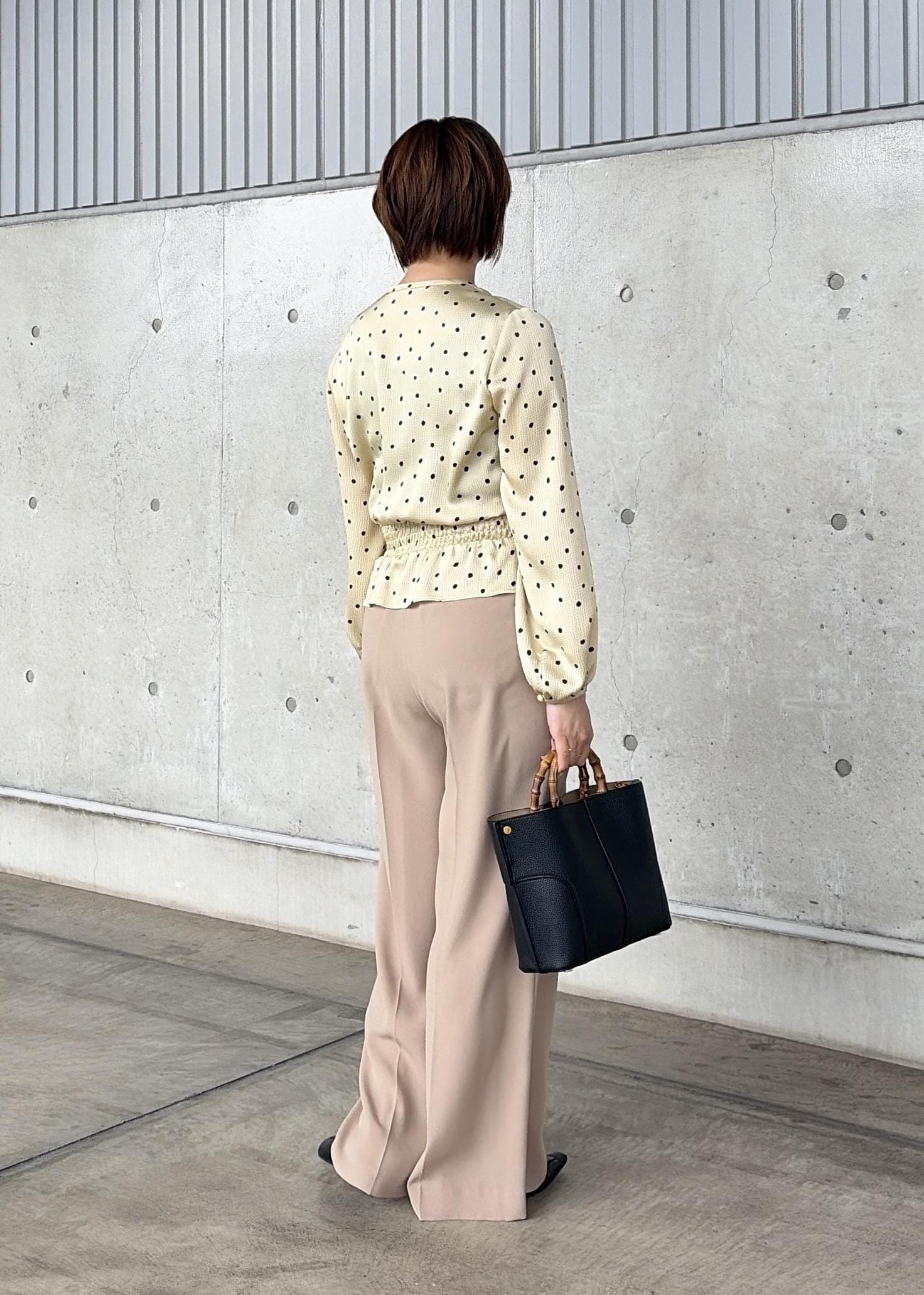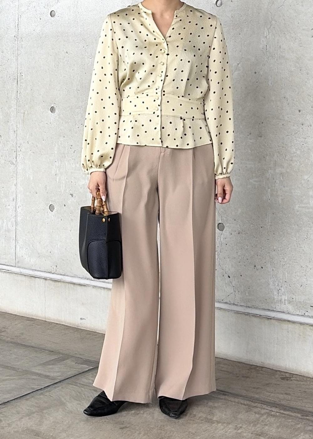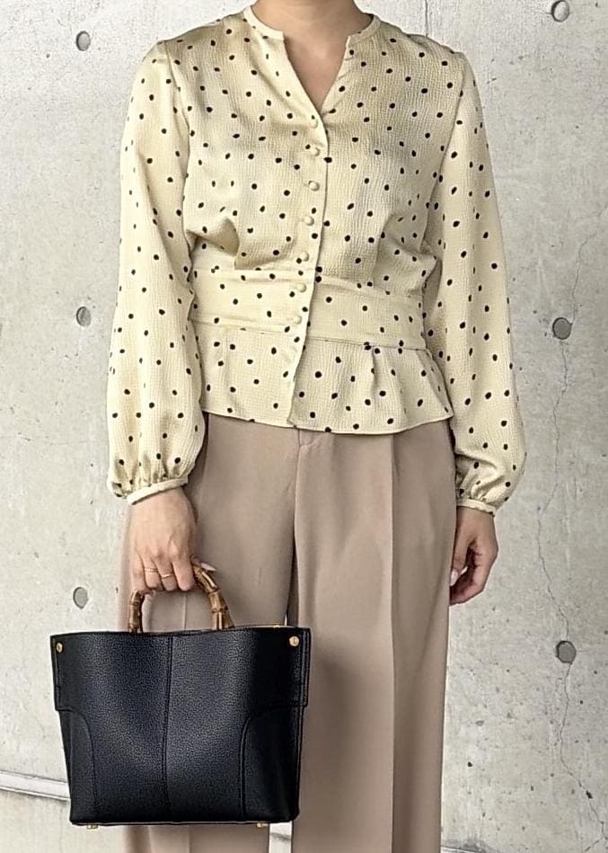 大人のドット柄で普段使いしやすいペプラムブラウスです。