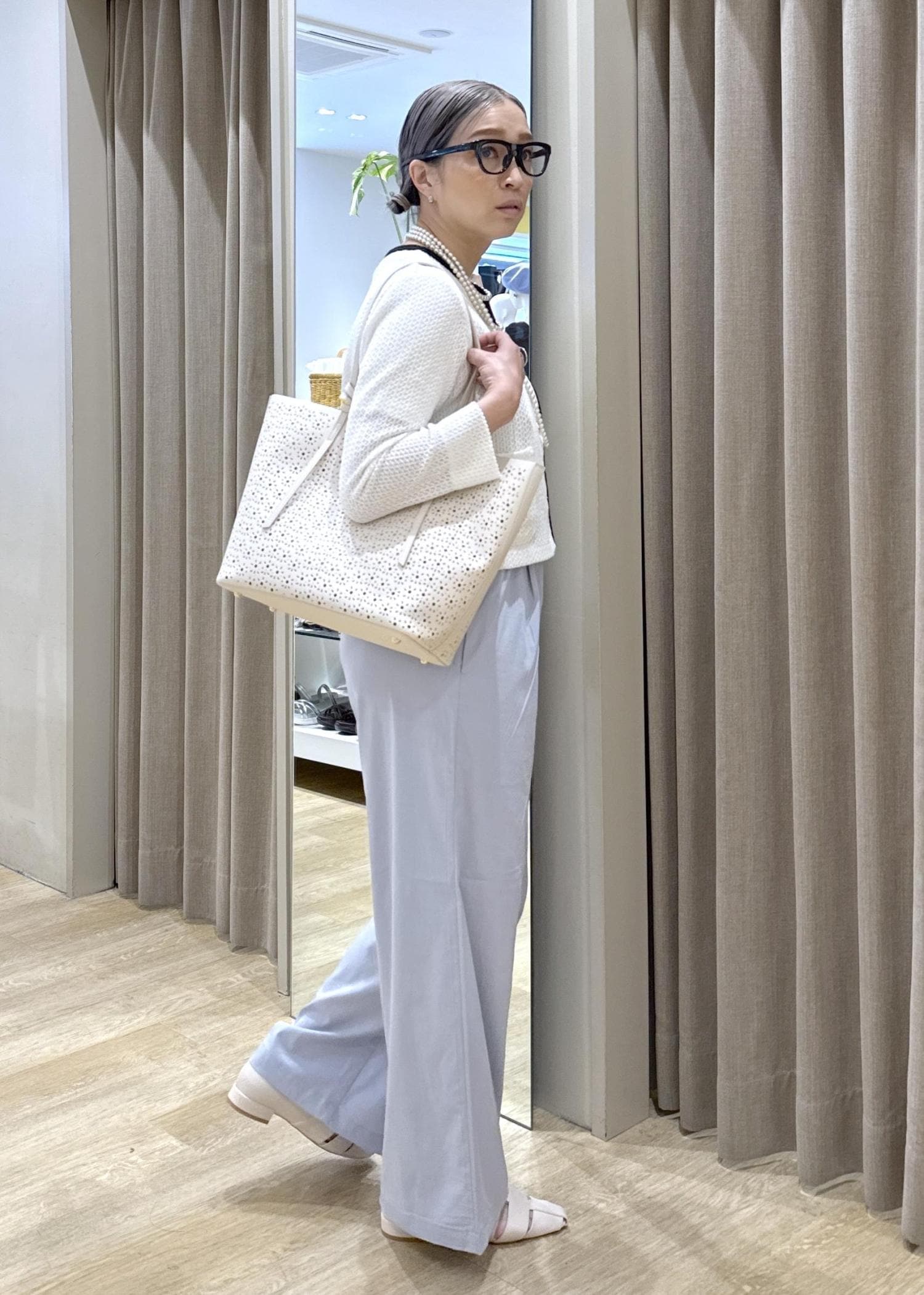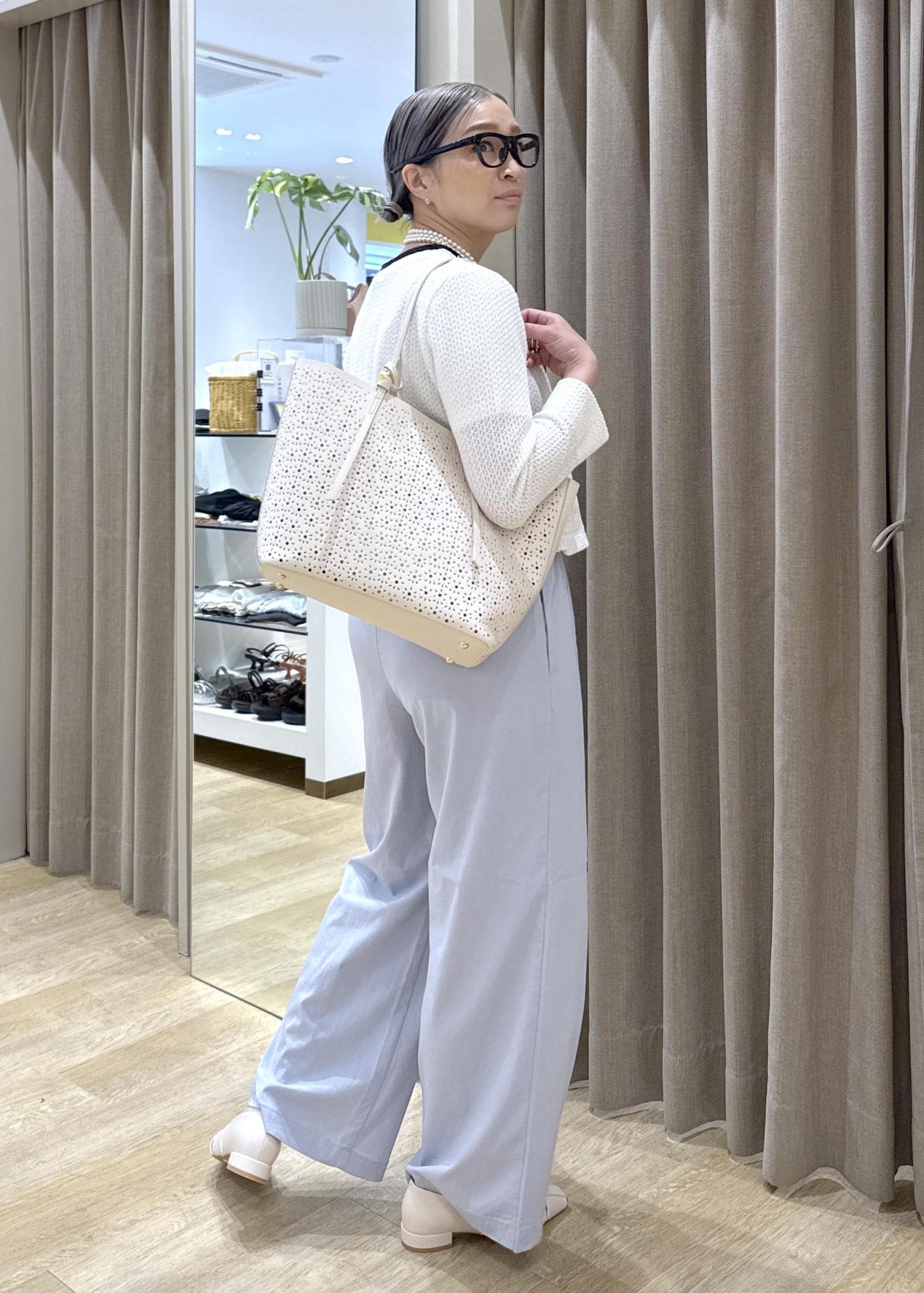 ROPÉ PICNIC PASSAGEフルーレットパンチングレーストートバッグ/A4対応オフホワイト / F¥7,491レビュー花模様のようなくり抜きがとてもかわいい