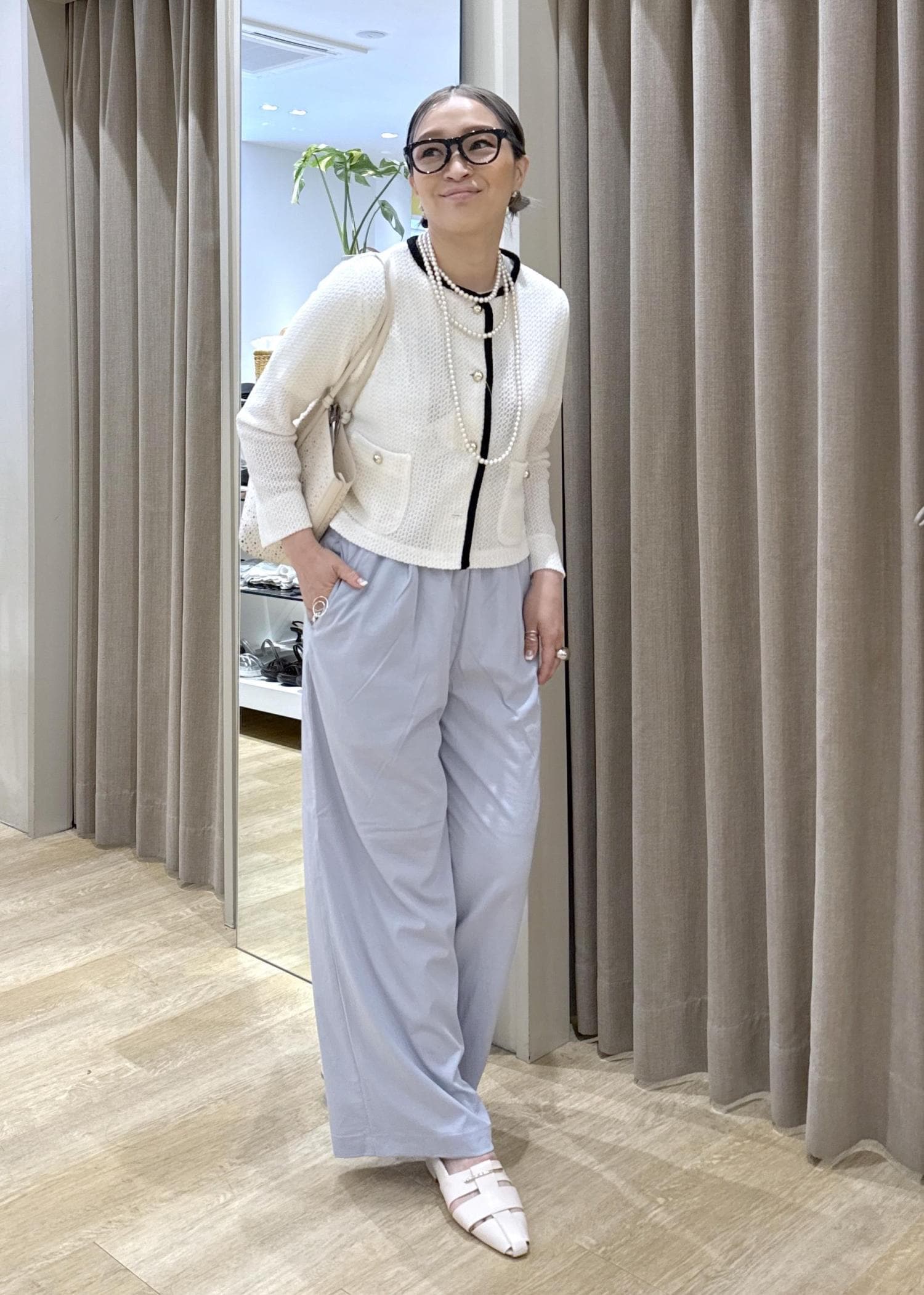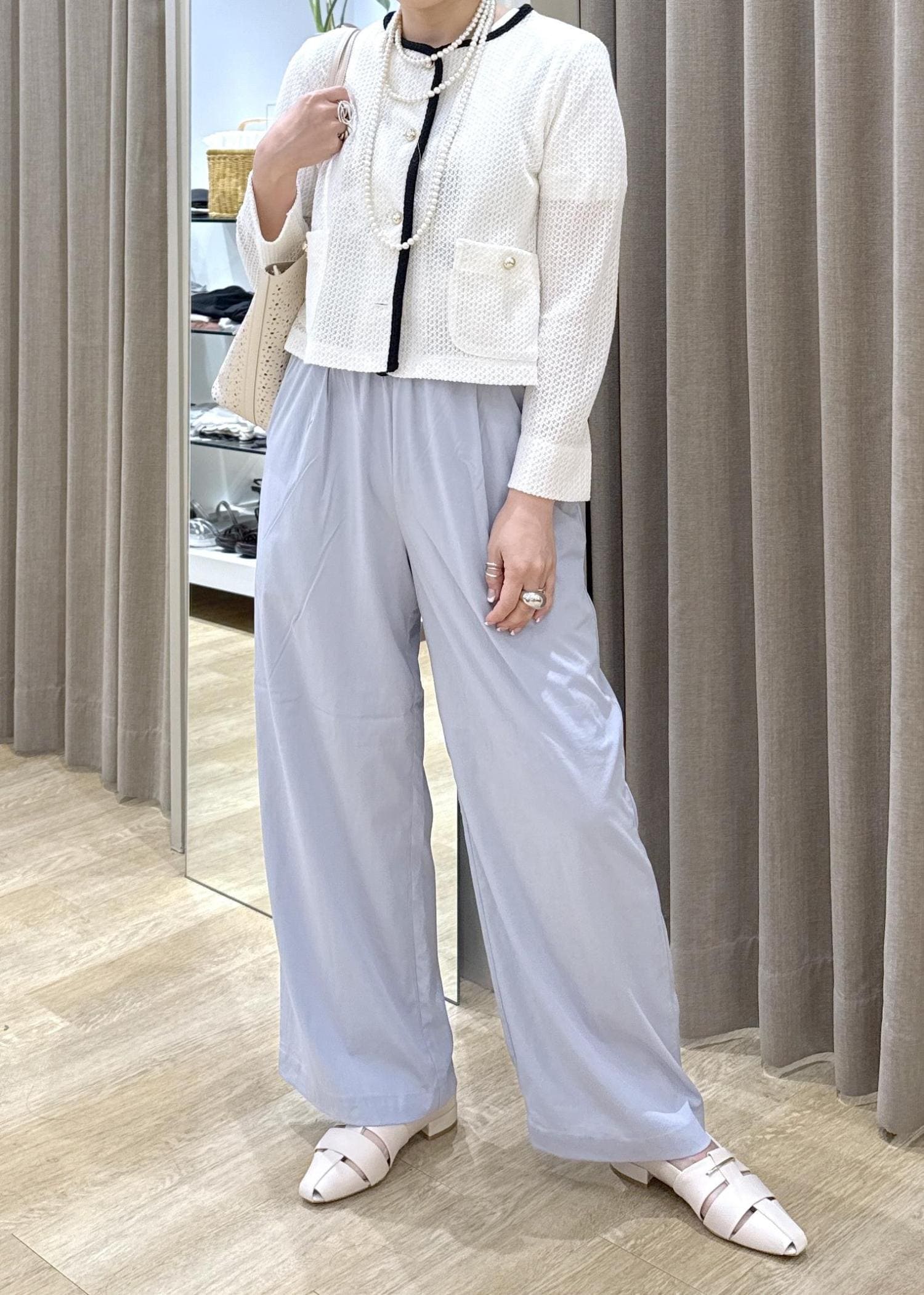 サイズは若干緩めで伸縮性もあり、リネンのようなドライ感のある素材も特徴です! -
