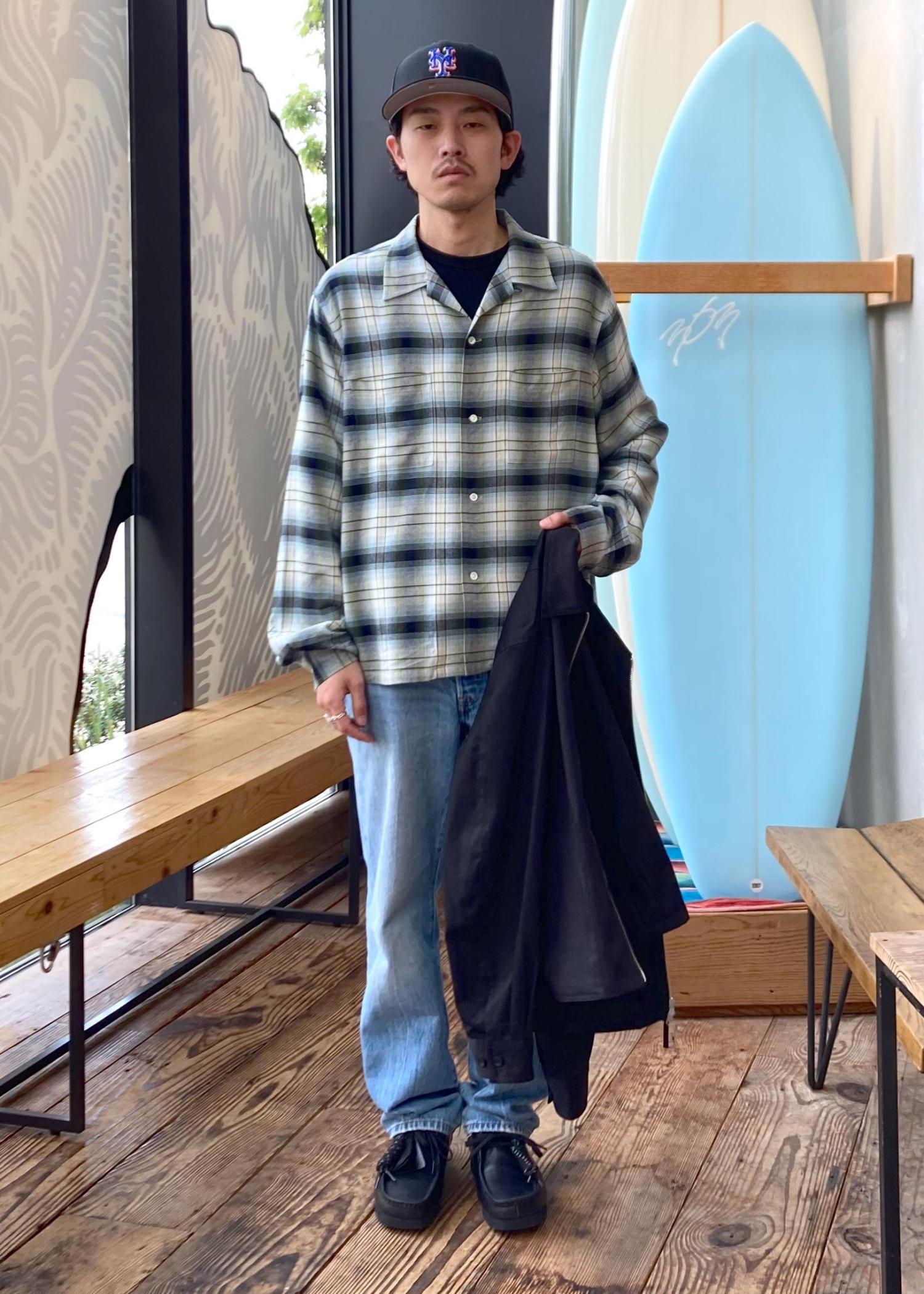 Harrison Zip Blousonをベースにインナーはオープンカラーのチェックシャツをin。