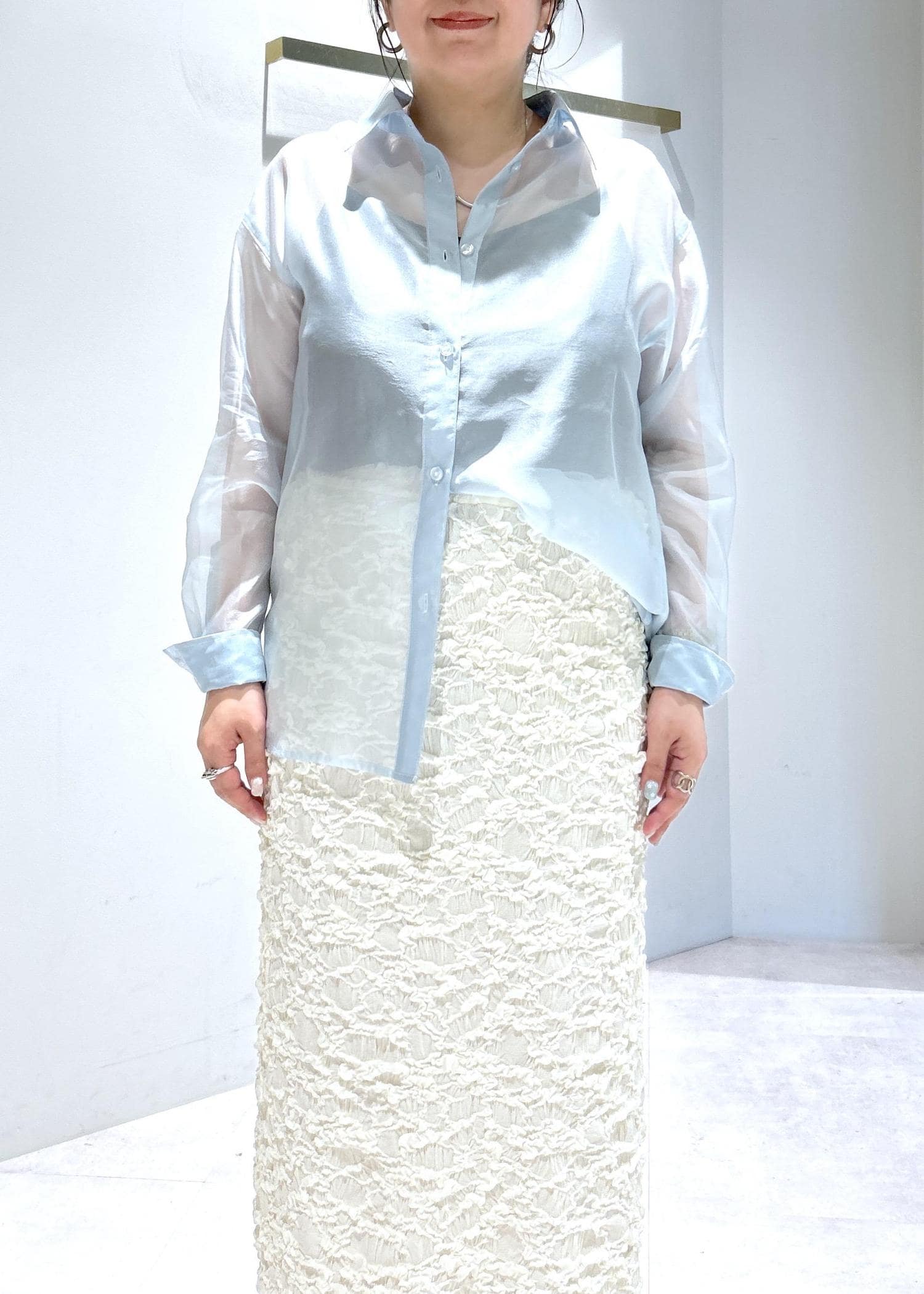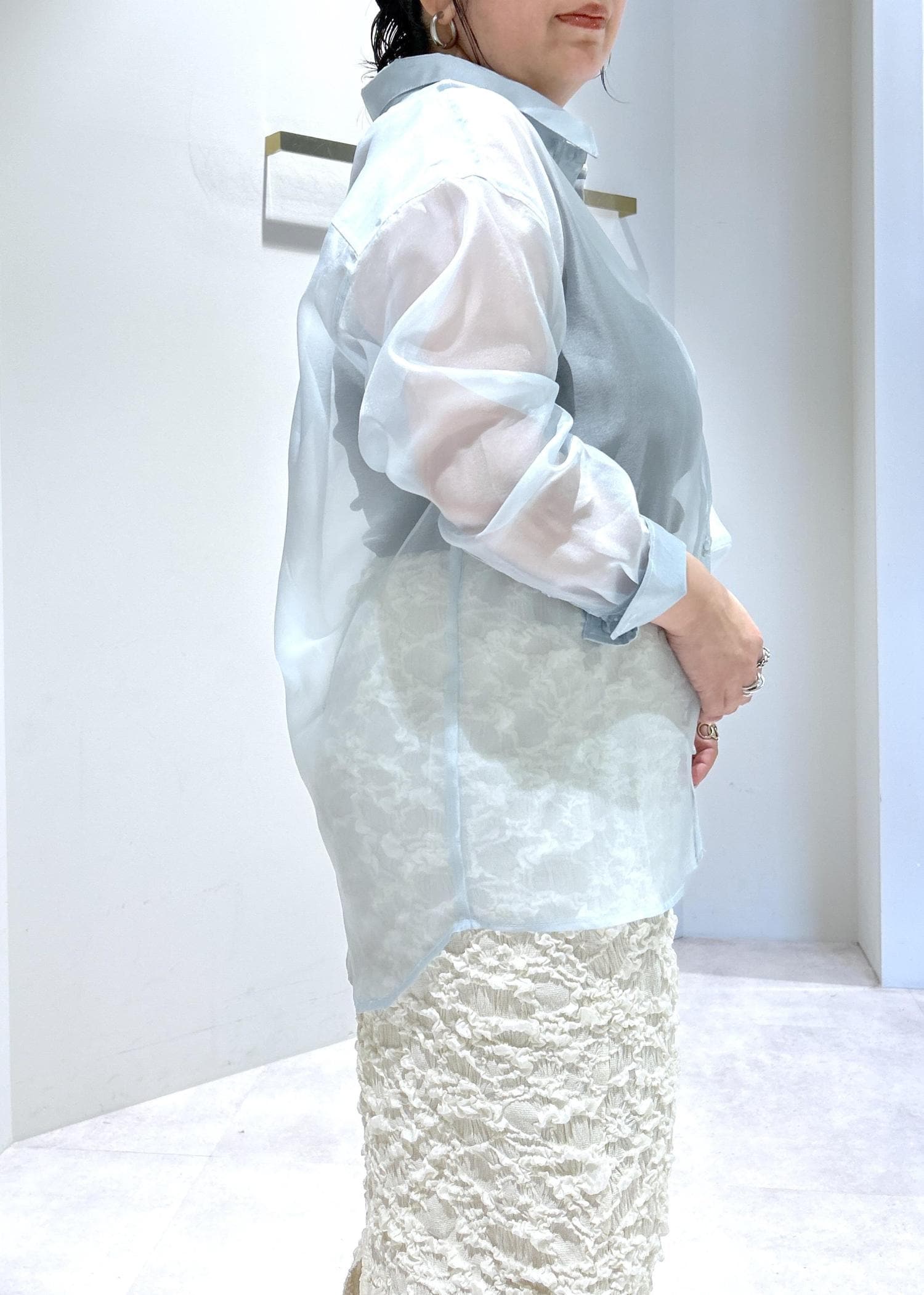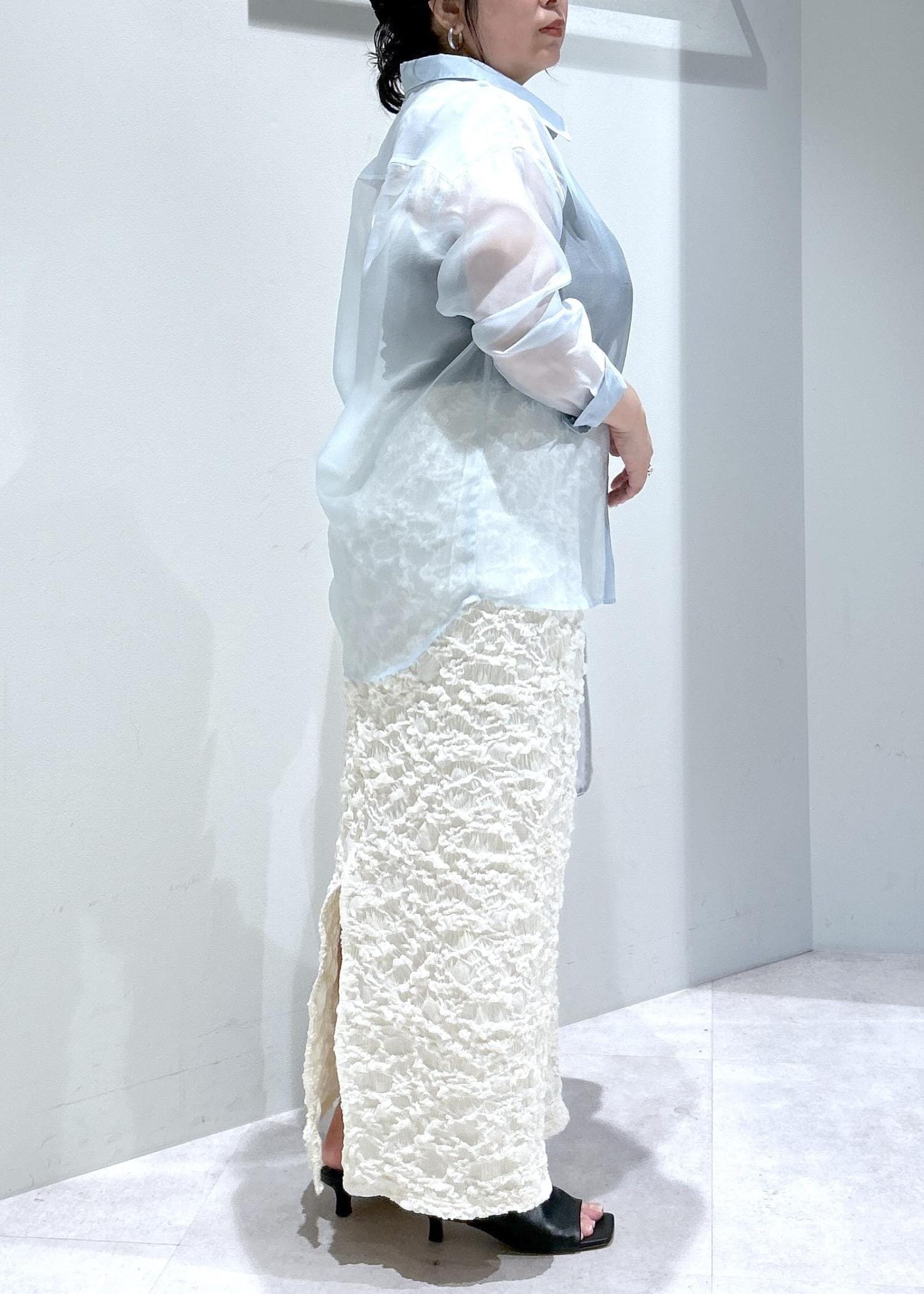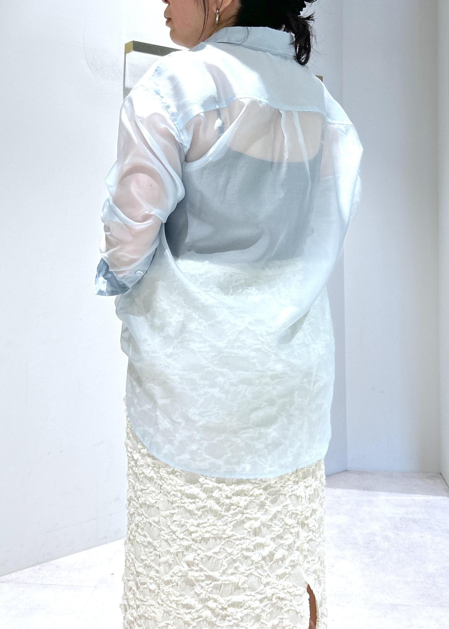 LE CERCLE par ropé襟付きシアーシャツサックス / F¥7,590レビュー透け感があり春から夏まで着れる万能シャツ◎