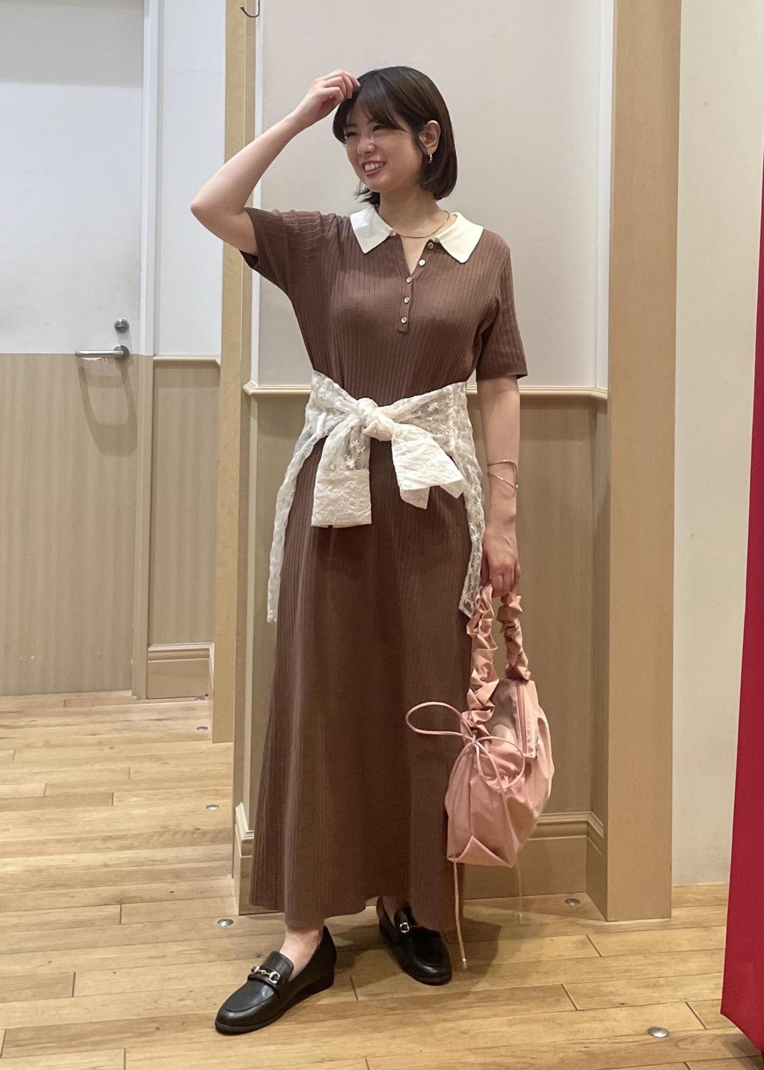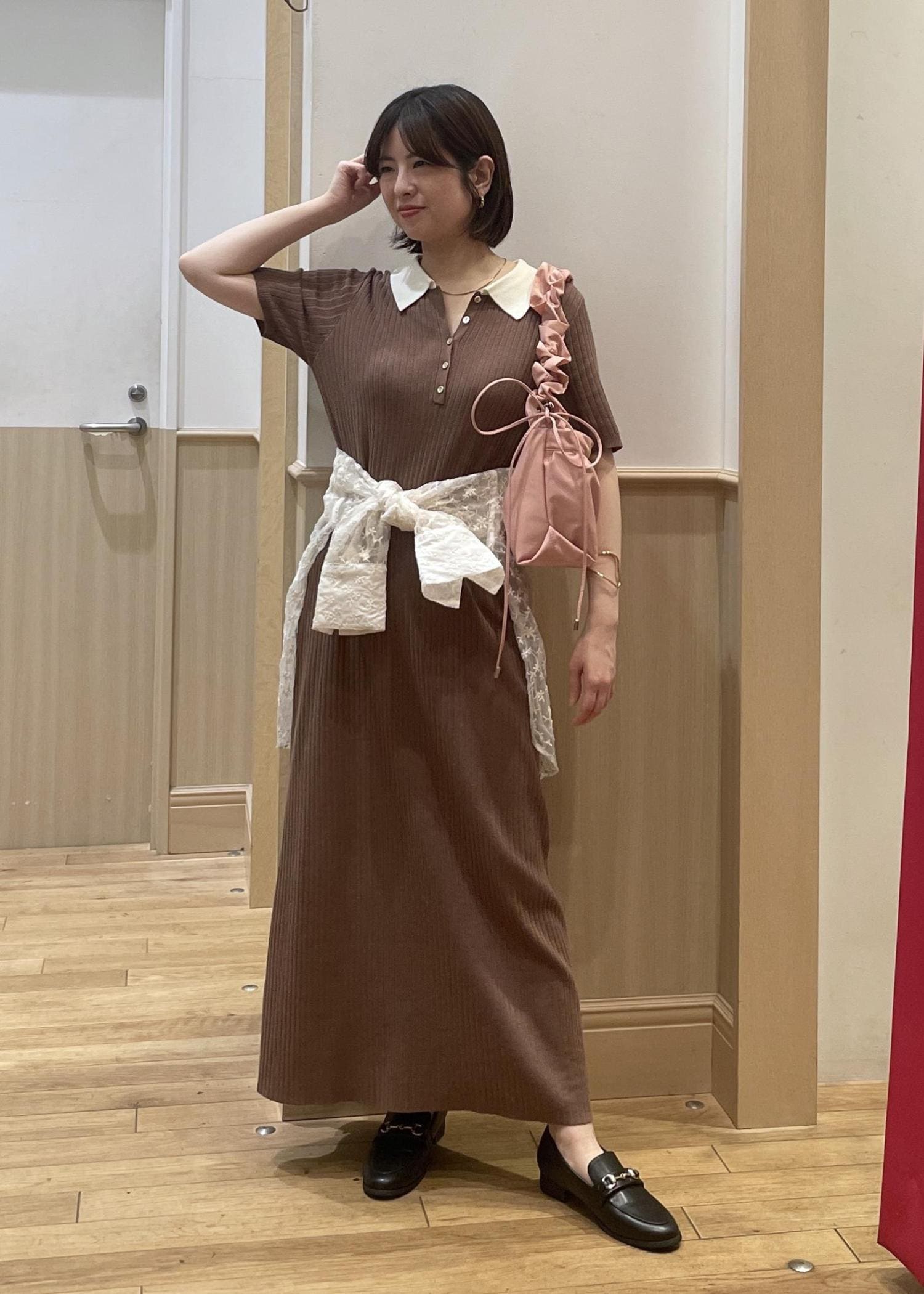 2BUY10%OFFVISポロ襟ニットワンピースブラウン / F¥7,689レビューリブ編みで程よいフィット感があり、広がらないシルエットなのでスッキリ見えします◎