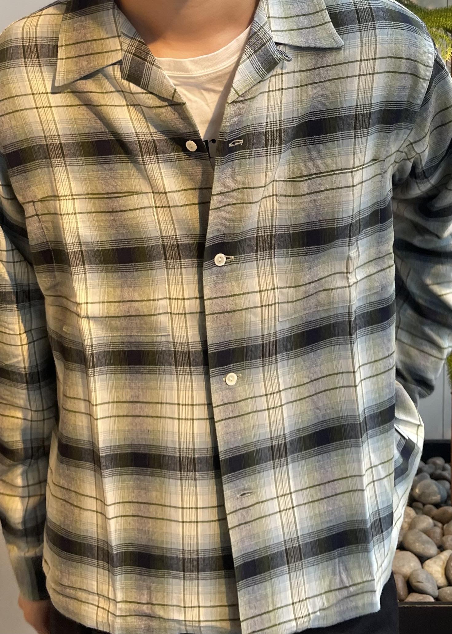 きました!オンブレチェック柄のオープンカラーシャツ!