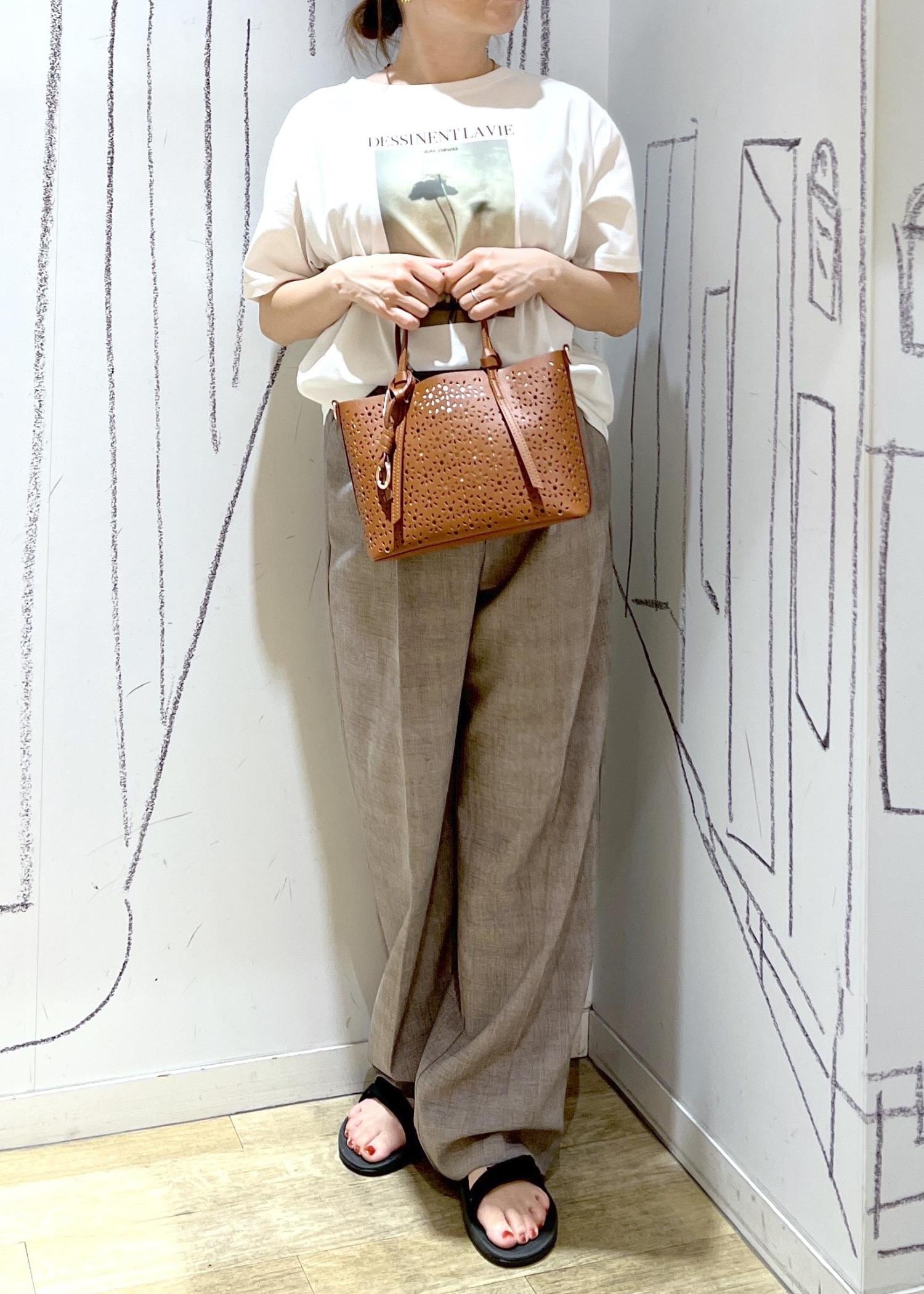 パンチングが涼しげで春夏を贅沢に楽しめるアイテムです!ペットボトルとお弁当箱が同時に入る程度の大きさです。巾着ポーチ付きなのでそれを使うも良し◎バックinバックと合わせるも良し◎