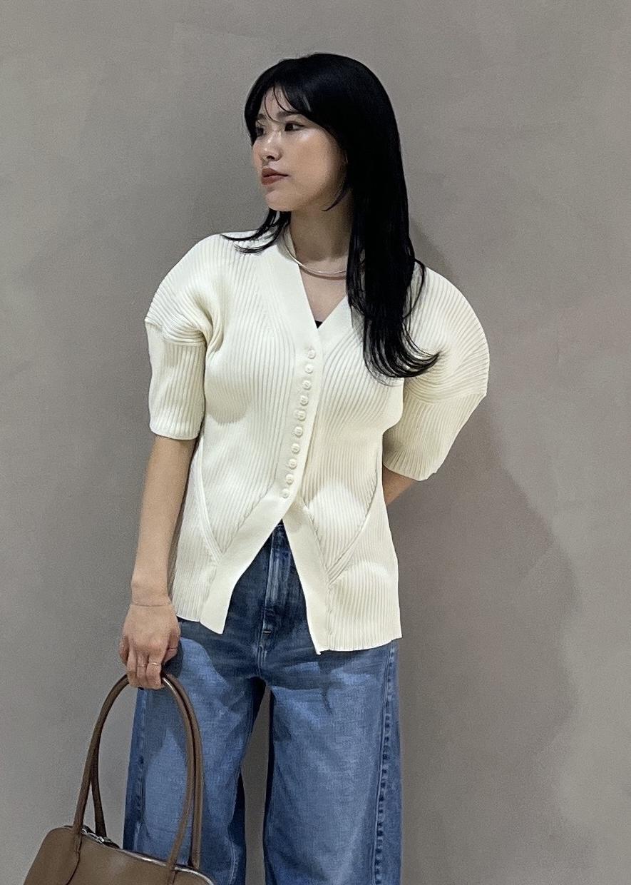 ADAM ET ROPÉ FEMME【サステナブル】フォルムニットカーディガンオフホワイト / F¥16,500レビューパフスリーブでかわいさもありつつ、デコルテが綺麗に見えるVネックで女性らしさも兼ね揃えたトップスです♩