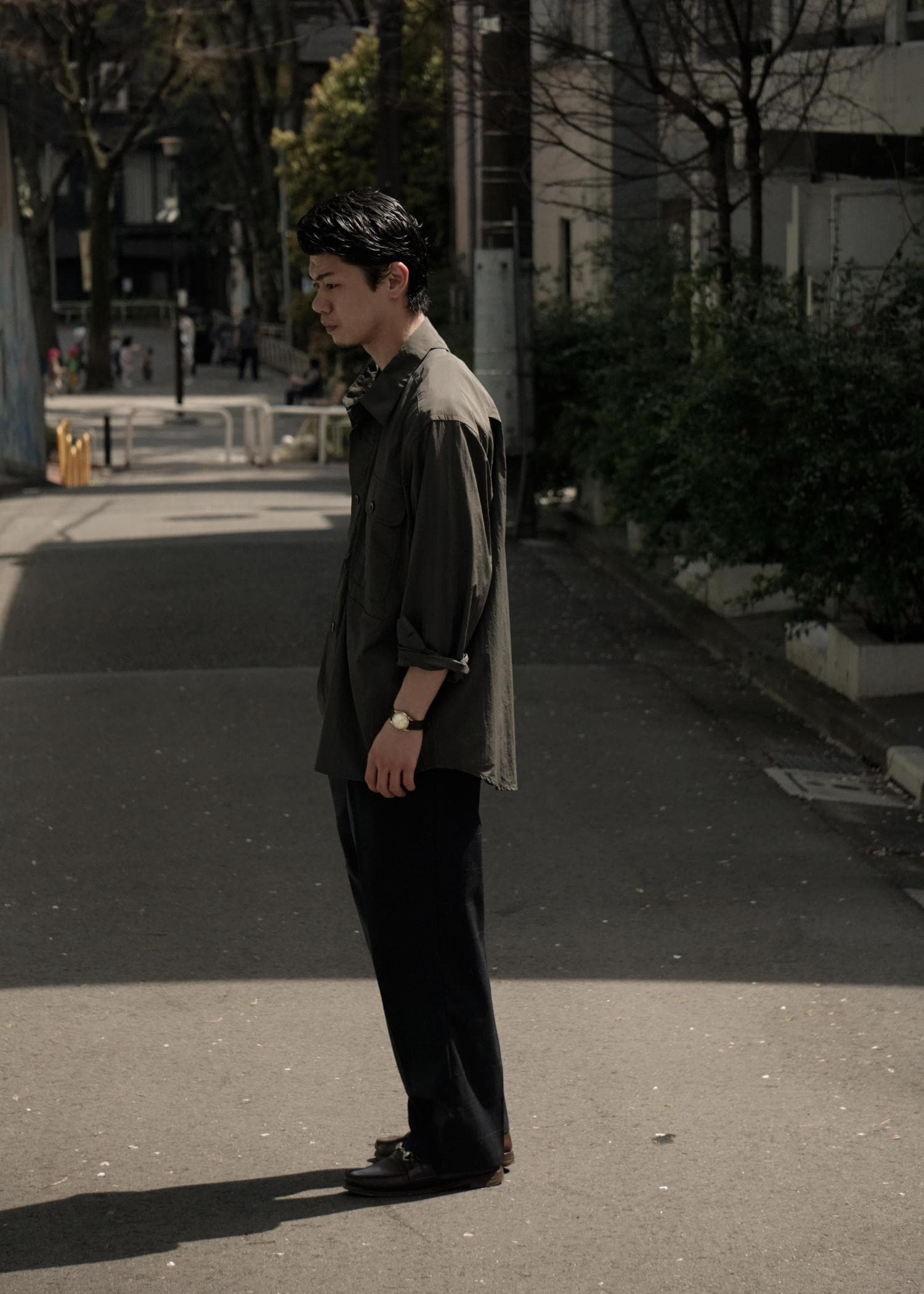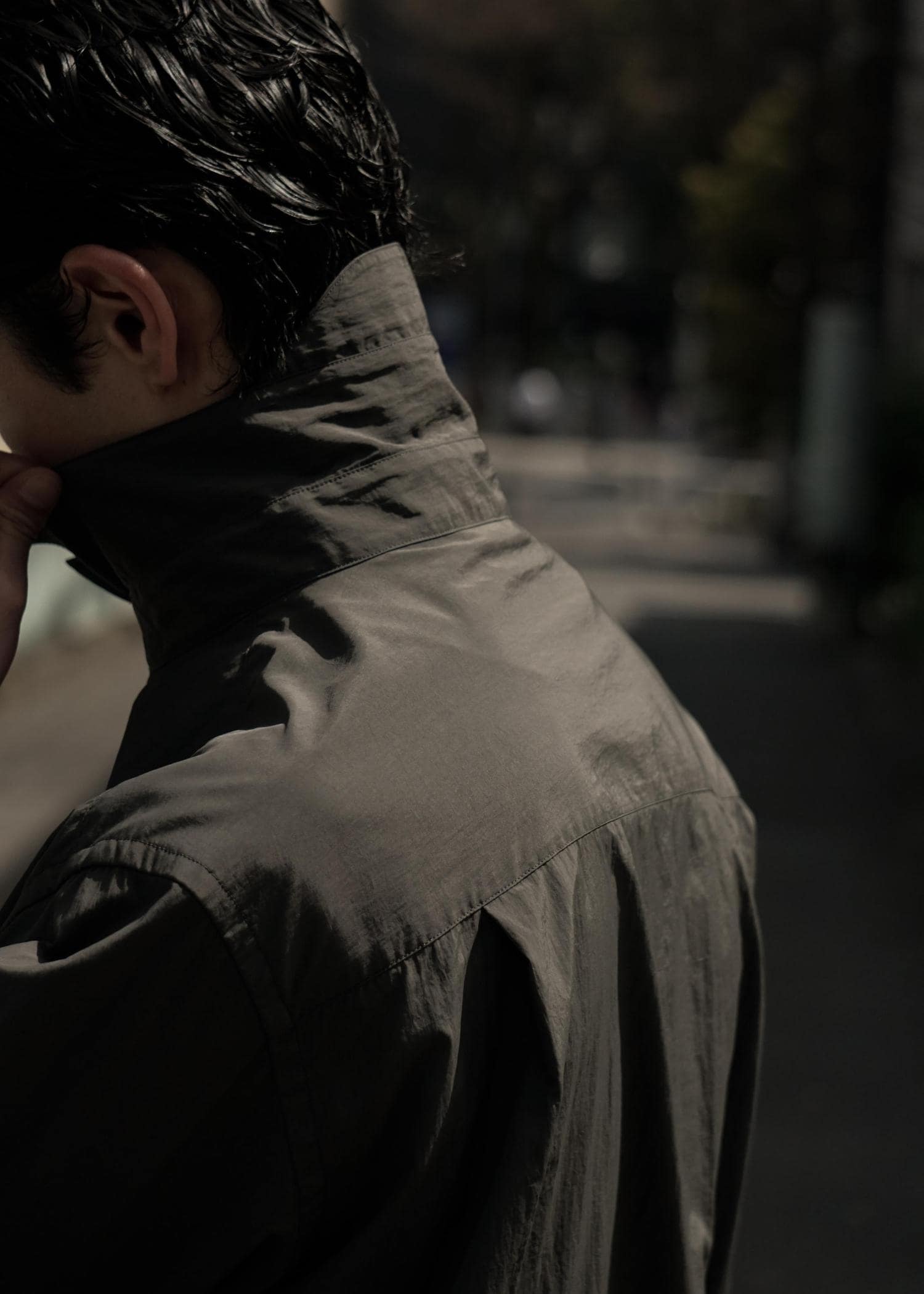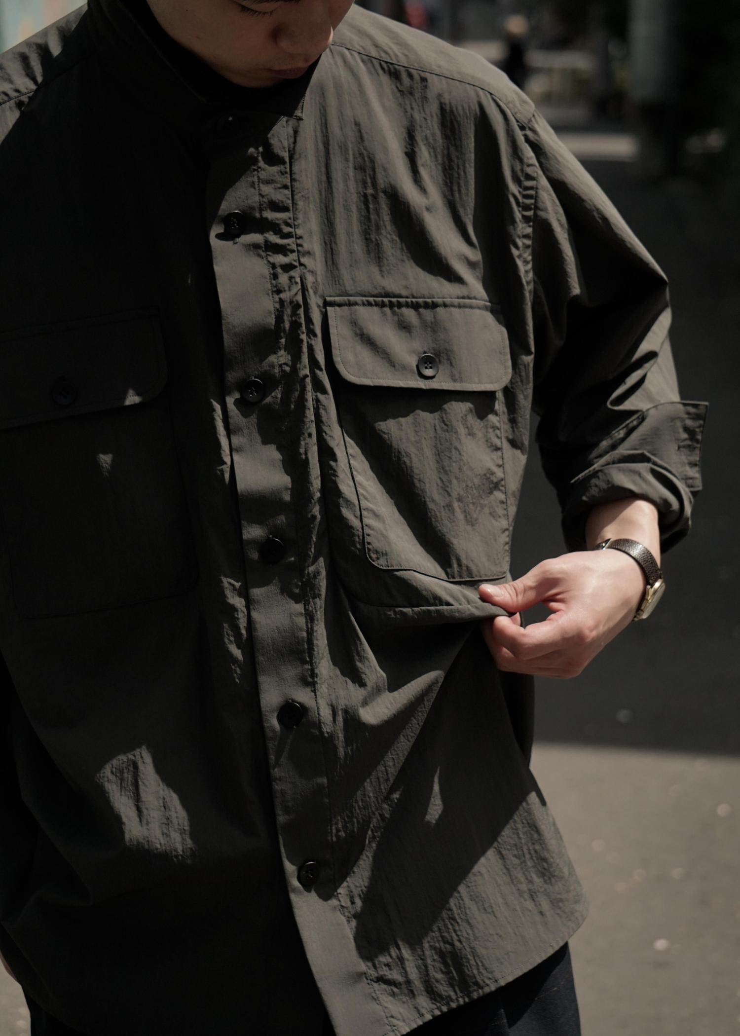 今回、26SS シーズンの新アイテムである「Solarshade Shirt」をベースモデルに、撥水機能を備えたリサイクルナイロンタッサー素材に変更し制作。