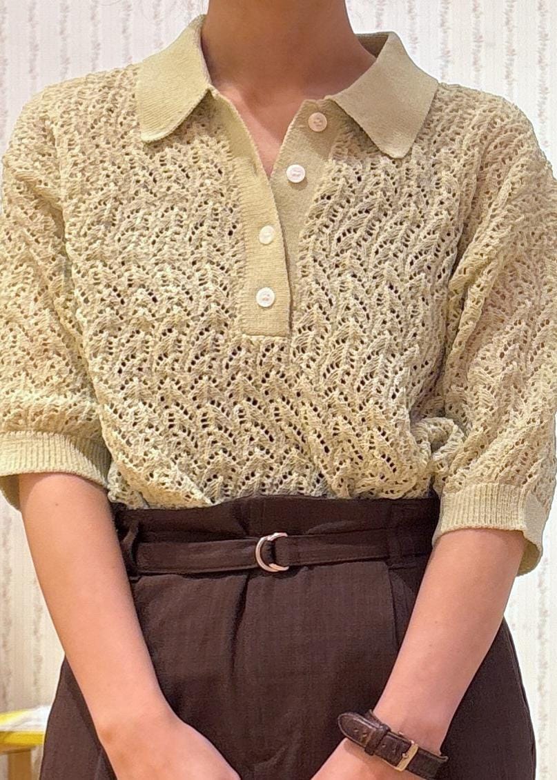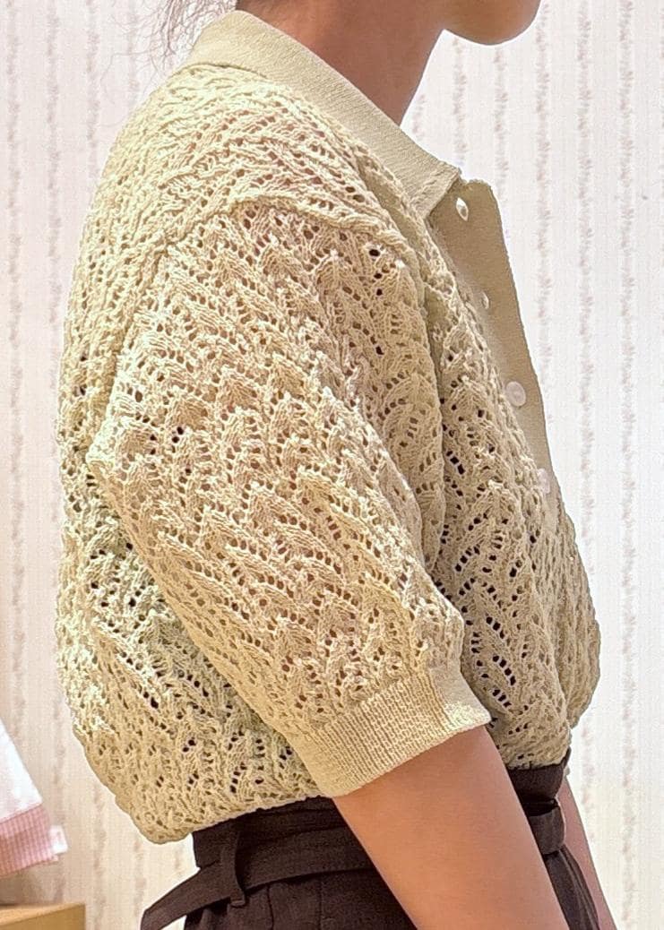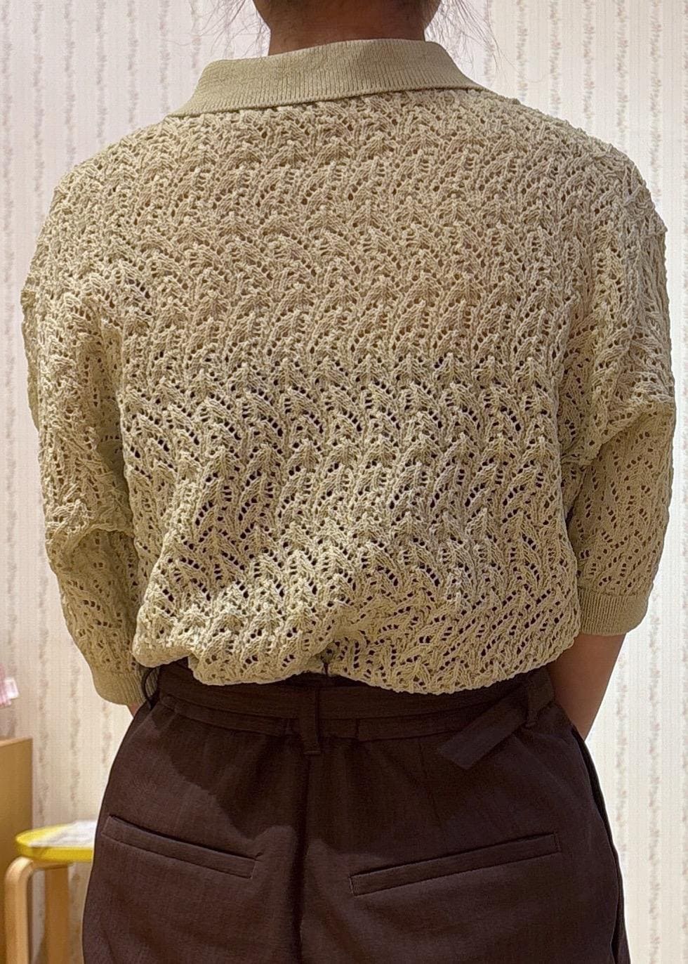 透かし編みデザインのポロニットです!