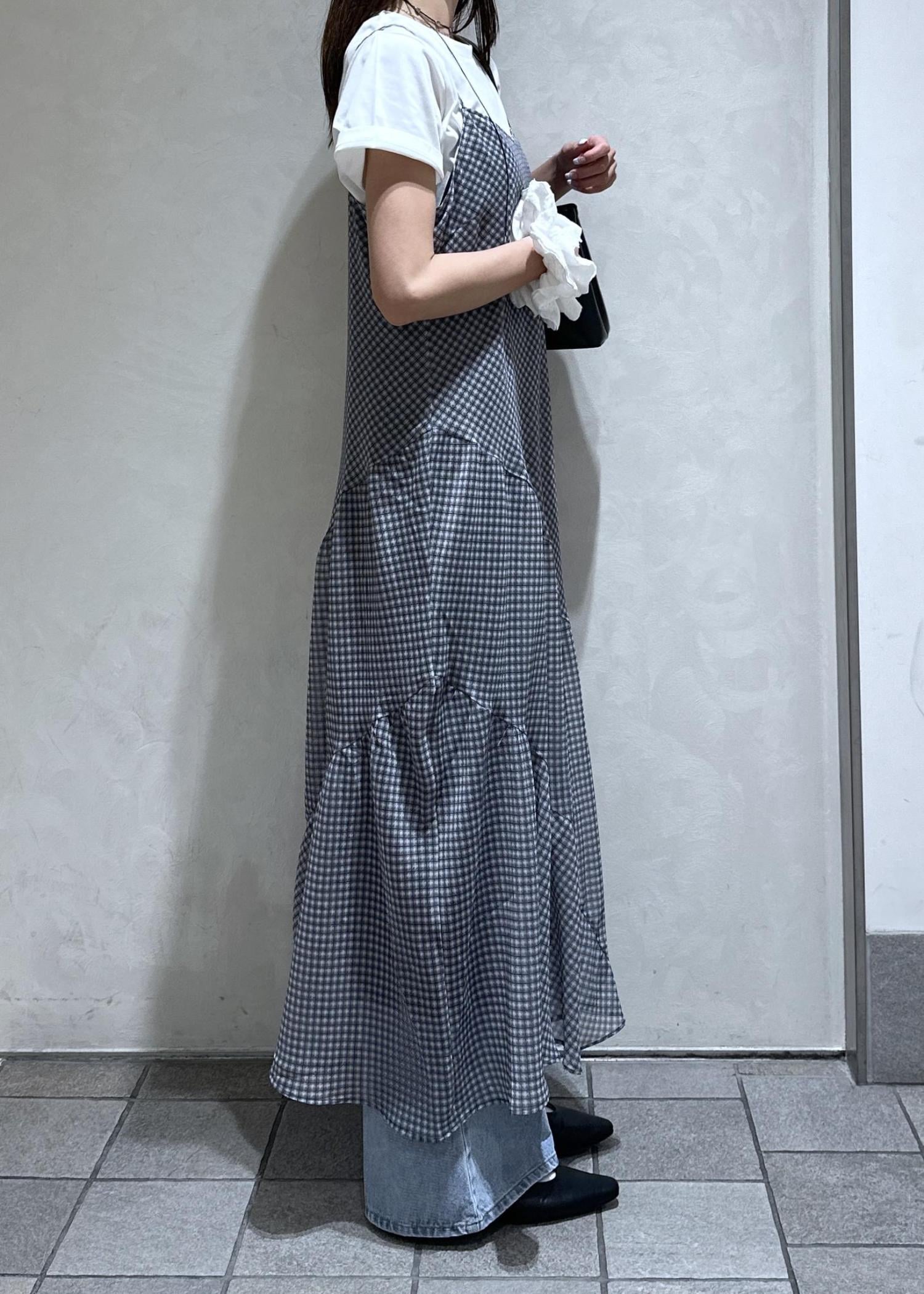 VISシアーチェックキャミワンピースブラック系 / F¥8,899レビュー165cmでも長めに着用できます!低身長の方でも長さ調整ができるので自分の丈に合わせられます◎裏地もついているので透け感も気になりません!