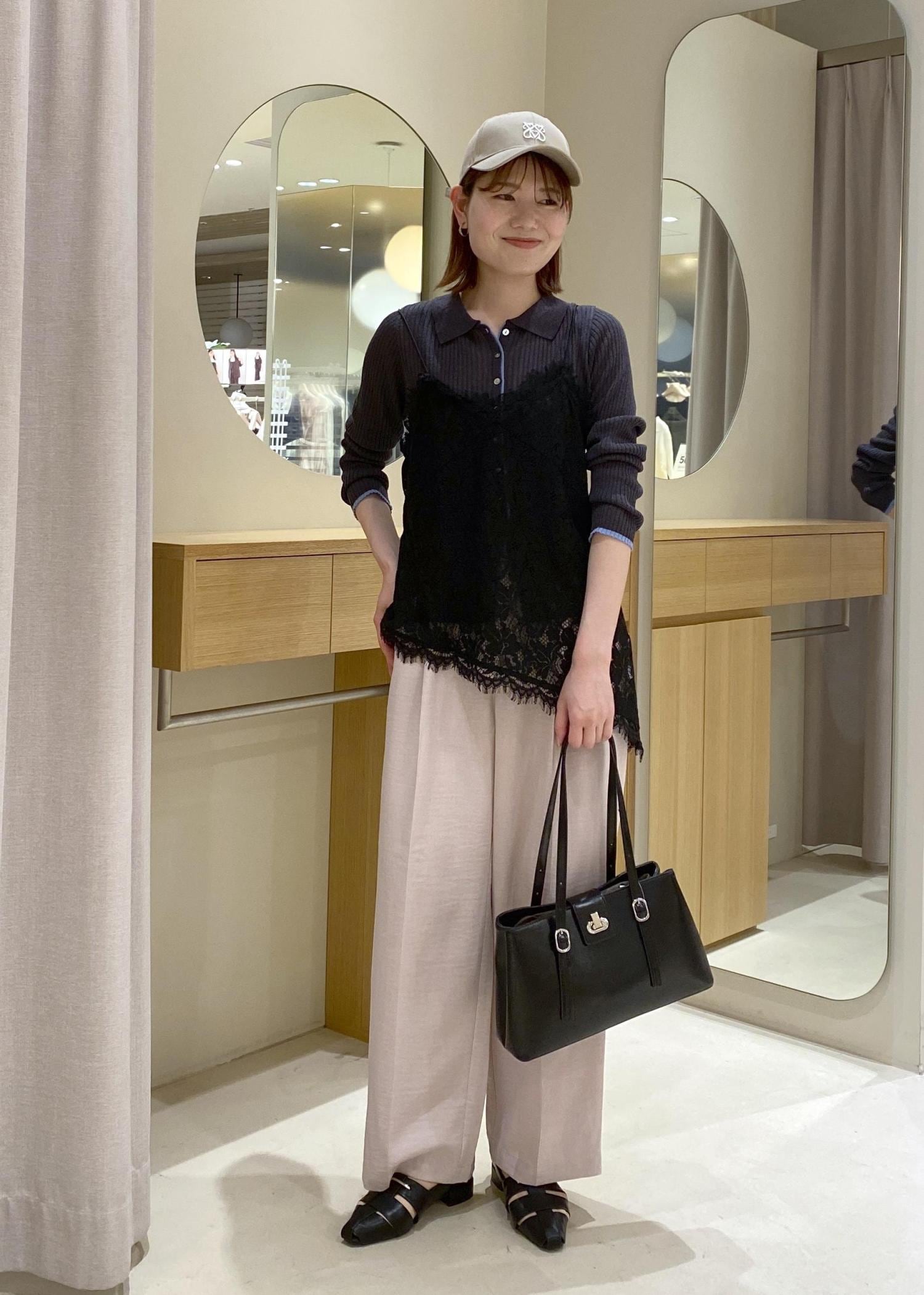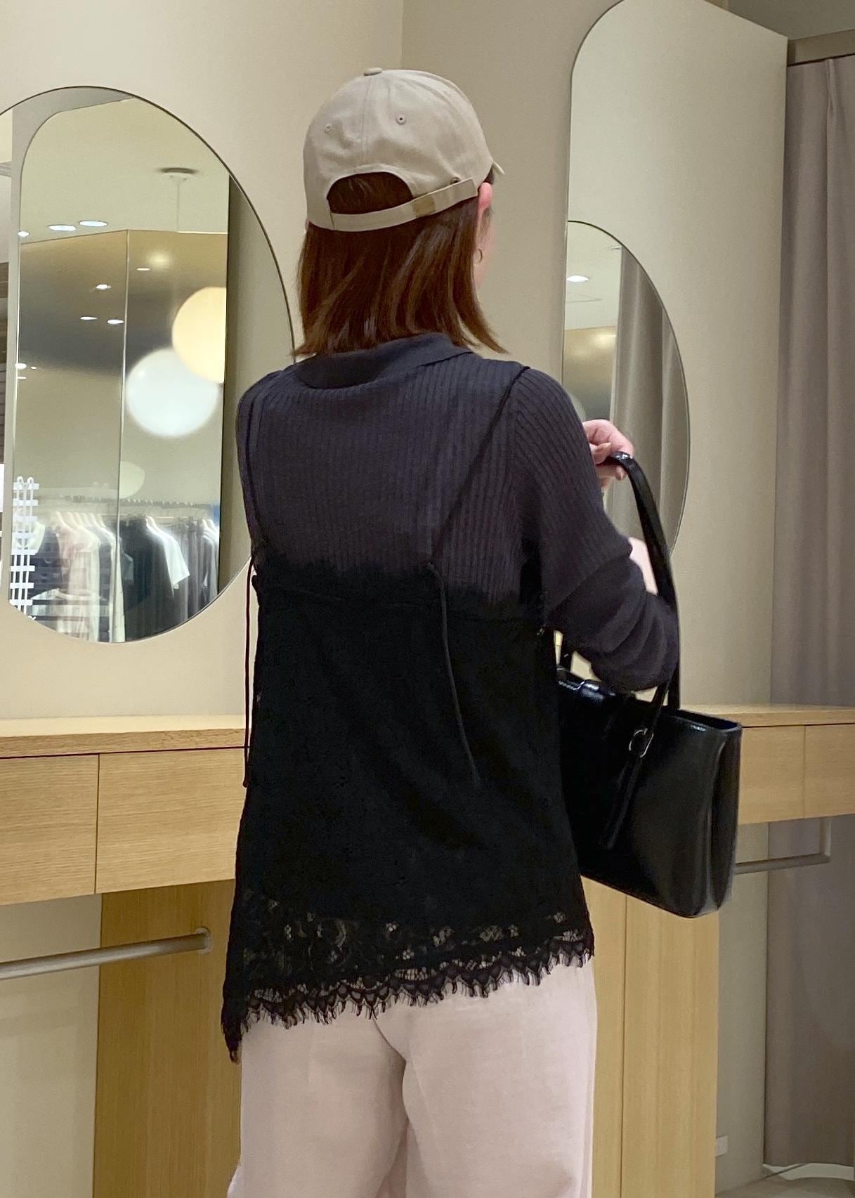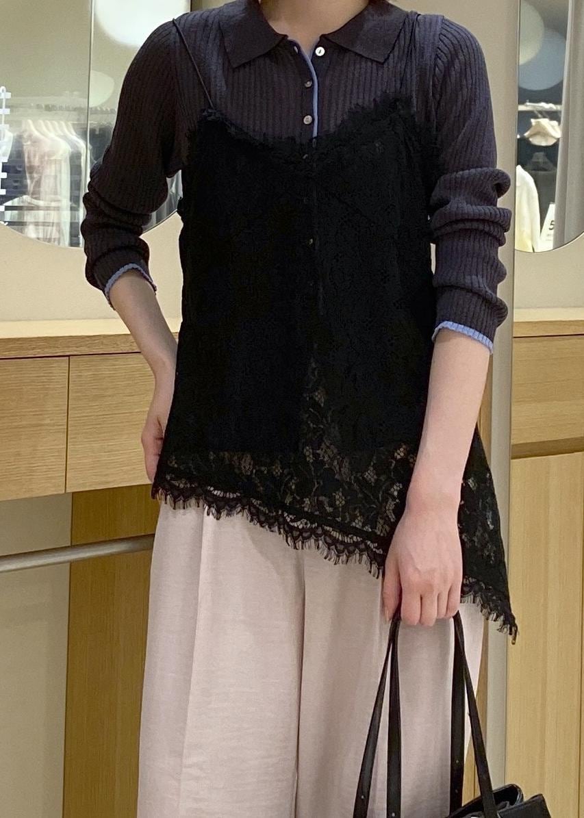 レースキャミソールとポロ襟カーデを合わせた、春のお出かけコーデです!