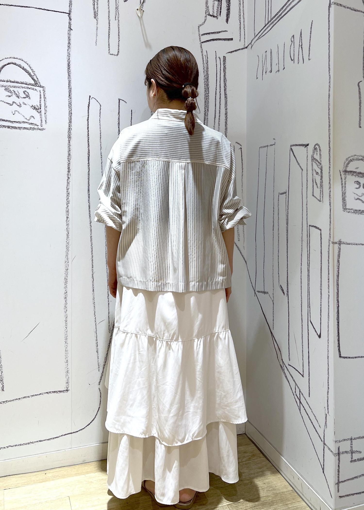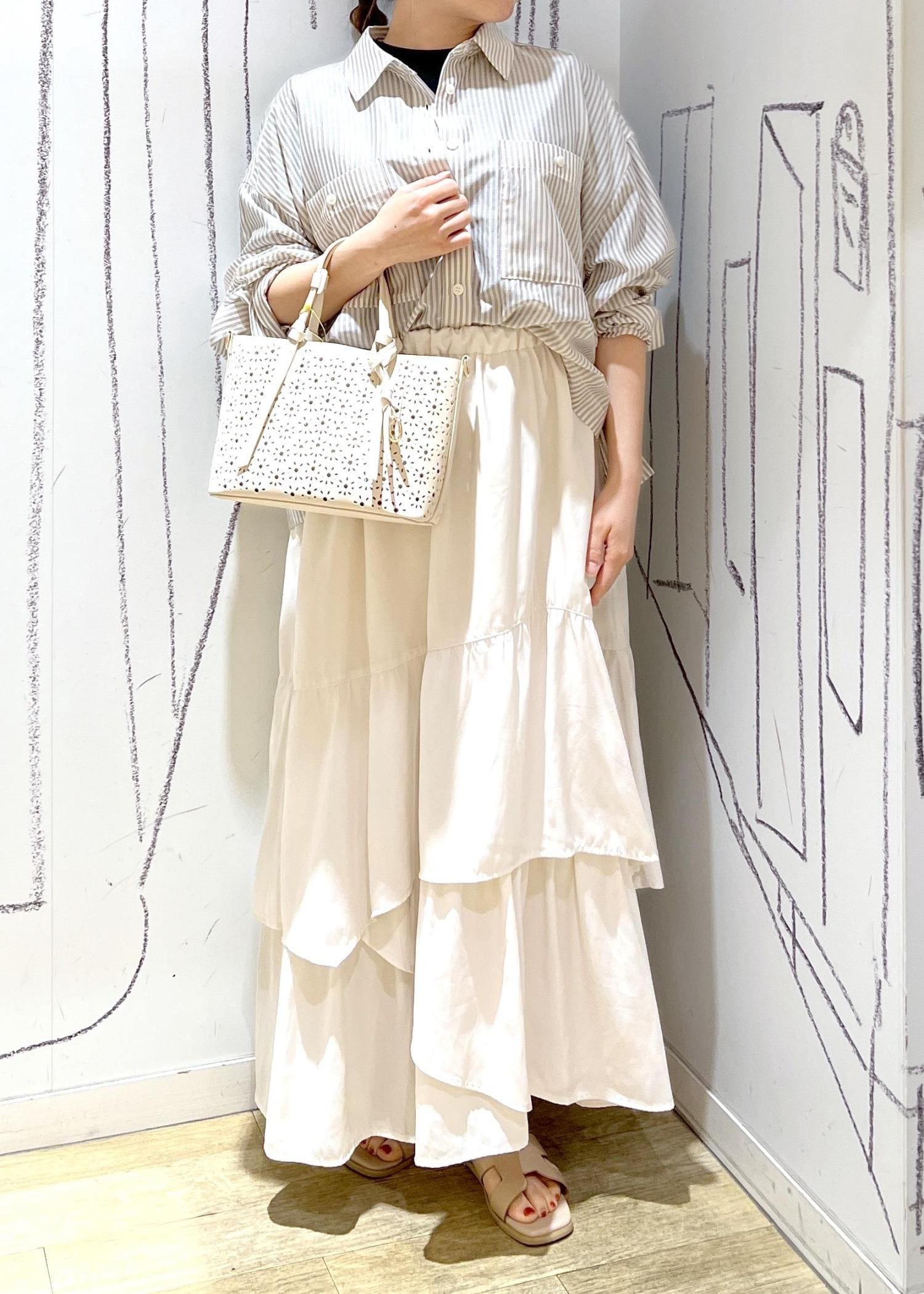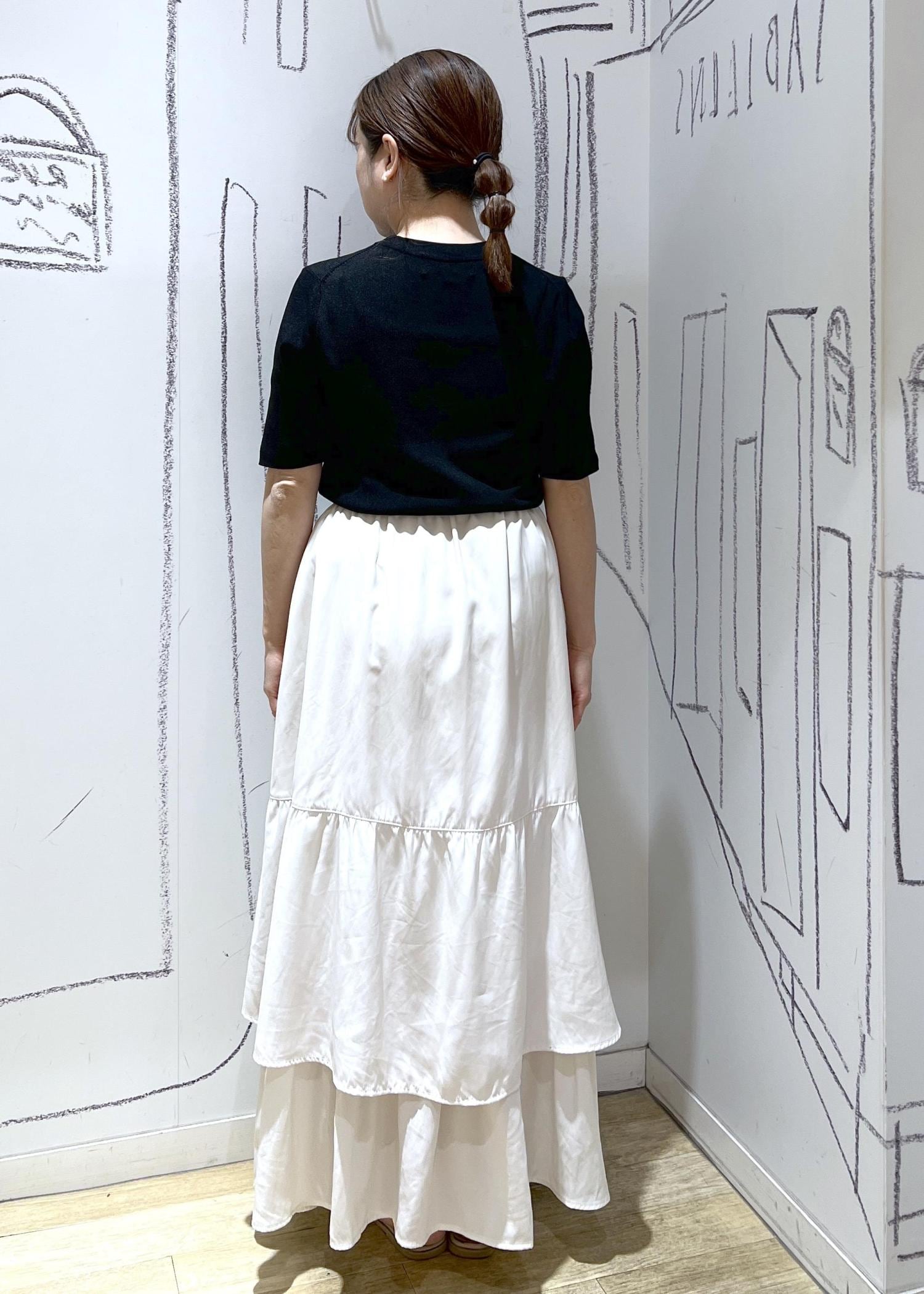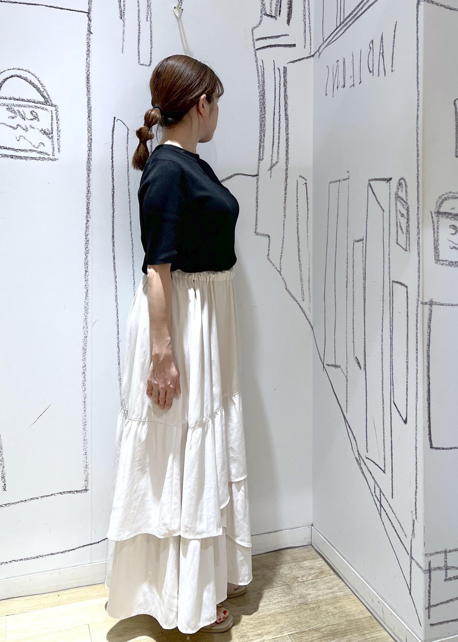 NEW!ROPÉ PICNICダンダンティアードスカートオフホワイト / F¥7,491レビュー147cm写真では裾ギリギリに見えますが、フラットシューズでも充分余裕をもって履ける着丈です!ウエストゴムも緩すぎず、強すぎないのでお腹周り気になる私も着やすかったです。そして素材は柔らかく、サラッと気持ちのいい着心地です。スカートをあまり履かない私でも着心地に魅了されました!ティアードスカートもシャツやシンプルなトップスで甘すぎずに着れるので幅広い層の方に楽しんで頂けること間違えないアイテムです◎シワになりにくい素材も嬉しいです!