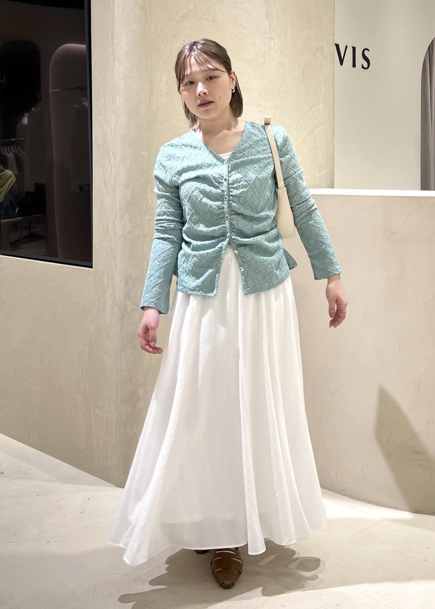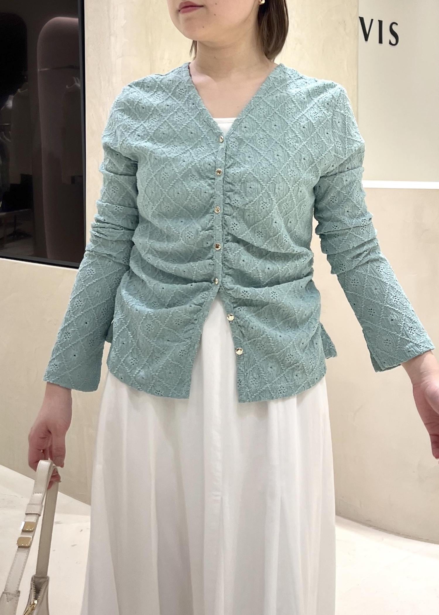 VISフラワージャガードカットカーディガン/2WAY・イージーケアグリーン系 / F¥5,489レビュー肌見せしすぎず、春らしさを感じさせるカーディガンです。