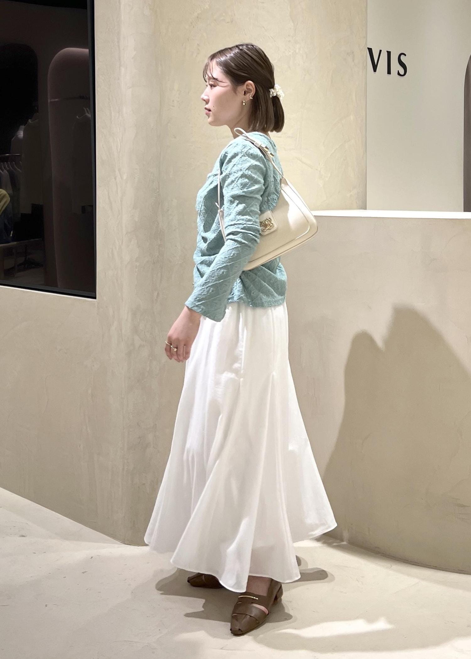 映画館は冷房もつき始めるので、冷えから守りつつ、程よく肌見せも叶うフラワージャガードカーデ!